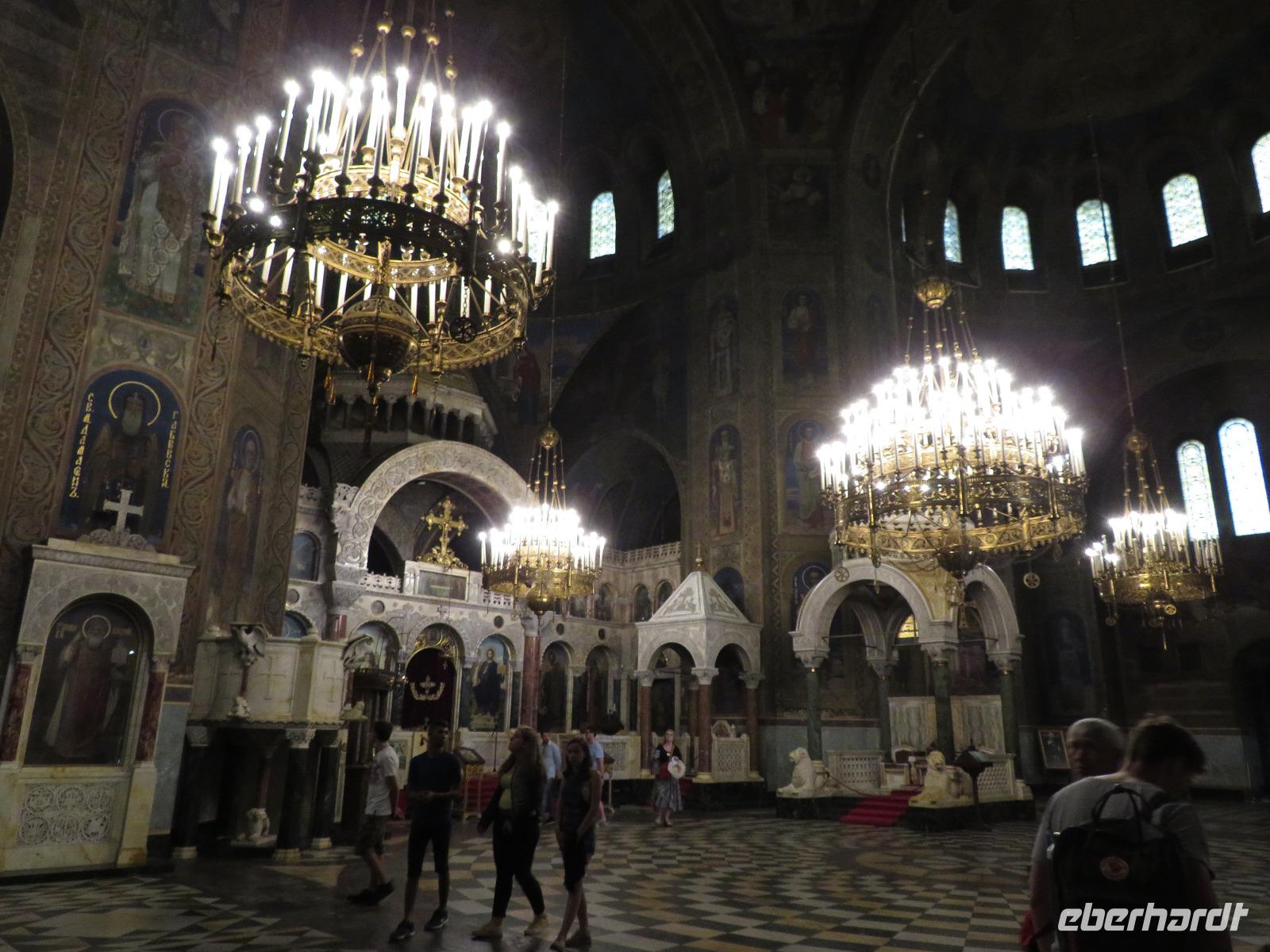 Nach einer leicht verspäteten Ankunft am Flughafen begrüßte uns Sneschana (Schneewittchen), unsere Reiseleiterin für die nächsten 11 Tage. Auf dem Weg zum Hotel tauschten wir unser erstes Geld. Nach einer kurzen Pause begann ein Stadtrundgang durch Sofia. Dieser führte uns zur Alexander-Newski-Kathedrale, zur Kirche Sweta Sofia sowie zur russischen Kirche „Sveti Nikolay Mirlikiiski". Wir sahen von außen u. a. auch die nationale Kunstgalerie, das Bulgarische Nationaltheater, die Oper und das Archäologische Museum.
