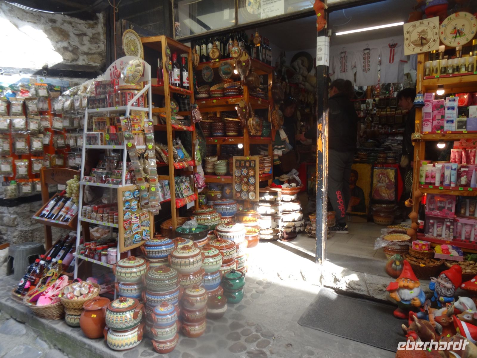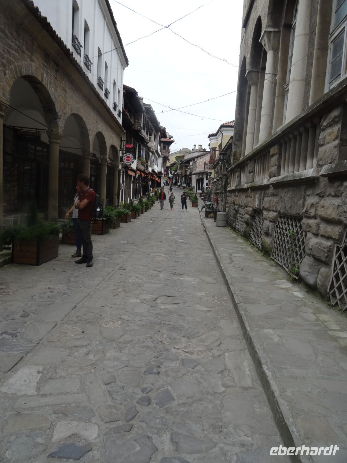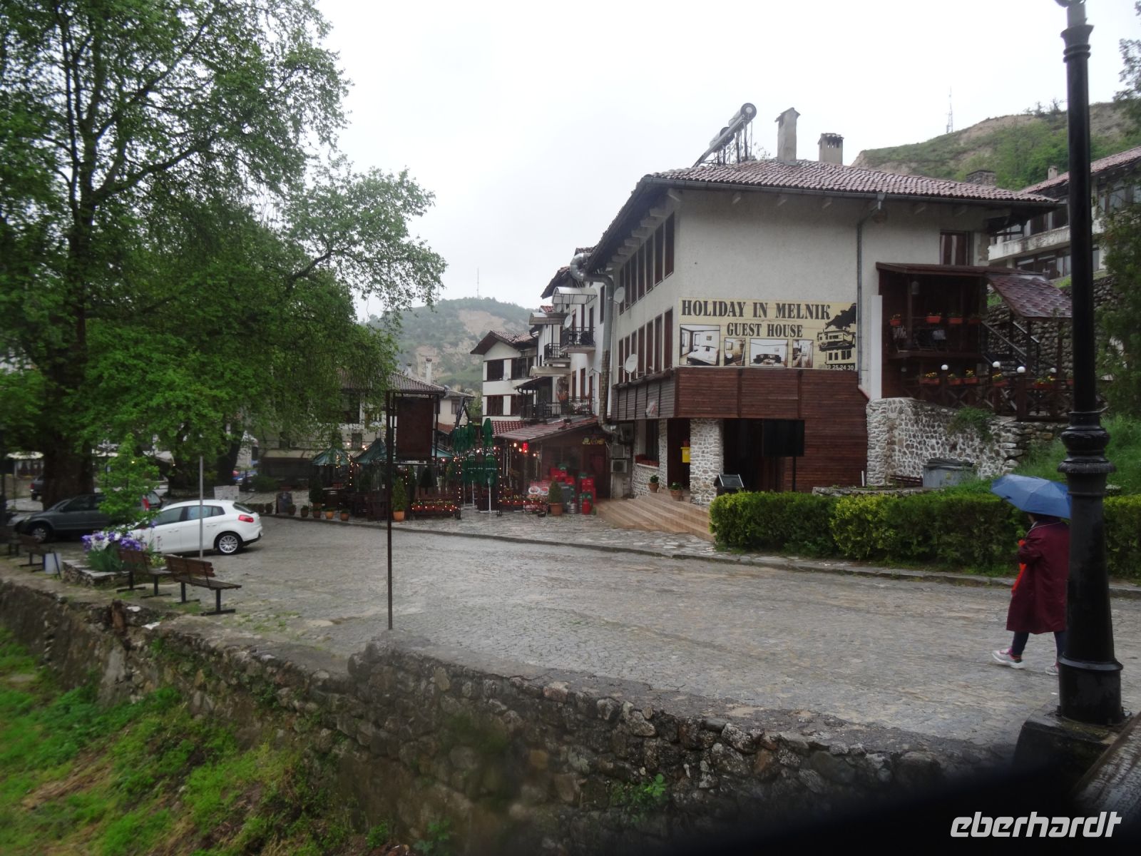 Das Ziel heißt Melnik, ein Städtchen mit nur 250 Einwohnern. Im Tal des Baches Melniska stehen die Kaufmannshäuser im Schatten großer Platanen eng nebeneinander. Rings um die Stadt wird auf den sandigen Böden traditionell Wein angebaut. Wir besuchen das 1754 errichtete Haus eines der reichsten Weinhändler, Kordopoulos. er verkaufte seinen Wein über Griechenland in Italien und Spanien. Wirl aufen durch die langen Gänge des Weinkellers und kosten von einem der guten Rotweine. Das Wetter hat sich leider nicht gebessert, es ist regnerisch und die Straße ist glatt und matschig. Das hält uns aber nicht davon ab, in der Schenke am Dorfplatz die hiesige Spezialität, süße Feige und Kaffee, zu probieren - Eberhardt travel macht es möglich.