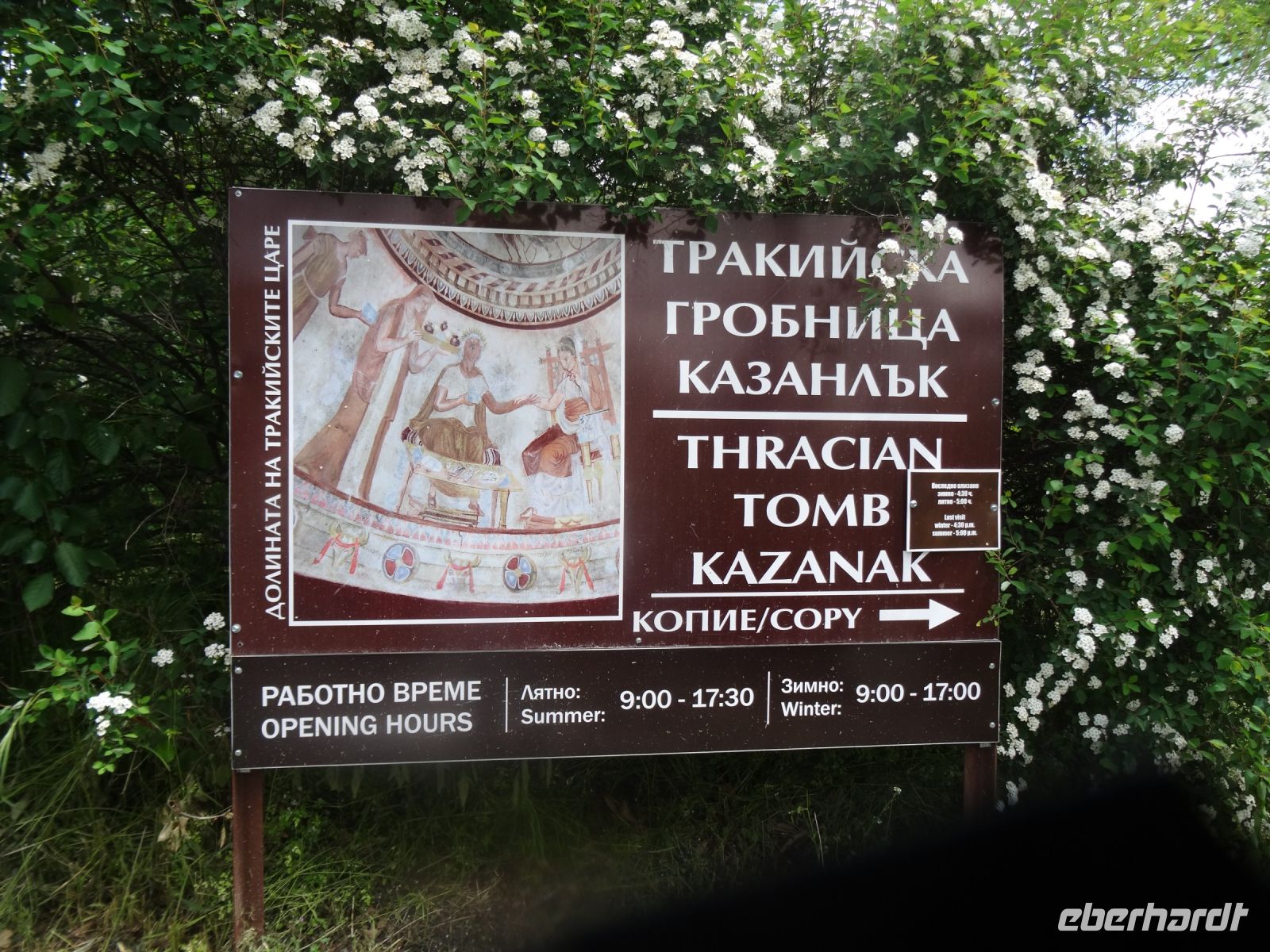 Danach wenden wir uns wieder der Vergangenheit zu und besuchen ein thrakisches Grabmal. Es gehört zum Weltkulturerbe und wurde 1944 entdeckt. Das Besondere daran sind die Malereien in der Kuppel des Grabes, Sie sind sehr gut erhalten und zeigen den Herrscher mit seiner Frau sowie ein Wagenrennen.