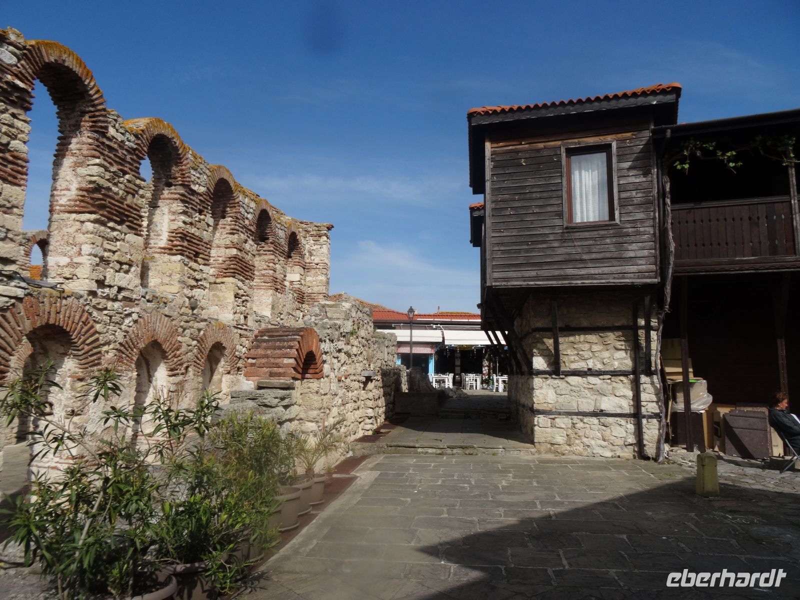 Wir aber kehren zurück in die Gegenwart und fahren zu einer weiteren Weinverkostung nach Pomorie. Die Stadt liegt auf einer Landzunge am Schwarzen Meer und ist eigentlich berühmt für seine Salinen und die Salzgewinnung. Aber wir wenden uns dem Wein zu und verkosten wieder drei Sorten und auch einen Brandy. Wir werden auch mit Brot, Wurst und Schinken verwöhnt und fahren danach zufrieden weiter zur Besichtigung von Nesebar. Die Stadt auf der Landzunge punktet mit vielen Gebäuden aus der Wiedergeburtszeit sowie einer Reihe interessanter Kirchen, wie z.B. die Kirche Christus Pantokrator mit ihrer abwechslungsreichen Fassade oder die eindrucksvollen Ruinen der Metropolitenbasilika. Nach dem Rundgang gibt es noch etwas Freizeit zum Bummeln und danach fahren wir ins Hotel Marina Grand Beach in Goldstrand. Dort müssen wir uns beeilen, es gibt nur bis 21:00 Uhr Essen vom Büfett.