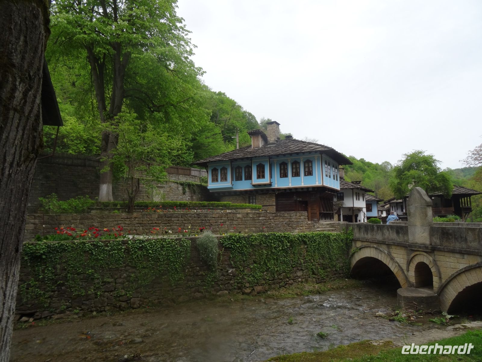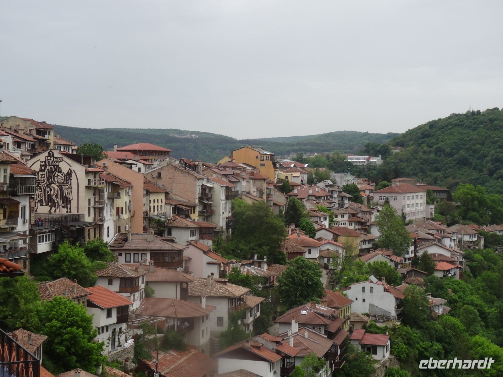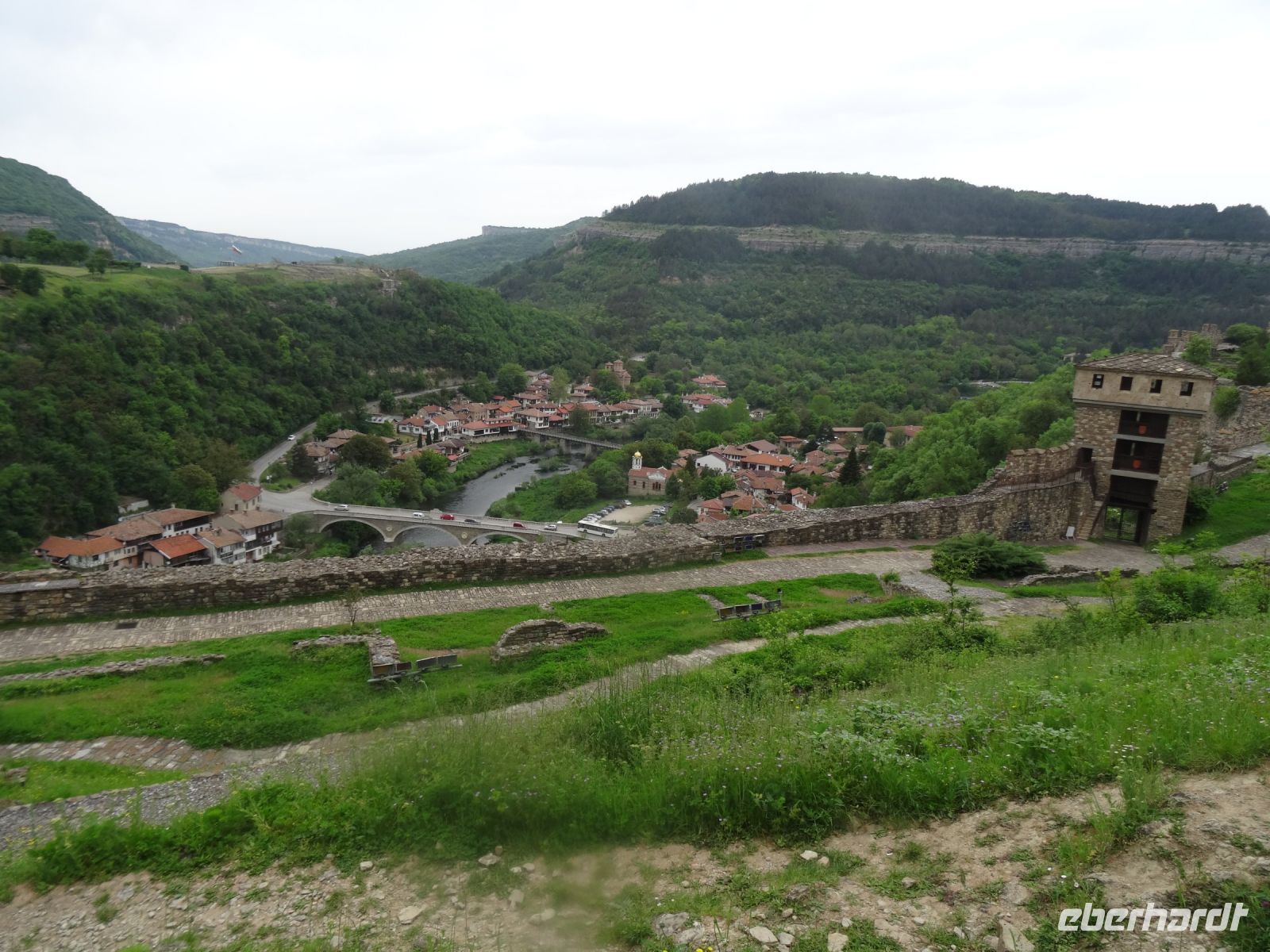 Heute müssen wir mal nicht den Koffer packen, in Arbanasi bleiben wir zwei Nächte. Der Ort liegt idyllisch am Fuße des Balkangebirges und diente als Sommerresidenz sowohl des Zaren als auch Todor Schivkovs. Beide Herren sind uns heute etwas gleichgültig, wir besuchen das Freilichtmuseum Etara mit seinen ca. 50 Häusern. In vielen dieser Häuser befinden sich Werkstätten und man kann die unterschiedlichen Handwerker bei ihrer Arbeit beobachten und ihre Erzeugnisse auch kaufen. Wir vervollständigen unseren Eindruck vom ländlichen Bulgarien mit einem Besuch im Ökohof in Sabotkovtsi. Man empfängt uns traditionell mit Brot und Salz, danach schauen wir den Hof und die Dorfkirche an, es folgt ein gutes Mittagessen mit Bohnen und viel Gemüse. So gesättigt fahren wir weiter in die alte Stadt Veliko Tarnovo. Sie hat eine reiche Vergangenheit, sie war Hauptstadt des Zweiten Bulgarischen Reichs, hier wurde die erste Verfassung geschrieben und auch das erste Parlament versammelte sich hier im Jahre 1879. Wir laufen durch die Handwerkerstraße Samovodska Bazaar und sehen stattliche Häuser aus der Wiedergeburtszeit, Im Tal schlängelt sich der Fluss Jantra um die Hügel Zarevits, Sveta Gora und Trapezika herum. Natürlich wird bei dem einen oder anderen Händler etwas gekauft und beim Bäcker erstehen wir eine schöne Torte, denn am Folgetag hat eine Mitreisende Geburtstag, und das muss gefeiert werden.