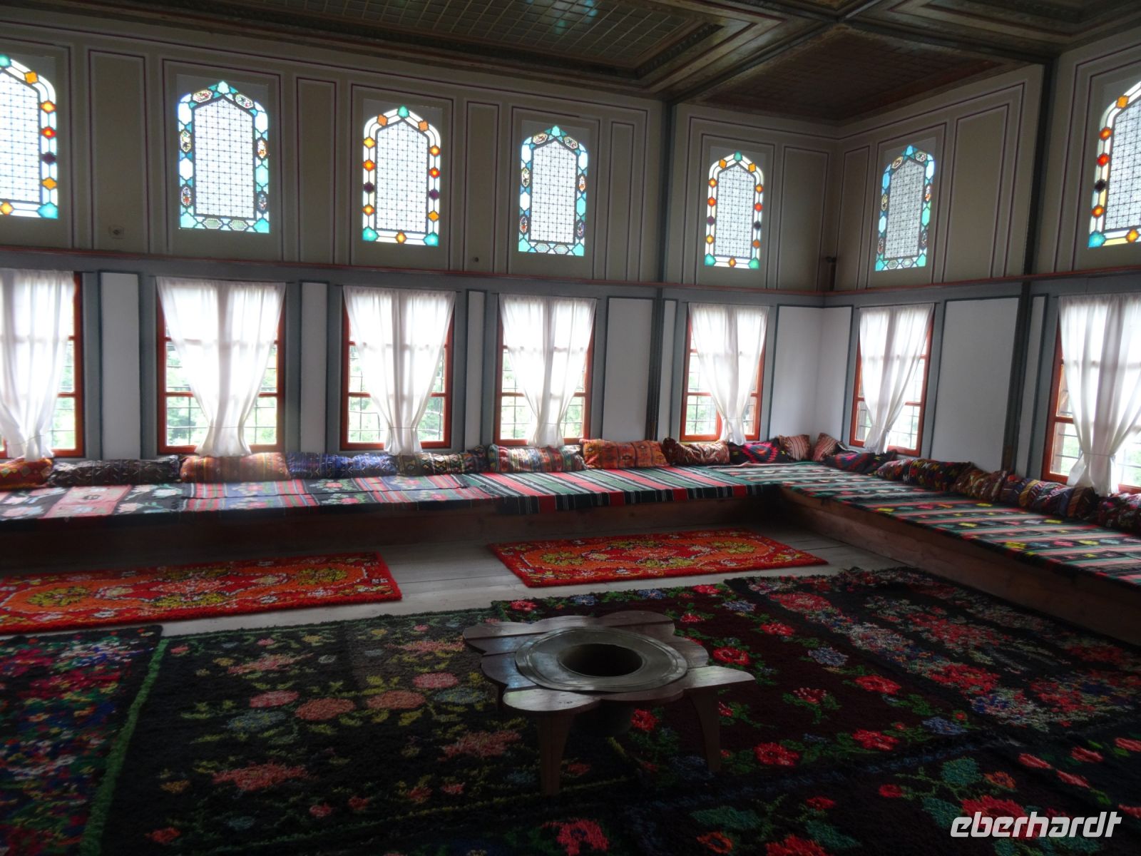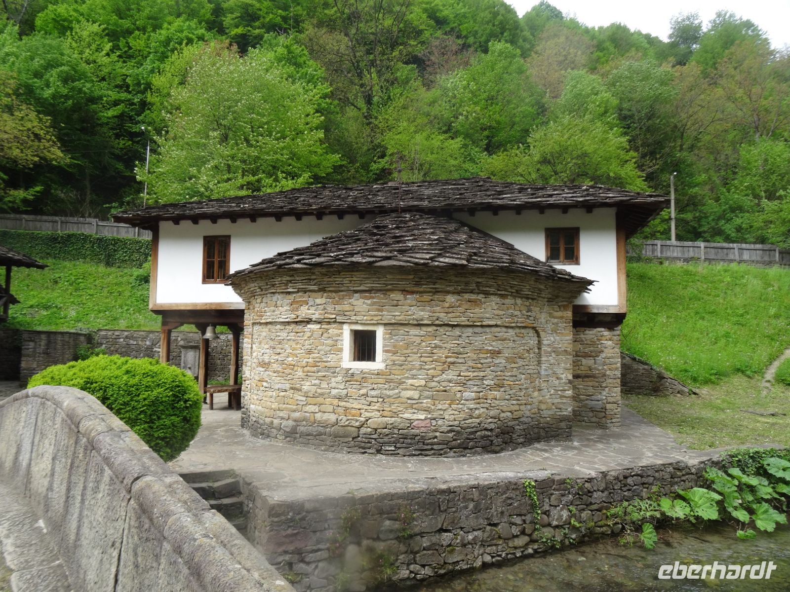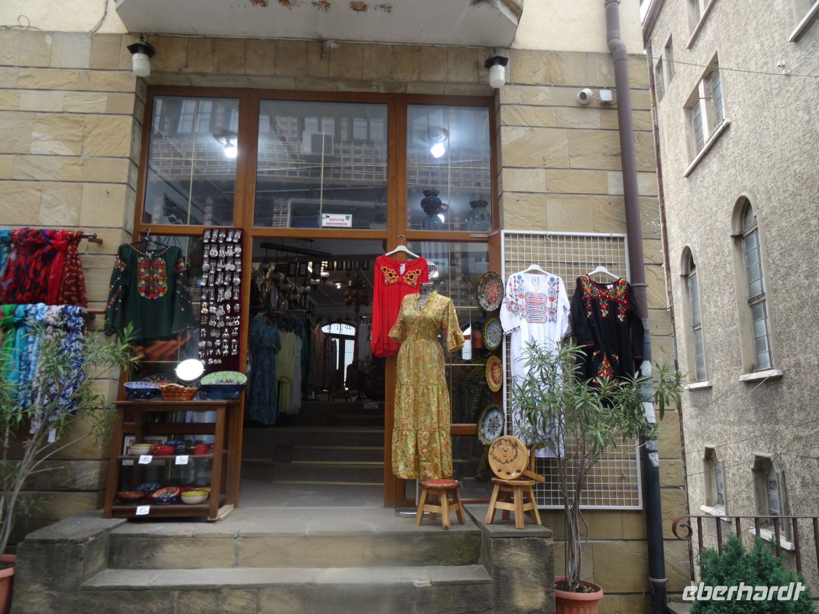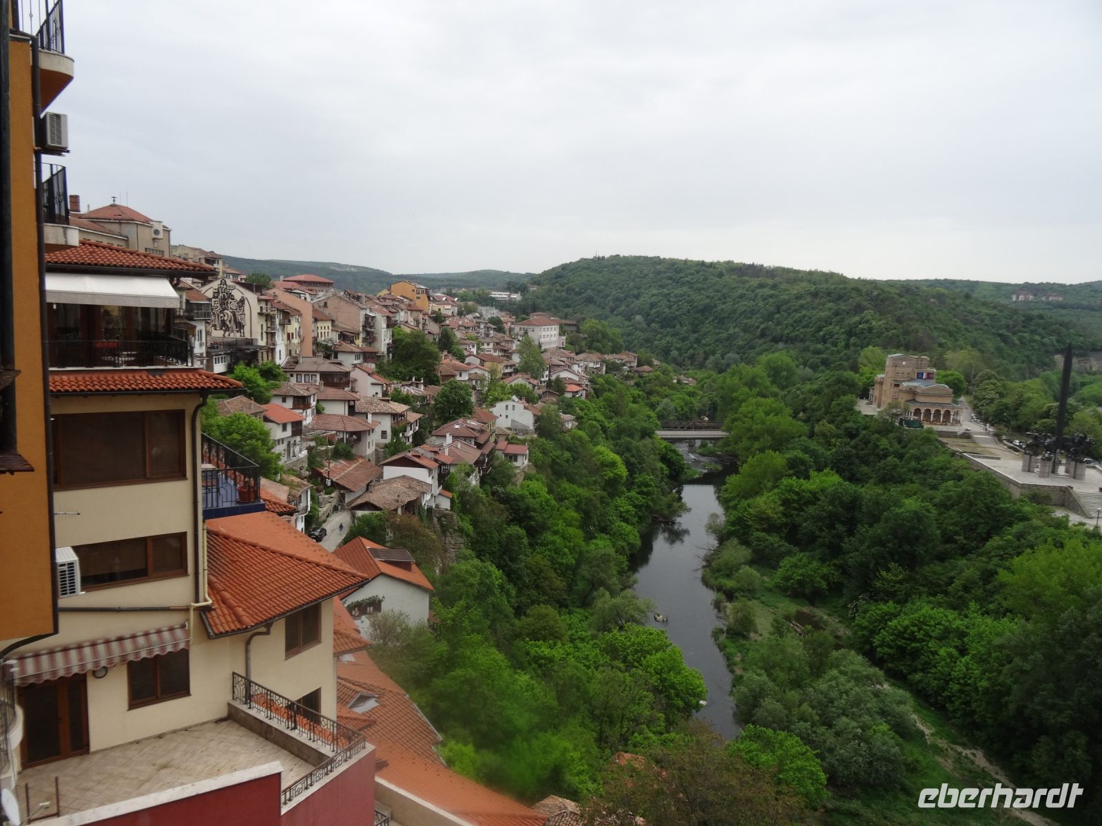 Heute müssen wir mal nicht den Koffer packen, in Arbanasi bleiben wir zwei Nächte. Der Ort liegt idyllisch am Fuße des Balkangebirges und diente als Sommerresidenz sowohl des Zaren als auch Todor Schivkovs. Beide Herren sind uns heute etwas gleichgültig, wir besuchen das Freilichtmuseum Etara mit seinen ca. 50 Häusern. In vielen dieser Häuser befinden sich Werkstätten und man kann die unterschiedlichen Handwerker bei ihrer Arbeit beobachten und ihre Erzeugnisse auch kaufen. Wir vervollständigen unseren Eindruck vom ländlichen Bulgarien mit einem Besuch im Ökohof in Sabotkovtsi. Man empfängt uns traditionell mit Brot und Salz, danach schauen wir den Hof und die Dorfkirche an, es folgt ein gutes Mittagessen mit Bohnen und viel Gemüse. So gesättigt fahren wir weiter in die alte Stadt Veliko Tarnovo. Sie hat eine reiche Vergangenheit, sie war Hauptstadt des Zweiten Bulgarischen Reichs, hier wurde die erste Verfassung geschrieben und auch das erste Parlament versammelte sich hier im Jahre 1879. Wir laufen durch die Handwerkerstraße Samovodska Bazaar und sehen stattliche Häuser aus der Wiedergeburtszeit, Im Tal schlängelt sich der Fluss Jantra um die Hügel Zarevits, Sveta Gora und Trapezika herum. Natürlich wird bei dem einen oder anderen Händler etwas gekauft und beim Bäcker erstehen wir eine schöne Torte, denn am Folgetag hat eine Mitreisende Geburtstag, und das muss gefeiert werden.