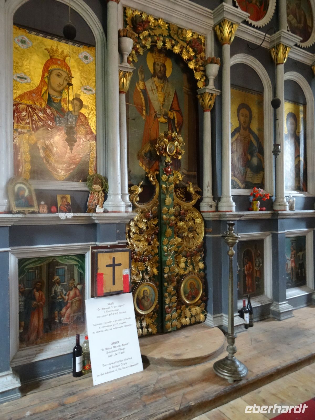 Im historischen Museum werden viele kostbare Gewänder, Manuskripte und Kultgegenstände gezeigt, ebenso das Kreuz des Rafail, er schnitzte diese Miniatur Ende des 18./Anfang des 19. Jahrhunderts, nach Fertigstellung dieses Meisterwerkes erblindete er. Nach diesen vielen Eindrücken und Informationen verlangen Körper und Geist eine Pause und so verspeisen wir gegen 14:00 Uhr unsere bestellten Forellen und setzen frisch gestärkt unseren Weg gen Süden fort.