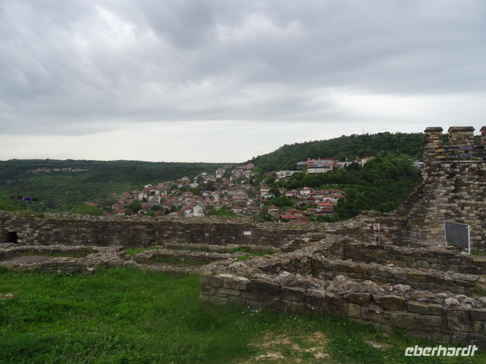 Der Tag beginnt mit einer fröhlichen Geburtstagsgratulation, danach verspeisen wir gemeinsam die Torte. Zwei Programmpunkte haben wir noch auf de Rückfahrt nach Sofia, so machen wir zuerst noch einmal Station in Veliko Tarnovo und erklimmen den Zarevits-Hügel um die Festung zu besichtigen. Das Schönste ist eigentlich der Blick auf die Stadt mit dem Fluss und den Hügeln. Tapfer wandern wir bis ganz nach oben und werden wirklich mit einem hübschen Blick belohnt. Mit einem letzten Blick zu unserem Hotel in Arbanasi verabschieden wir uns von Veliko Tarnovo und fahren weiter Richtung Sofia. In Dobrevski halten wir an für eine Mittagspause und letzte Einkäufe beim Fleischer.