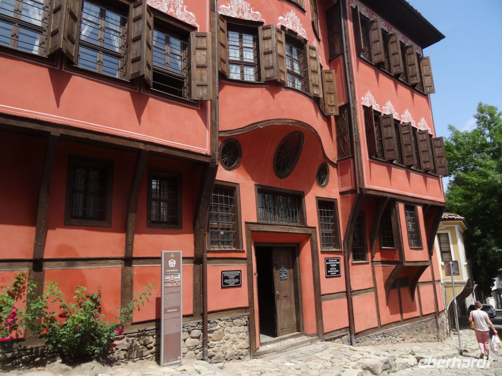 Wir überqueren auf zahlreichen Serpentinen das Gebirge, am Pass wird eine Pause eingelegt, wir können uns mit einem Mittagessen stärken, auf einem kleinen Markt etwas einkaufen und dann geht die Fahrt weiter Richtung Weinkellerei Villa Yustina. Wir erhalten eine sehr interessante Führung durch das gut gepflegte Weingut und können danach drei Sorten Wein verkosten und natürlich auch käuflich erwerben. Nun sind wir durchaus bereit für Plovdiv und bald ist es soweit. Wir schauen uns die Altstadt an mit ihren Kaufmannshäusern und Werkstätten, gehen in das Ethnografische Museum, das früher auch ein Kaufmannshaus war. In der Dzumaja -Moschee fallen uns die interessante Kombination von Naturstein und Ziegeln auf und wir fotografieren eifrig.