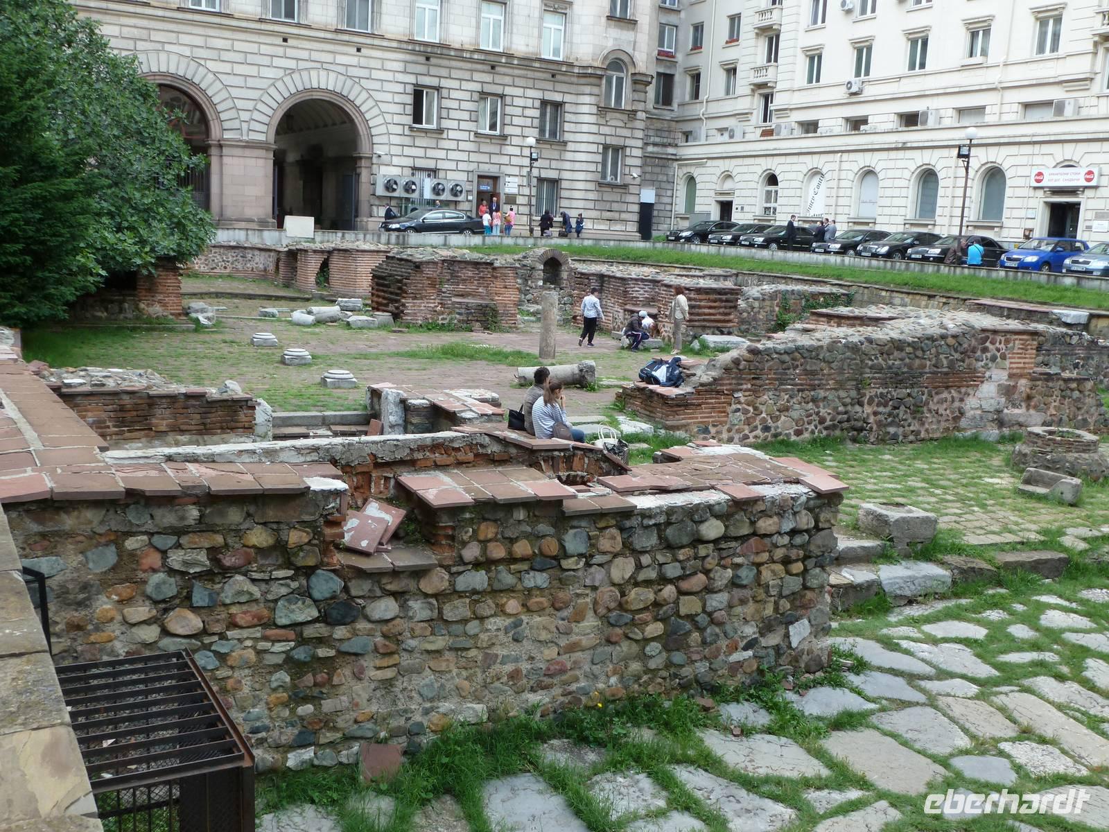 Mit dem Bus begann unsere Stadtrundfahrt durch Sofia. Über die Adler-Brücke erreichten wir die bulgarisch-orthodoxe Alexander-Newski-Kathedrale, die zwischen 1904 bis 1912 gebaut wurde. Sie besteht aus fünf Kirchenschiffen und ist im Inneren reich mit Gold, Mosaiken und Marmor geschmückt. Weiter führte unser Stadtrundgang am Regierungssitz, am Römischen Thermenbau - heute Georgs Kirche und an der „Statur der Sofia“ vorbei. Das Nationaltheater „IWAN WASOW“ fügt sich harmonisch ins Stadtbild ein.