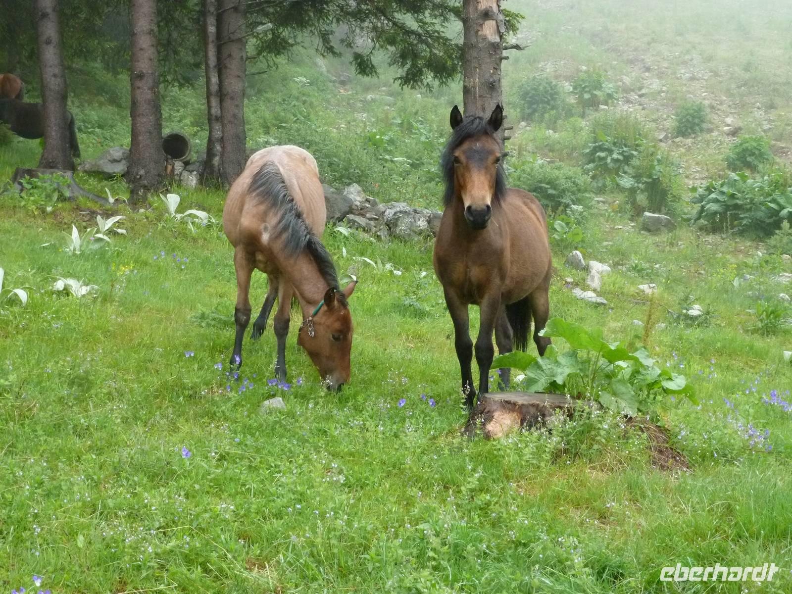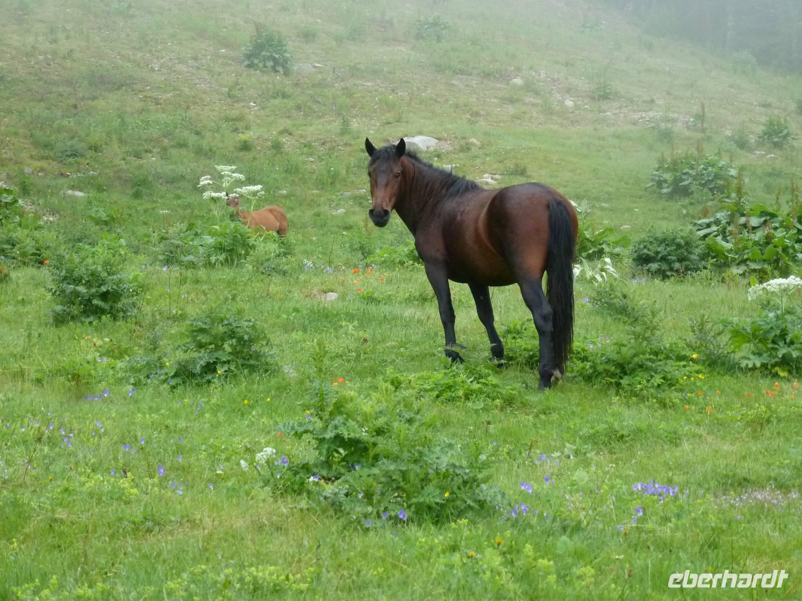 Auf unserem Rückweg zum Maljowitza Komplex verbesserte sich das Wetter etwas und wir konnten nahe der Bärenwiese 5 grasende Pferde beobachten.