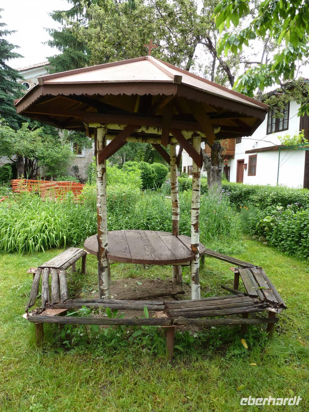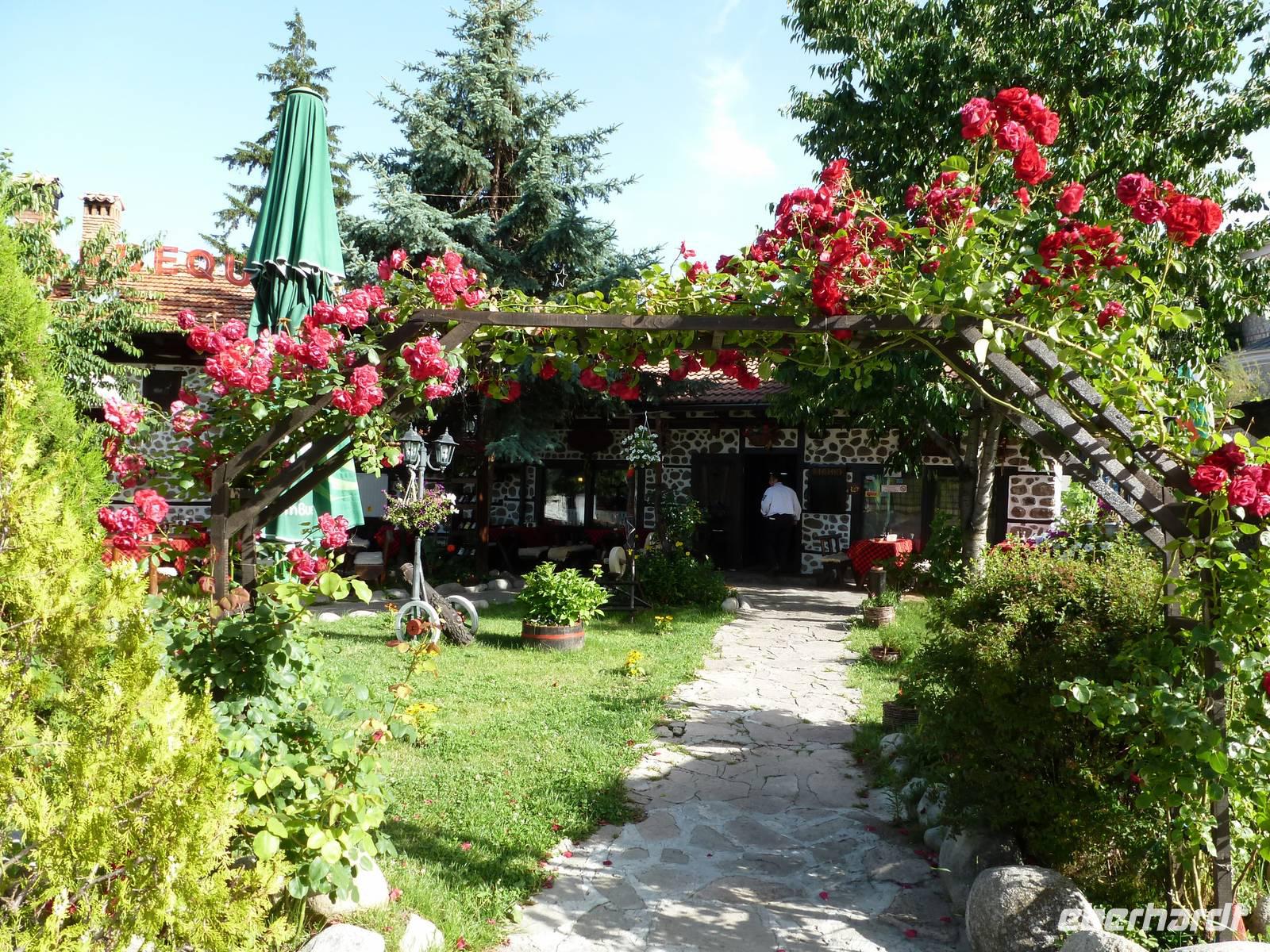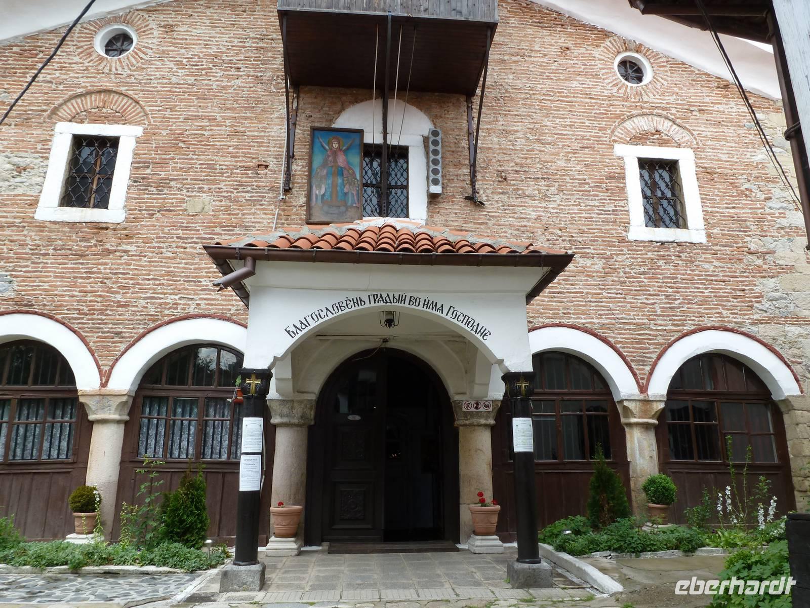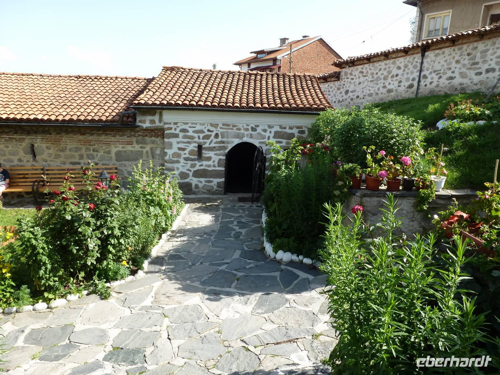 Mit dem Bus fuhren wir bis zum Roshenkloser - Besichtigung und interessante Führung durch Tsvetana. Ein Mönch zeigte uns einen besonderen Altarraum neben dem Haupt Altar, der sonst geschlossen ist. Im Innenhof steht ein Granatapfel-Baum, Paradies-Baum (Kaki) und Kirschlorbeer. Alles ist mit Weinreben durchzogen und diese Kulisse wirkt wie ein Film.