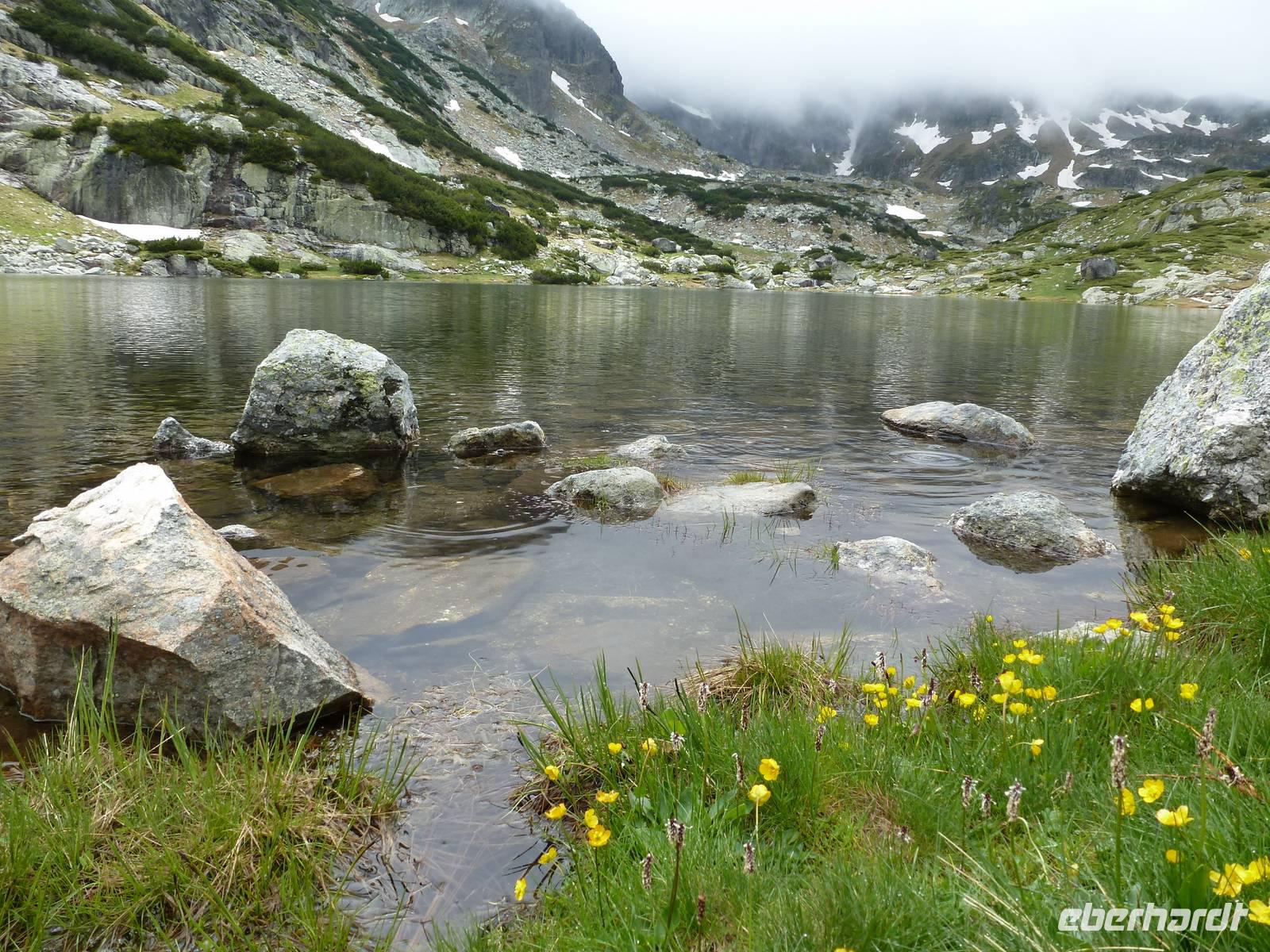 Unser Rundwanderweg begann am „Nierensee“, dann zum Zwillings-See (Esero blisnaka). Das „Auge“ auf 2.440 Meter Höhe und die „Träne“ - ist der höchstgelegene See, den wir durch den Nieselregen und Nebel nicht erreichen konnten.