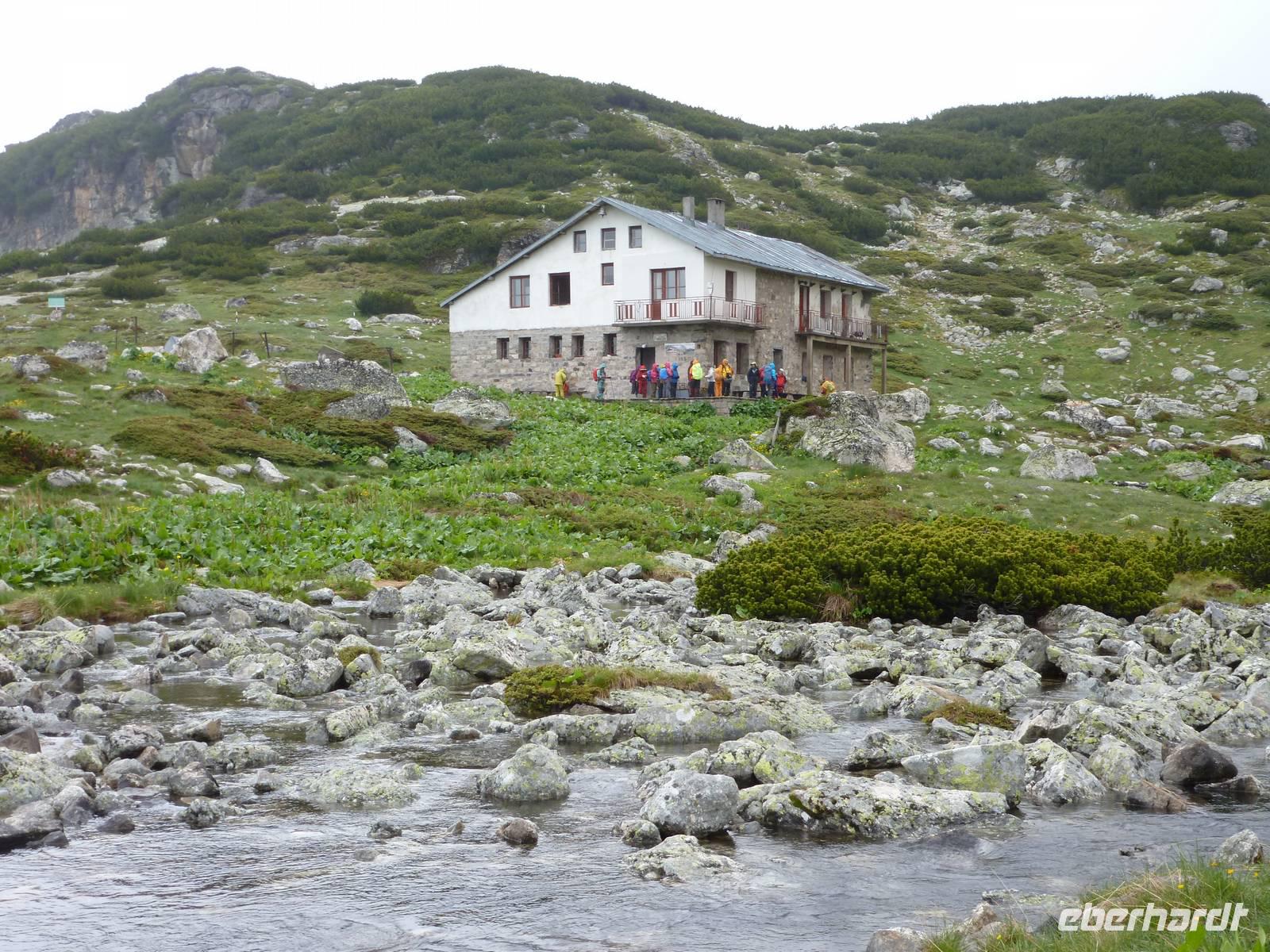 Nachch kurzem Transfer erreichten wir den Maljowitza Komplex und über die große Bärenwiese ging es in das Maljowitzer-Tal. Entlang eines rauschenden Baches erreichten wir nach ca. 1,5 Stunden die Maljowitza Hütte auf 1.960 Meter Höhe. Da es nieselte und neblig war, entschlossen wir uns die Mittagspause in der Hütte am Kamin zu verbringen.