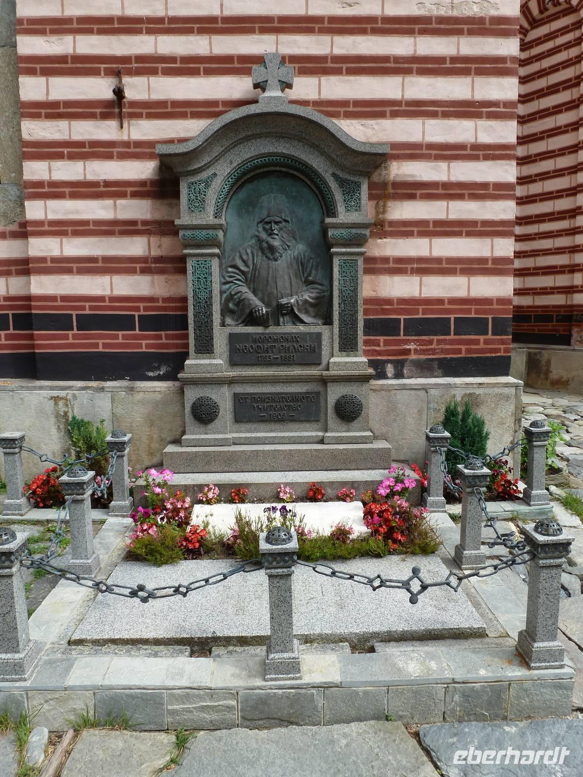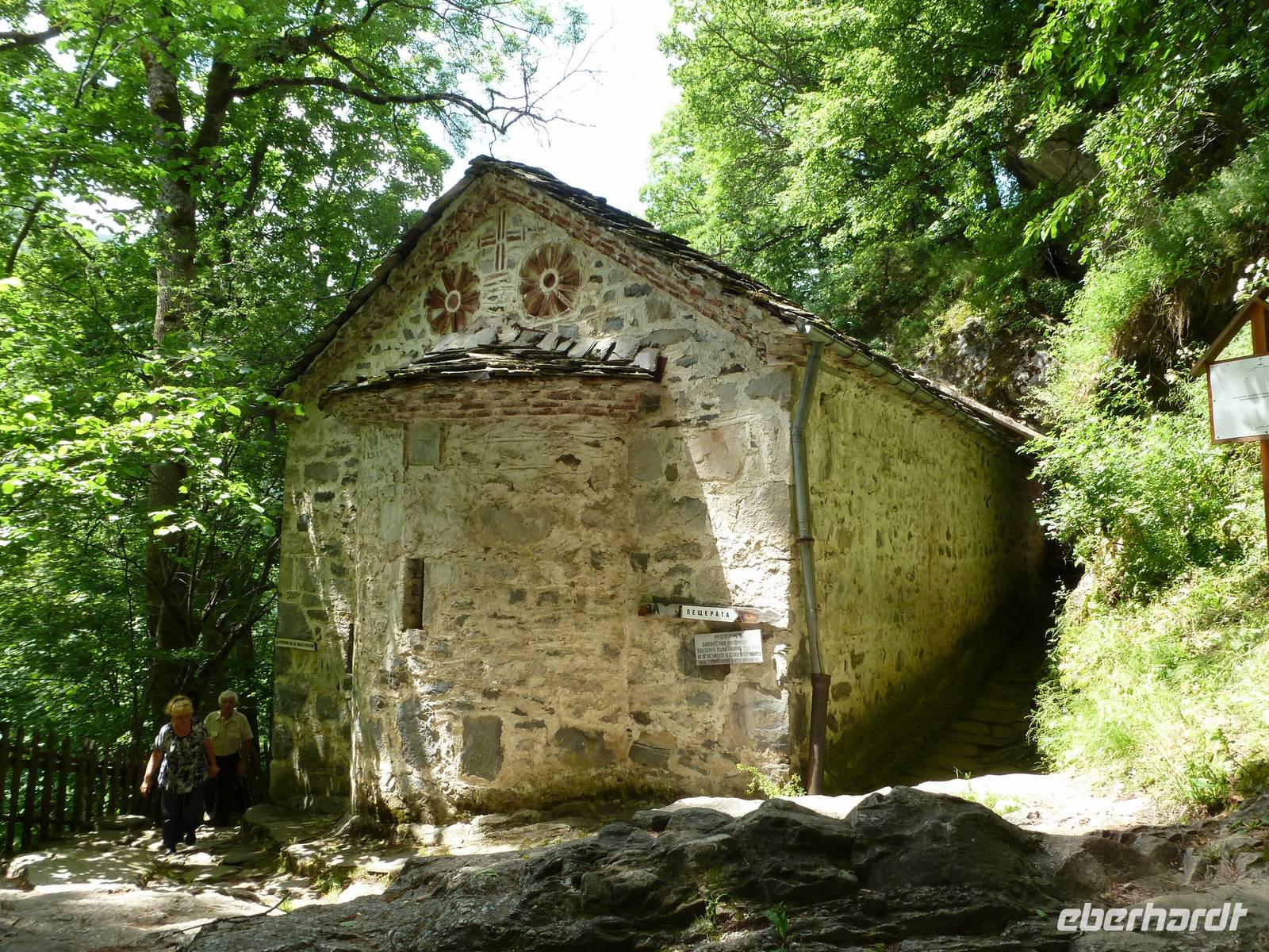 Unser letzter Wandertag begann mit dem Aufstieg über Wiesen hinter dem Rila Kloster. Nach einer knappen halben Stunde erreichten wir die Schule und Kirche des „Heiligen Lukas“ von 1843. Leider ist sie meist verschlossen und wir konnten sie nur von außen sehen. Im Anschluss daran sahen wir das Grab von IVAN RILSKI, der heute noch sehr verehrt wird.