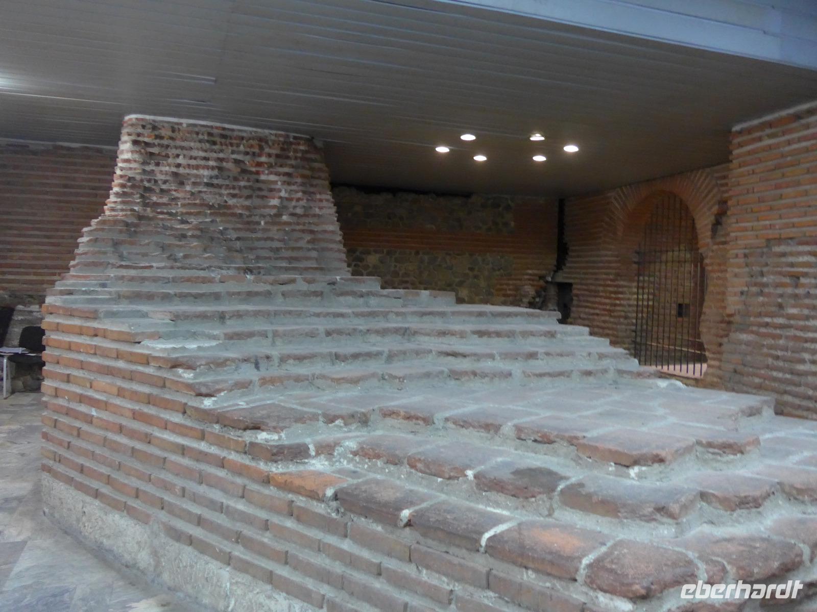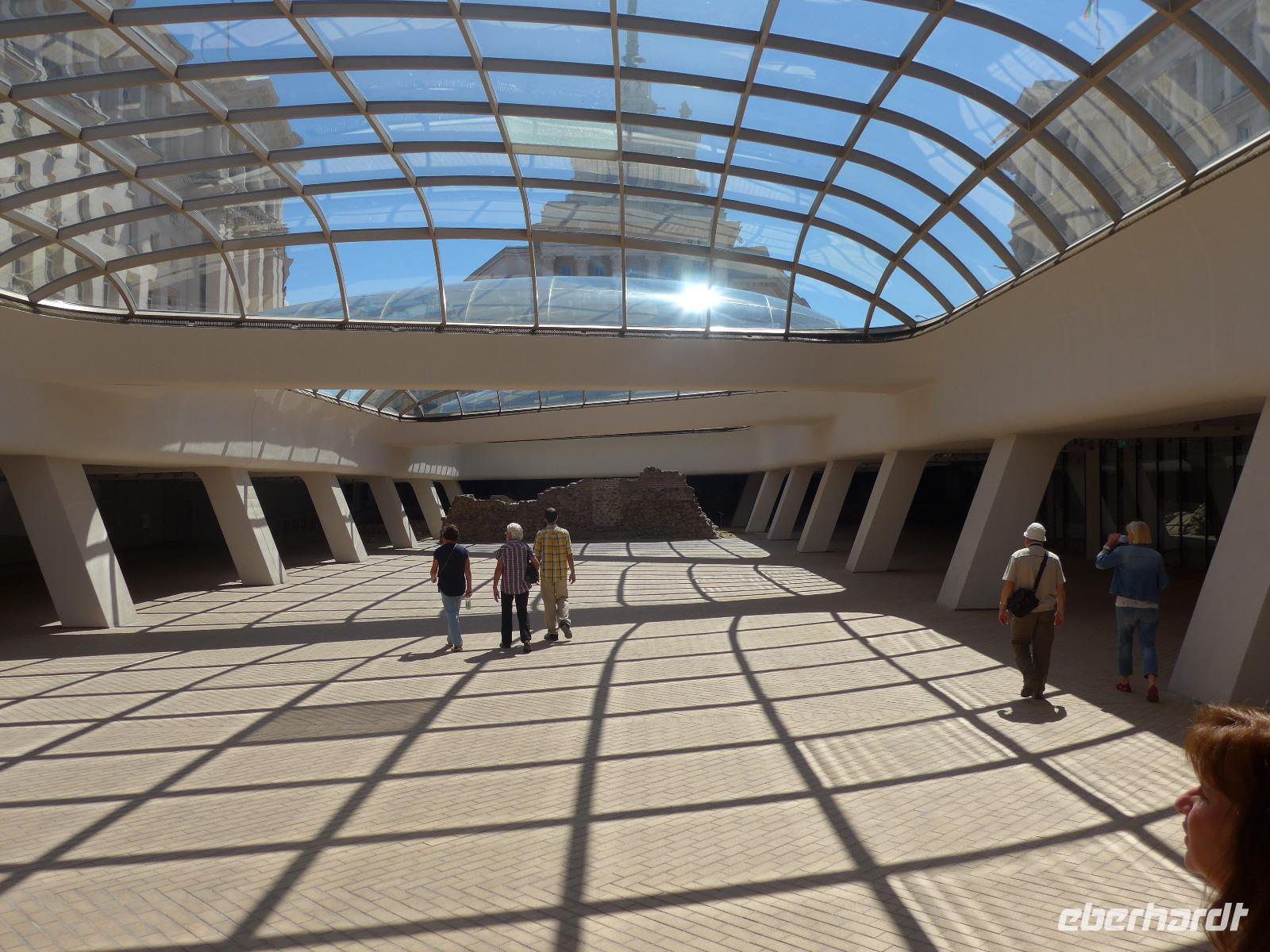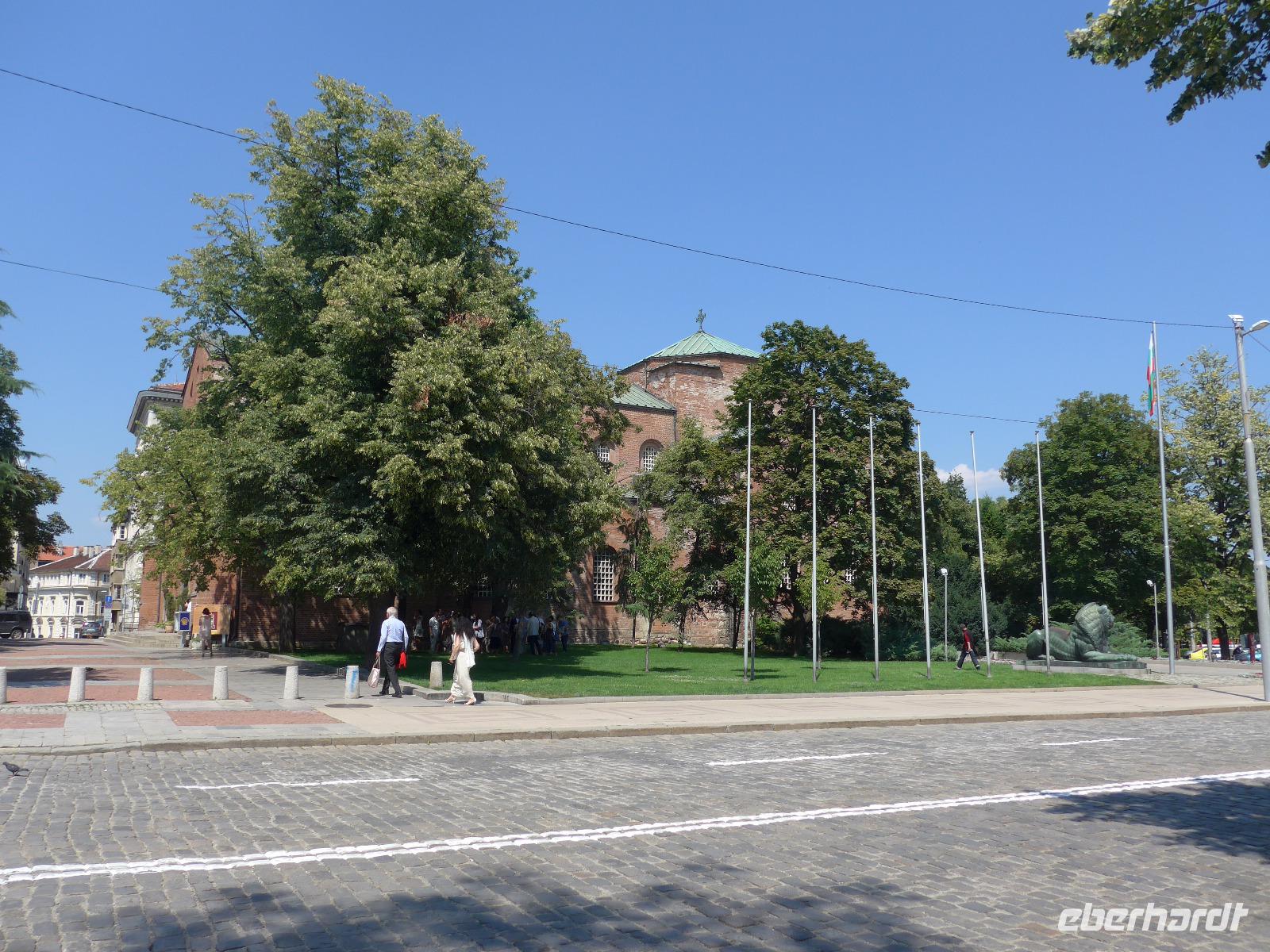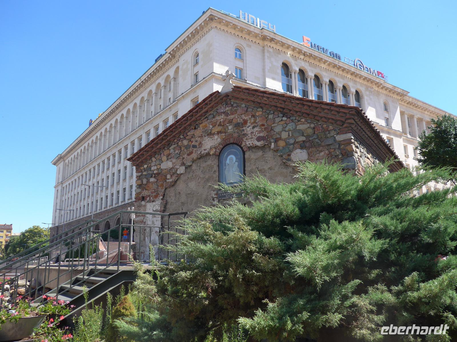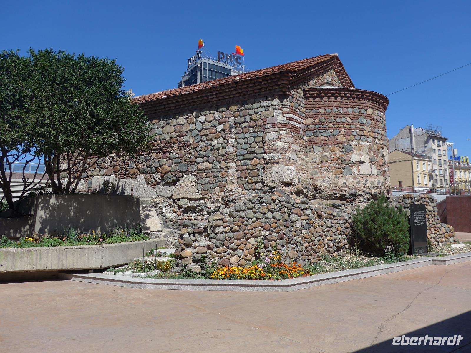 Noch einmal Koffer laden und dann begann die Rückfahrt nach Sofia. Wir nutzten die neu gebaute Autobahn und erreichten so die bulgarische Hauptstadt nach 2 Stunden Fahrt. Im alten Stadtzentrum stiegen wir aus und Milen zeigte uns die wichtigsten Sehenswürdigkeiten zu Fuß. Wir sahen die Moschee, das alte Badehaus, die heißen Quellen, die Markthalle, die Synagoge und statteten der neu ausgegrabenen antiken römischen Stadt Serdica einen ausführlichen Besuch ab. Beim Bau der Metro war man auf die Mauerreste gestoßen und begann mit den systematischen Ausgrabungen und der Sicherung des freigelegten Areals. Dabei wurde das alte Serdica geschickt in ein System von Unterführungen eingegliedert und so läuft man heute über das römische Pflaster, wenn man eine Strasse unterquert. Eine tolle Lösung ! Danach sahen wir noch den Unabhängigkeitsplatz und die Wache am Präsidentenpalast. Zum Schluß folgte der Höhepunkt - die Rotunde des Hl. Georg - im Innenhof von Präsidentenpalast und Sheraton Hotel. Wir besuchten die frühchristliche Kirche, wo gerade eine Taufe stattfand. Nun wurde es aber Zeit, Abschied zu nehmen. Wir brachten 2 Gäste zu ihrem Anschlußhotel am Bahnhof in Sofia und alle anderen fuhren zum Flughafen. Vom Flugzeug aus sahen wir nochmals Sofia und das Witoscha Gebirge. Eine traumhaft schöne Reise ging zu Ende.