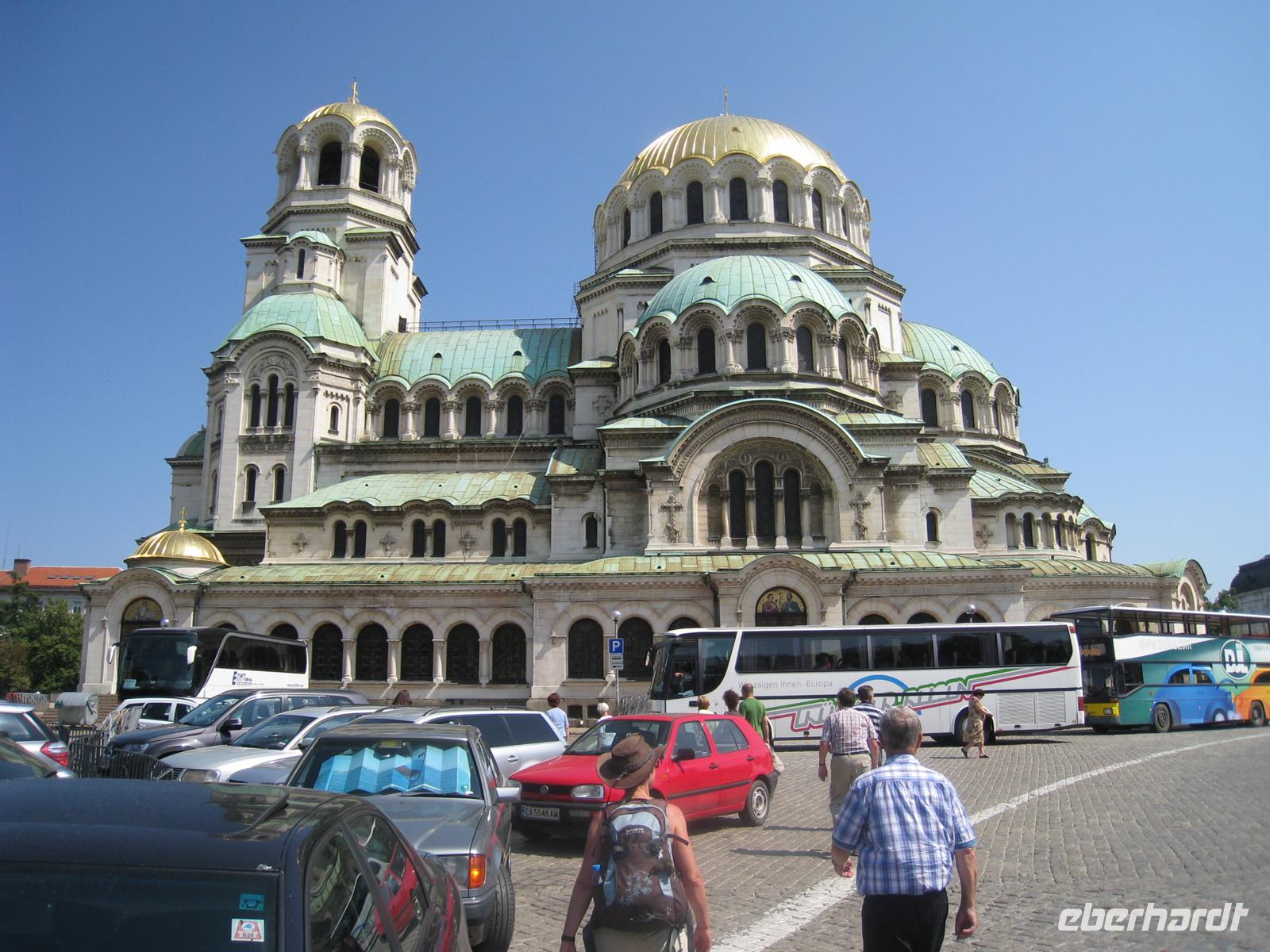 Am Morgen ging es in die Landeshauptstadt Sofia, zur Hl. Sophia und Sv. Nedelje, dann an Regierungsbauten vorbei zum Theater Ivan Vasov und zur Newski-Kathedrale. Unser Stadtbummel wurde übergeleitet in einen kleinen Einkaufsbummel in einem Einkaufszentrum, wir wir es mittlerweile zwischen San Franzisco und dem Baikalsee finden können. Aber es reichte für den Kauf bulgarischer Souvenirs und zu einem letzten landestypischen Essen. Über München ging es dann mit dem Flugzeug nach Dresden... ein letzter Blick beim Aufstieg über Sofia in Richtung der von uns erstiegenen Berge. - Bis zum nächsten Mal bei einer Rundreise oder Wanderreise mit Eberhardt Travel!