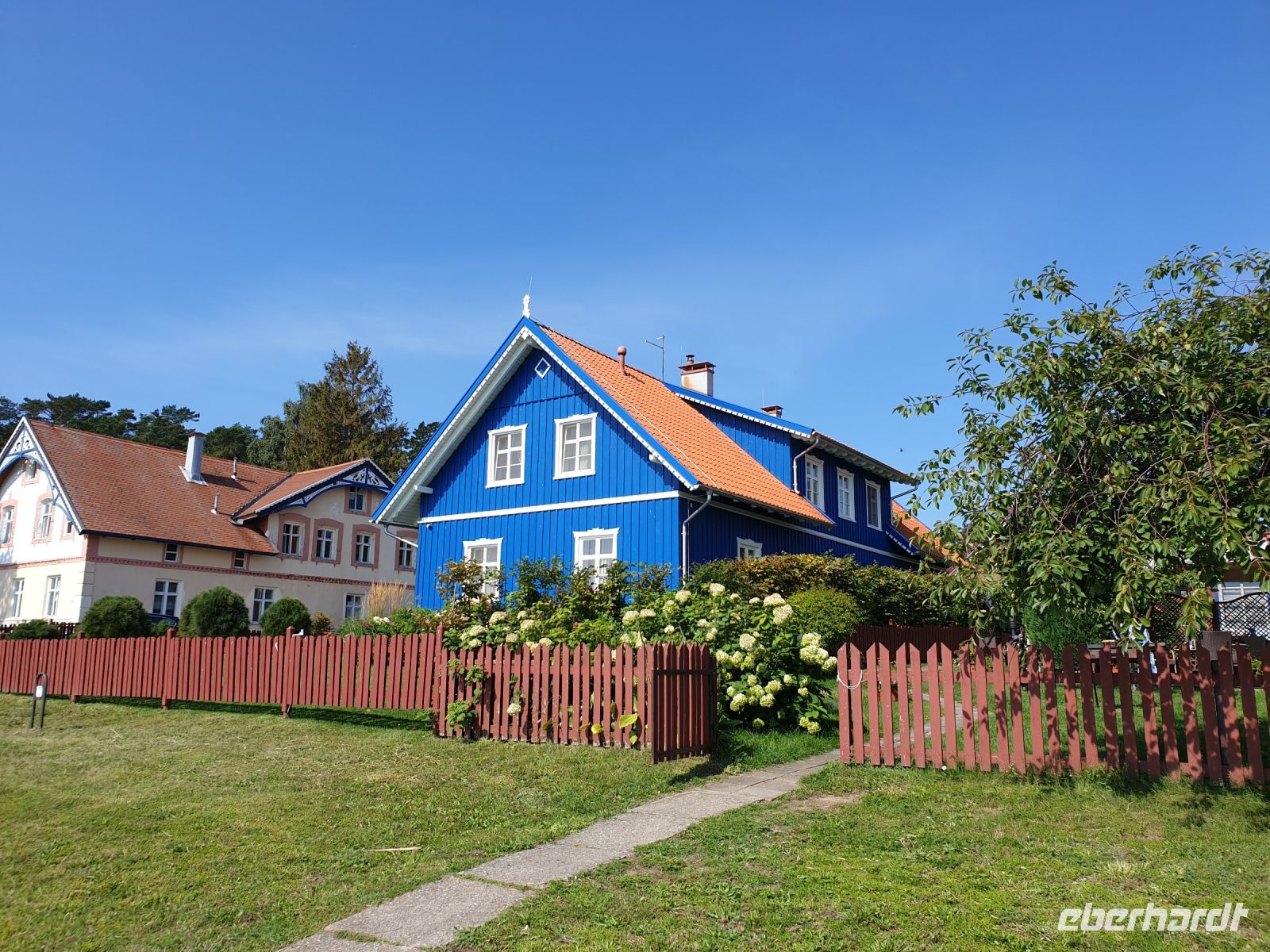 Nach einem Zwischenstopp im Wald der Kormorane, steigen wir in Nida unterhalb des Thomas-Mann-Hauses aus. Wir rollen entlang der Haffpromenade durch den reizvollen Ort, richten den Blick auf die ausgedehnten Wasserflächen.