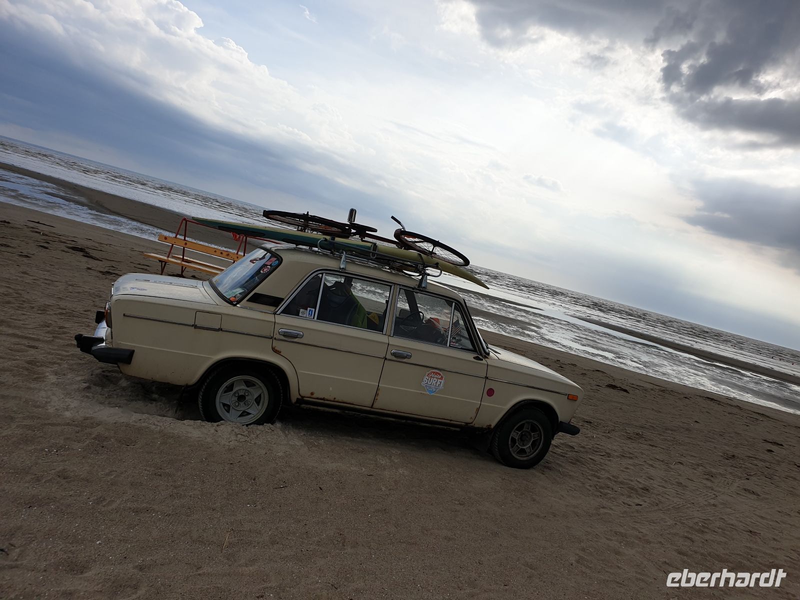 Weiter geht es entlang der Rigaer Bucht zur estnischen Grenze. Bevor wir unser heutiges Ziel, Tallinn, erreichen, legen wir noch einen Stopp am bestens rolligerechten Strand von Pärnu ein.