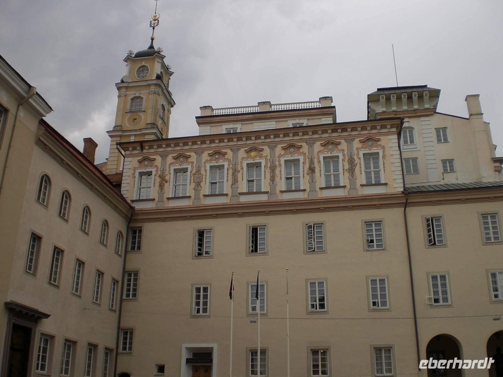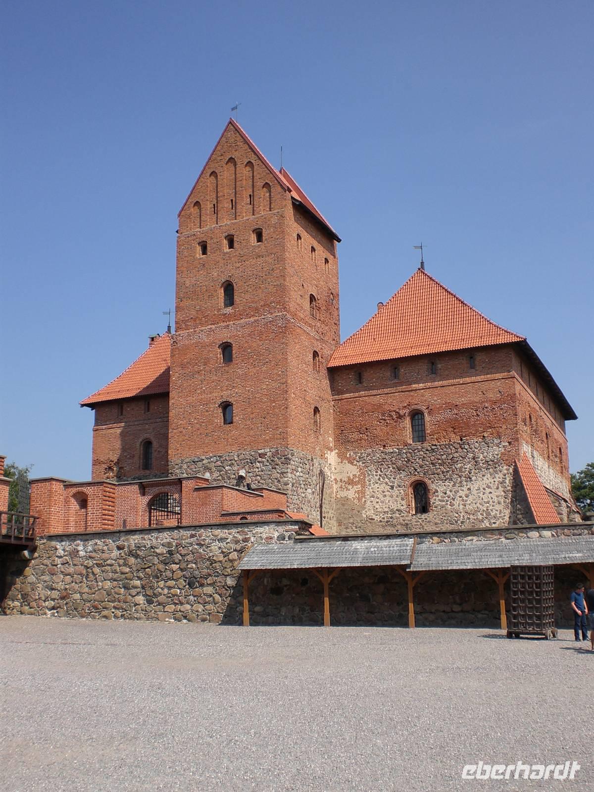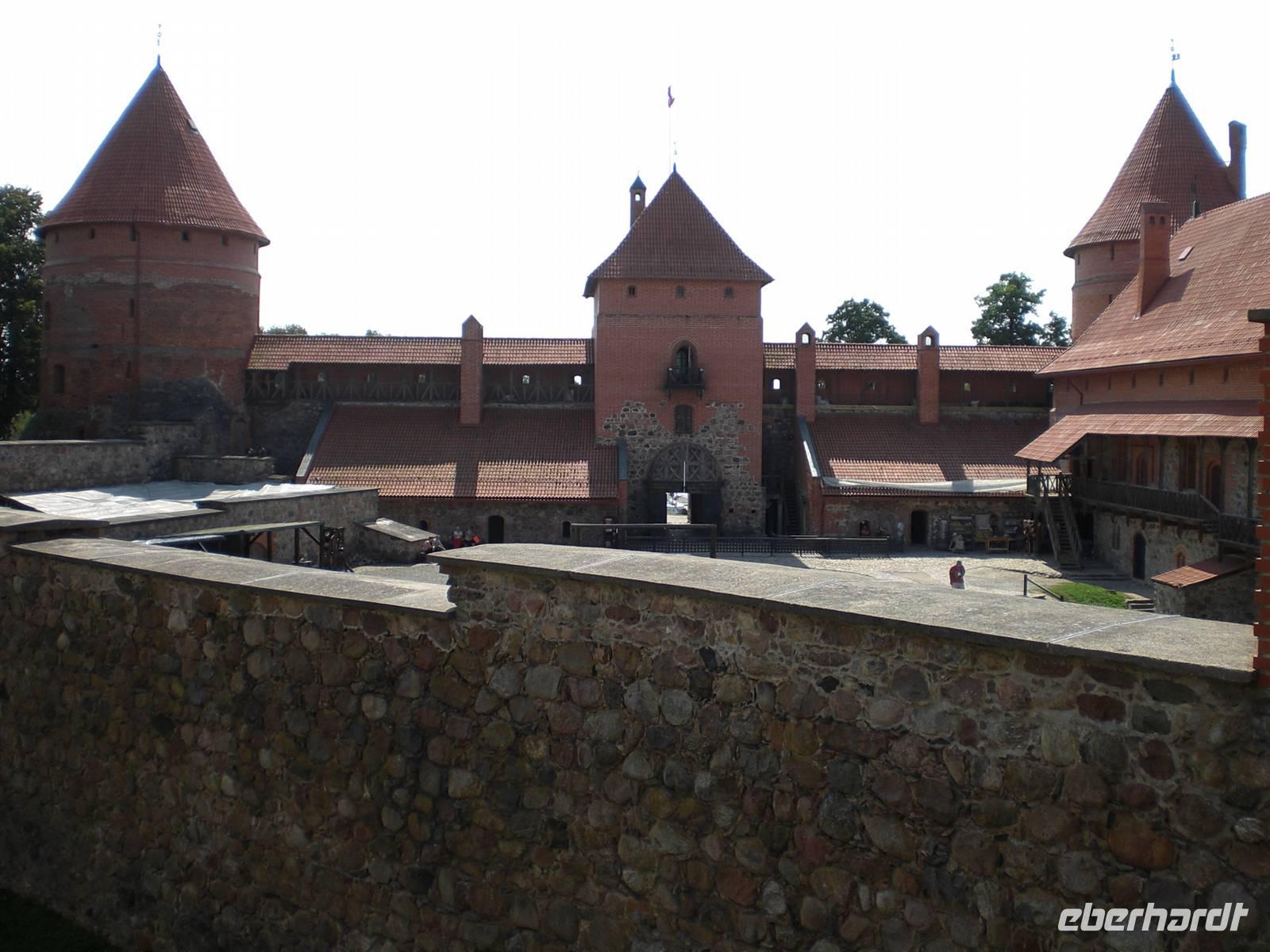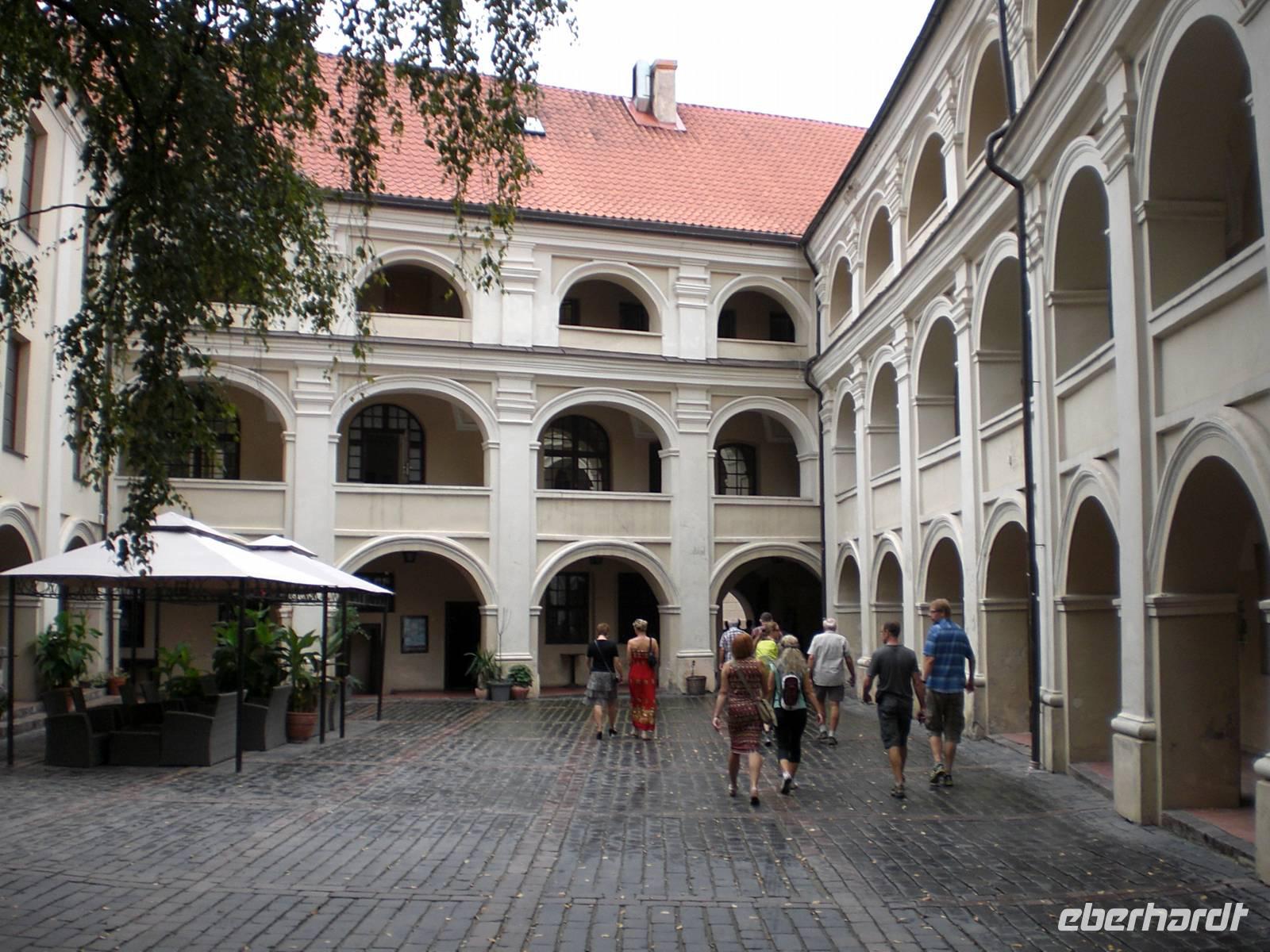 Der Tag begann mit der Stadtrundführung, unsere Stadtführerin Irena erwartete uns schon vor dem Hotel. Bei dem Rundgang sahen wir die Kathedrale, das Rathaus, das Jüdische Viertel, das Tor der Morgenröte und Vieles mehr. Anschließend hatten wir noch ein wenig Zeit selbstständig die Stadt zu erkunden, bevor es vom Hotel weiter nach Trakai ging. Bei wunderschönem Wetter fuhren wir von einem Parkplatz in der nähe der Wasserburg zu dieser. Dort angekommen gingen wir über eine längere Brücke zur Wasserburg von Trakai und besichtigten diese. Man konnte viele Gegenstände auch aus Deutschland sehen. Nach der Besichtigung fuhren wir noch einmal ein kleines Stück zurück um an einer Badestelle Baden zu gehen. Danach ging es mit dem Rad weiter bis nach Semeliškes. Von dort fuhren wir dann weiter mit dem Bus nach Kaunas.