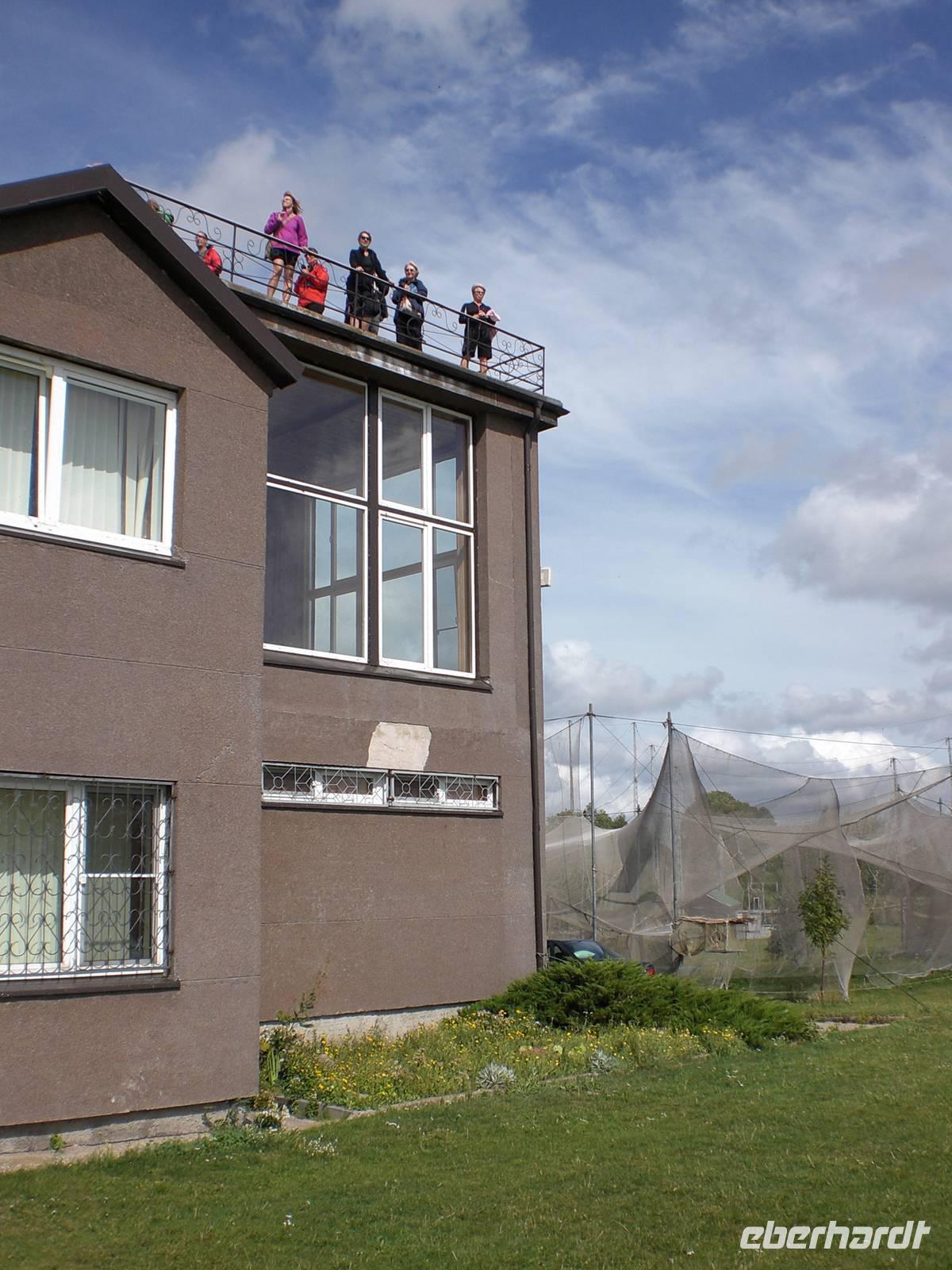 Mit dem Bus ging es am heutigen Tag zur Vogelwarte in Vente. Dort angekommen machten wir Picknick, es war zwar etwas windig aber dafür hatten wir viel Spaß. Nach einem kleinen selbstgebrannten Schnapps gingen wir in die Vogelwarte hinein. Hier wurden wir mit viel Witz über die Vogelwarte, die Zugvögel von Litauen aufgeklärt. Als die Unterrichtung zu ende war, konnten wir noch auf das Dach und hatten eine schöne Aussicht. Von hier konnte man bis zur Kurischen Nehrung sehen. Von der Vogelwarte ging es dann mit dem Rad bis nach Dreverna. In Dreverna konnten wir Kaffee trinken gehen, unser Reisebegleiter stieg derweilen auf einen Apfelbaum und pflückte reife Äpfel für uns. Unser Bus holte uns nach einer kurzen Weile ab und wir fuhren mit diesem nach Klaipeda. Kurz vor Klaipeda wurden wir dann von unserem Busfahrer überrascht, welcher uns eine Freude machte und uns seine Kindheitsgegend zu zeigen. Durch diese Überraschung kamen wir an die Grenze von Oblask Kaliningrad und konnten die Grenzstadt "Sowetsk" sehen. Nach einer kurzen Entspannungsphase gingen wir vom Hotel zu unserem Restaurant. Unterwegs dort hin konnten wir sehen, wie die Brücke per Hand für den Fußverkehr gedreht und dadurch für den Schiffsverkehr gesperrt wurde. Und am Brunnen "Ännchen von Tharau" wurde uns noch einiges zur Stadt, von unserer örtlichen Reiseleiterin, erklärt.