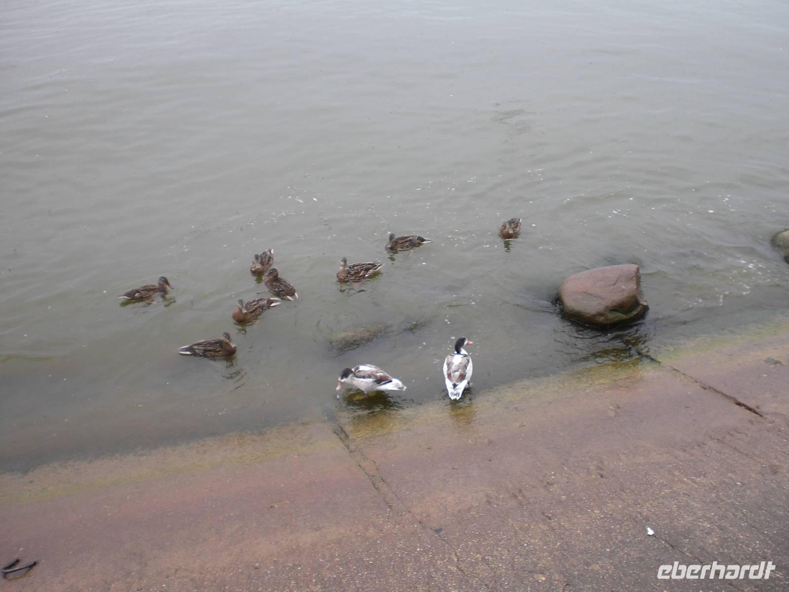 Mit dem Rad fuhren wir vom Hotel zum Paddelendpunkt. Hier stiegen wir in kleine Transferfahrzeuge, welche uns an den Startpunkt fuhren, wo unsere Kanus schon bereit lagen. Nach einer kurzen Einweisung fragte unser Reisebegleiter den Kanuverantworlichen, ob er von uns ein Gruppenfoto machen kann. Dieser sagte ja und hatte kurzerhand unsere gesamten Kamers in der Hand und staunte nicht schlecht. Dann schnappten wir unsere Kanus und paddelten los. Wir hatten dabei richtigen Spaß. Paddelten zusammen, ließen uns treiben und fütterten Enten. Und einmal musste unsere örtl. Reiseleiterin und unser Reisebegleiter ein Kanu retten, weil es gekentert ist - mit viel Spaß wurde die Rettungsaktion durchgeführt. Und als wir unter einer Brücke durchfuhren gab es sogar eine Stromschnelle.