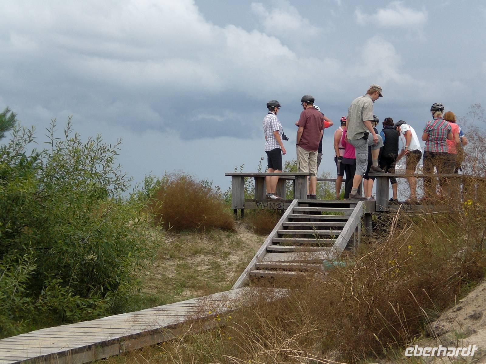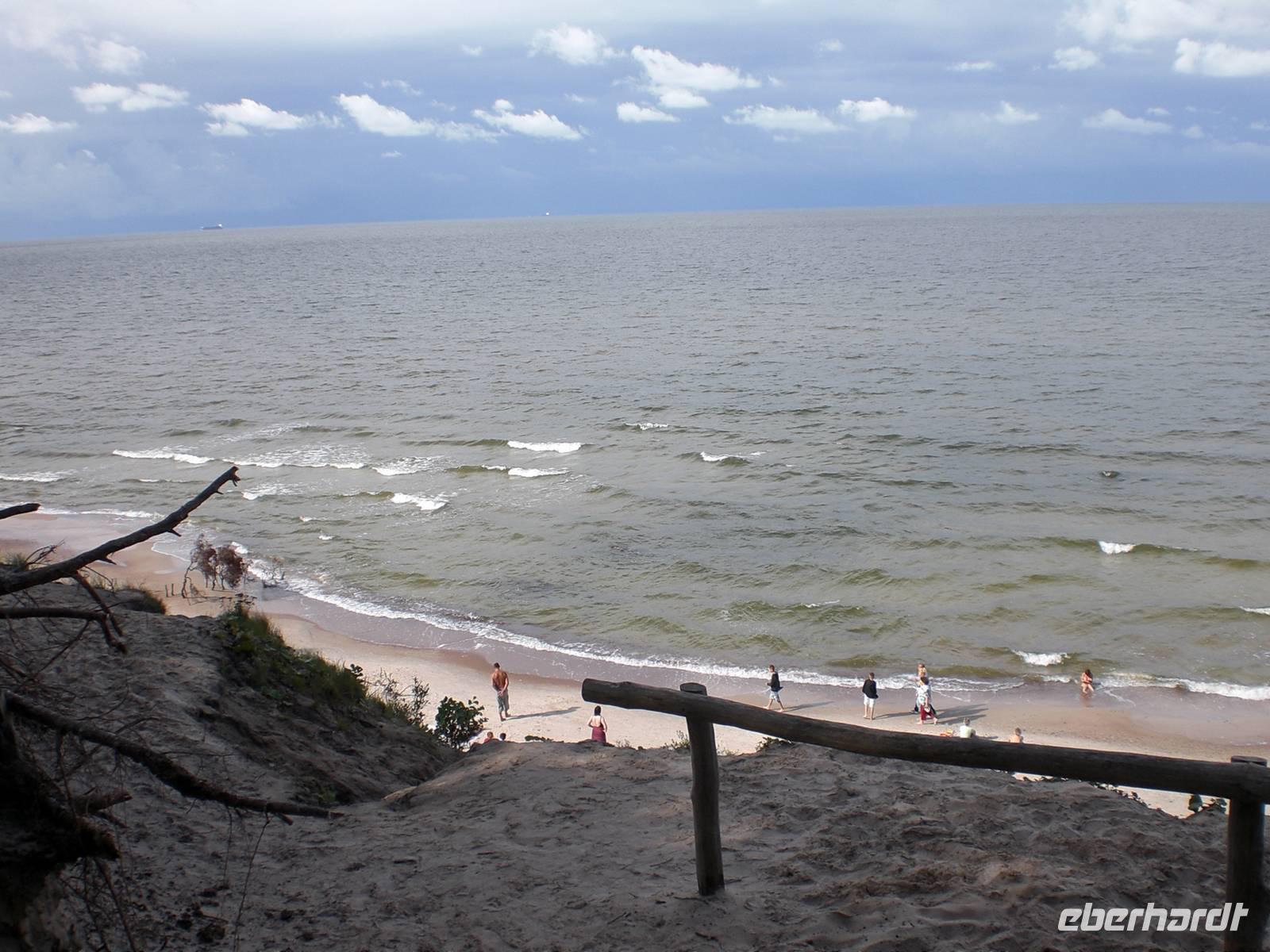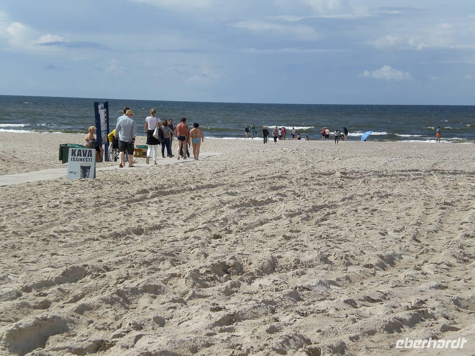 Wieder ging es mit dem Bus vom Hotel los. Wir fuhren zur Autofähre, welche zur Kurischen Nehrung übersetze. Was hatten wir für ein Glück, dass das Busunternehmen mit welchem wir fuhren eine Sondergenehmigung hat und dadurch immer an den ganzen Autos vorbei fahren konnte und sich somit nicht in der Schlange stehen musste. Auf der Kurischen Nehrung mussten wir dann noch die Gebüren bezahlen um dann bis nach Nida zu fahren, welches kurz vor Oblisk Kaliningrad liegt. Von Nida fuhren wir zu den Sanddünen, machten ein Gruppenfoto und fuhren dann weiter zum Thomas Mann Haus, welches wir auch besichtigten. Nach der Besichtigung fuhren wir weiter bis wir gegen Nachmittag an einem Fischrestaurant ankamen. Hier teilte sich dann die Gruppe. Eine Hälfte fuhr mit der örtl. Reiseleiterin zum Bus welcher diese zum Hotel zurück fuhr, die andere Hälfte fuhr die restliche Strecke bis zu Fähre zurück. Unterwegs fuhren wir auf dem Radweg an der Ostsee und durch den Nadelbaumwalt entlang. An einer schönen Stelle machten wir eine Pause und konnten die Themperatur der Ostsee fühlen. Zu unserer Freude kam in diesem Augenblick auch ein Hochzeitspaar an, welches am Strand Fotoaufnahmen machte. Weiter ging es bis zur Fähre, mit welcher wir wieder übersetzten und wir fuhren das letzte Stück bis zum Hotel zurück.