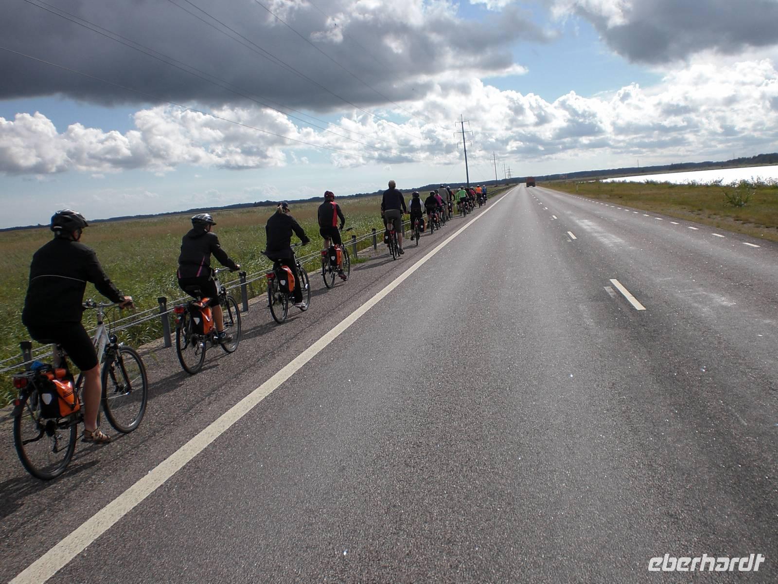Wieder ging es vom Hotel mit den Rädern los. Wir fuhren von "Mandjala" - "Lääts" - "Kaugatoma" - "Rahuste" nach "Ohessaare", wo wir am Leuchtturm eine längere Rast einlegten. Dabei fuhren wir über Schotter und asphaltierte Straßen und machten auch zwischendurch kurze Stopps. Dann ging es weiter über "Türju" - "Tammuna" bis nach "Sääre". In Tammuna zogen wir unser Picknick vor, da zufälligerweise gerade unser Busfahrer hinter uns war, sodass wir das Picknick schon hier aus dem Bus holen konnten. Als wir in Sääre ankamen, trennte sich dann wieder die Gruppe. Die eine hälfte fuhr mit dem Bus zurück zum Hotel, die anderen fuhren 40 extra Kilometer mit dem Rad. Die Route führte auf der Ostküste zurück zum Hotel.