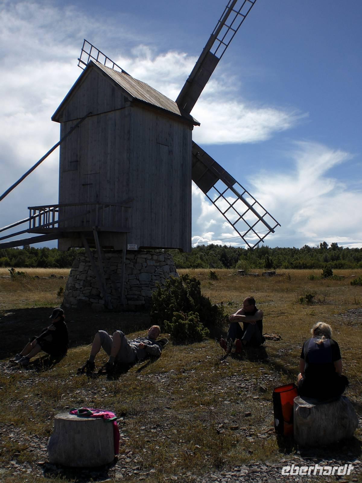 Sehr zeitig mussten wir heute mit dem Bus abfahren, da wir unsere Fähre nach Saaremaa bekommen mussten. Unterwegs legten wir einen kurzen Stopp ein. An der Fähre angekommen mussten wir aber leider feststellen, dass wir diese um nur wenige Minuten verpasst hatten. Doch hatten wir heute Glück, dass die nächste Fähre in 30min ging, so dass wir nicht all zu lang warten mussten. In dieser Zeit gingen unser Reisebegleiter und unsere örtl. Reiseleiterin für unser Picknick einkaufen. Auf der Fähre konnten wir einen Kaffee trinken. Auf der Insel Muhu angekommen fuhren wir ersteinmal nach Koguva. Hier konnten wir ein kleines Dorf besichtigen und dessen Museum. Nach der Besichtigung gab es das eingekaufte Picknick, welches wir sehr genossen. Weiter ging es nur ein kleines Stück mit dem Bus, wir fuhren auf den Damm, welcher die Insel Muhu mit der Insel Saaremaa verbindet. Hier entluden wir unsere Räder und fuhren mit diesen Richtung Norden nach Paaste. Unterwegs konnten wir bei einem Stopp die Insel Hiiumaa sehen. Weiter ging es mit dem Bus zum Windmühlenpark Angla und von dort aus weiter zu unserem Hotel in Mandjala.