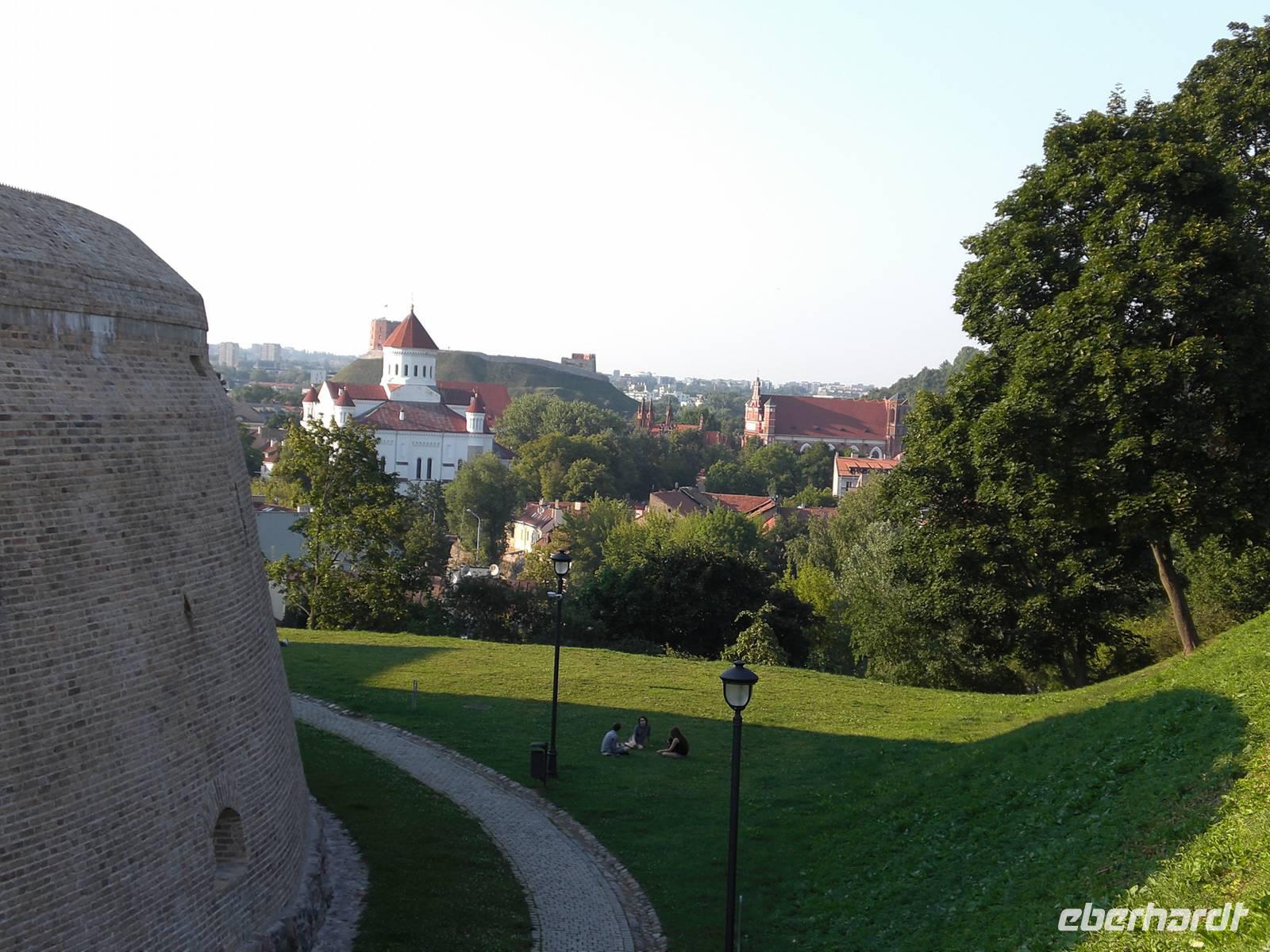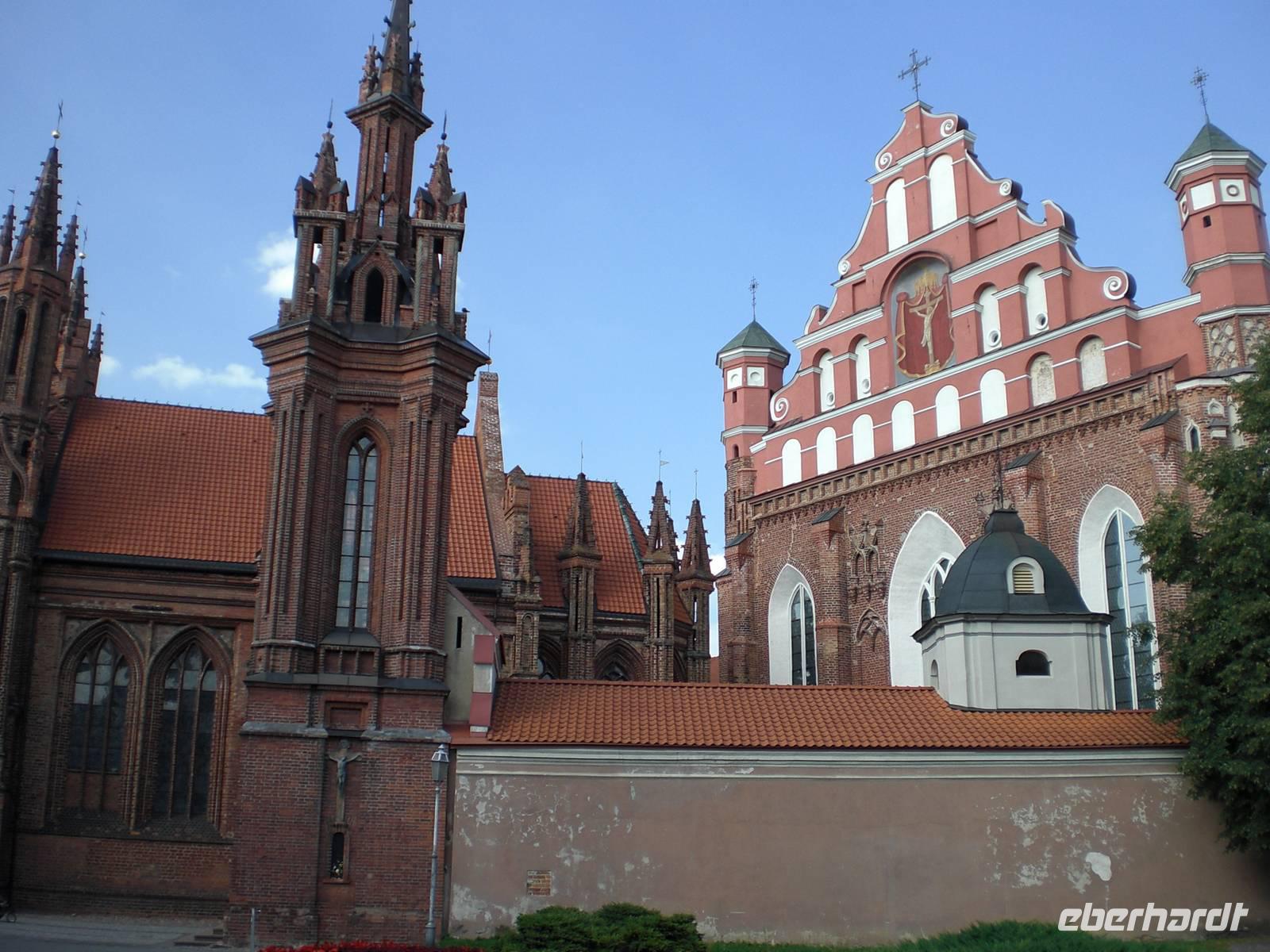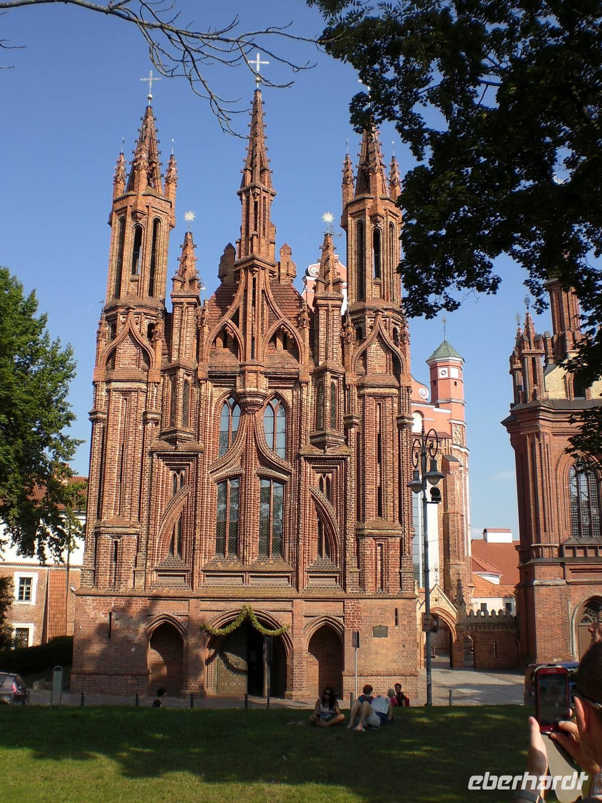 Wir gingen durch die Altstadt von Vilnius und kamen dabei unter anderem zu der Kathedrale der Stadt, besichtigten die St. Anne's Church, liefen über den Rathausplatz und sahen das Rathaus, gingen zum Tor der Morgenröte und liefen zu den alten Mauern um von dort zum Abendessen ins Restaurant Loks zu laufen.