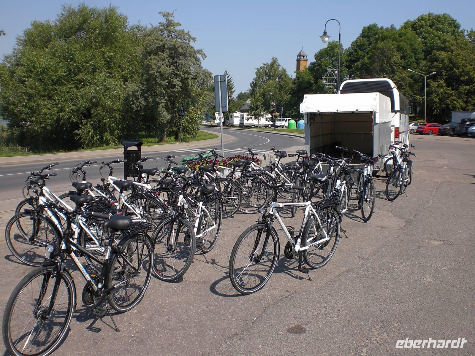 Mit dem Bus ging es nach dem Frühstück zur Wasserburg Trakai. In der Zeit der Burgbesichtigung luden unser Busfahrer und unser Reisebegleiter die Räder vom Fahrradanhänger ab.