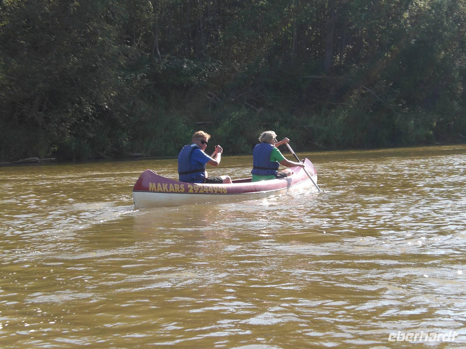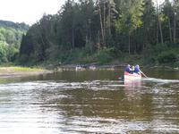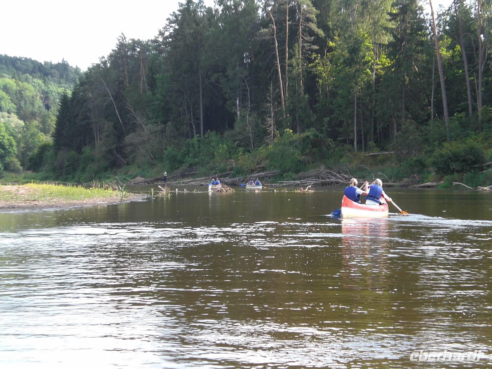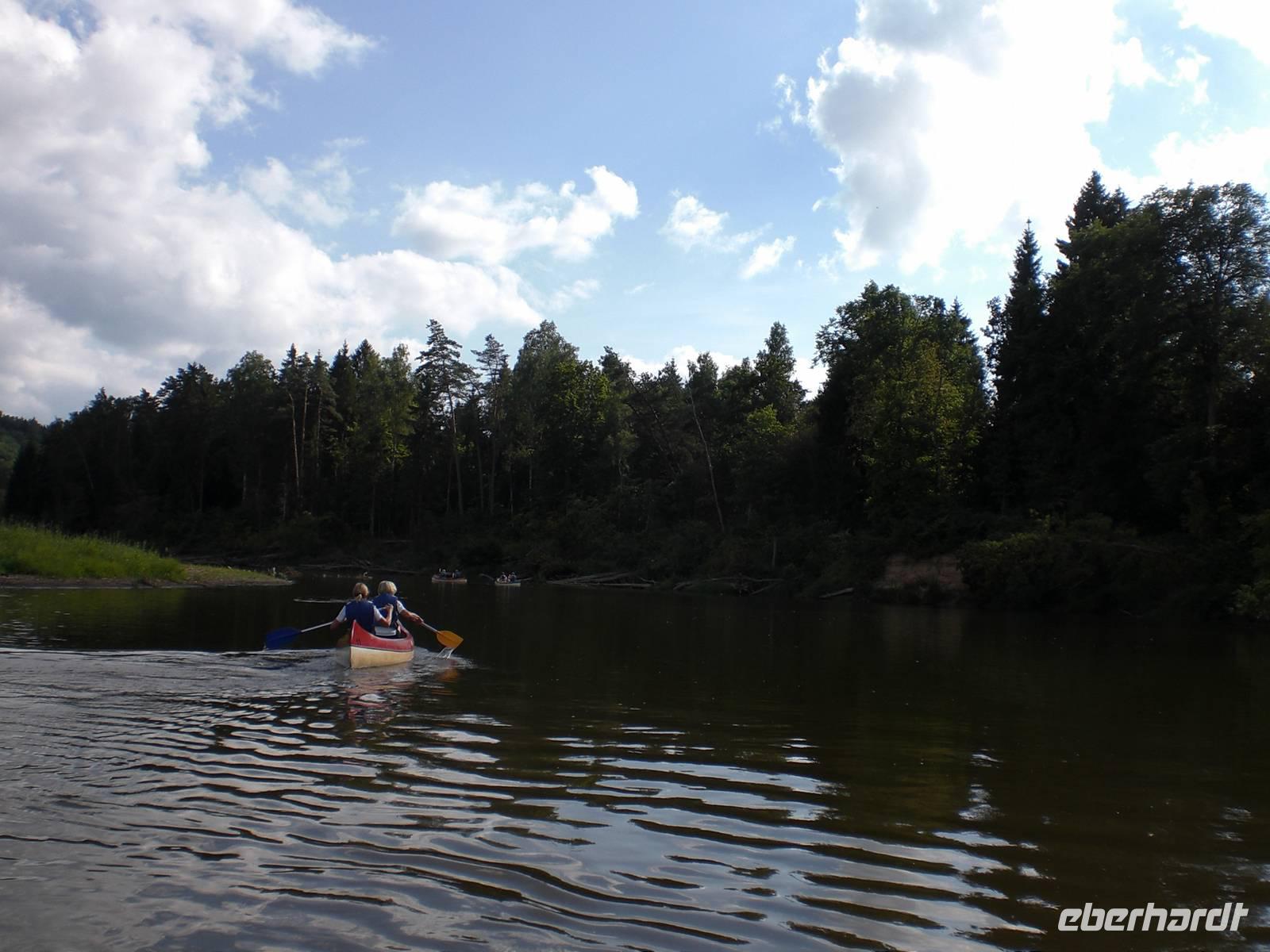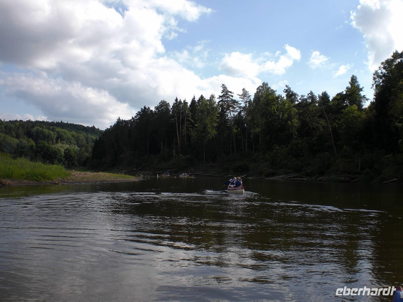 Nach einer kurzen Autoahrt flussaufwärts und einer Einweisung stiegen wir in unsere Paddelboote und paddelten bei sonnigem Wetter und recht wenig Wasser in der Gauja flussabwärts. Wir alle meisterten dabei die schwierige Stelle an der Brücke und kamen soweit trocken zurück an die Anlegestelle.