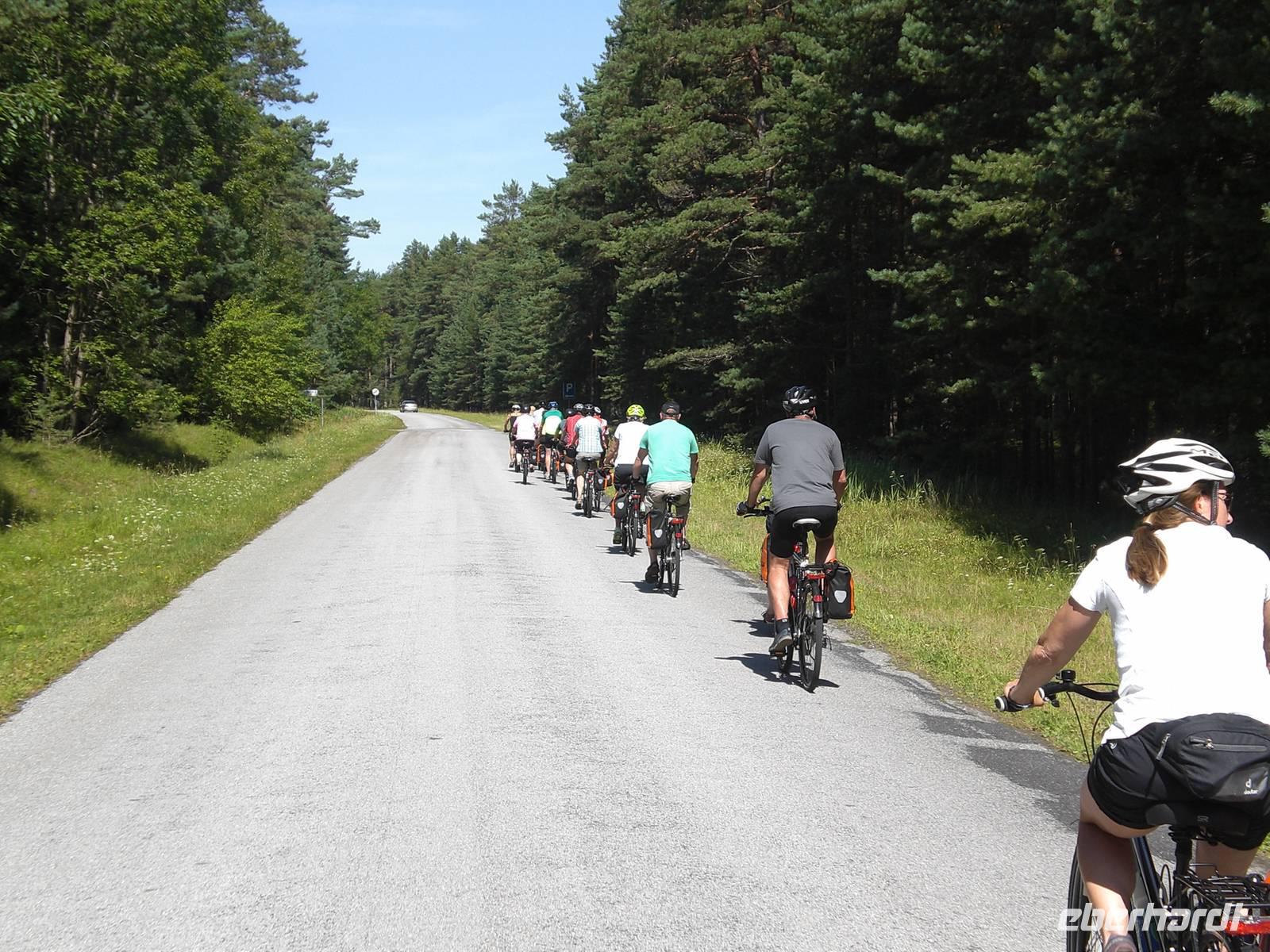 Wohl gestärkt ging es zu unseren Fahrrädern, welche wir auf unsere Körpergrößen einstellten und dann damit eine erste Proberunde auf dem Busparkplatz drehten.