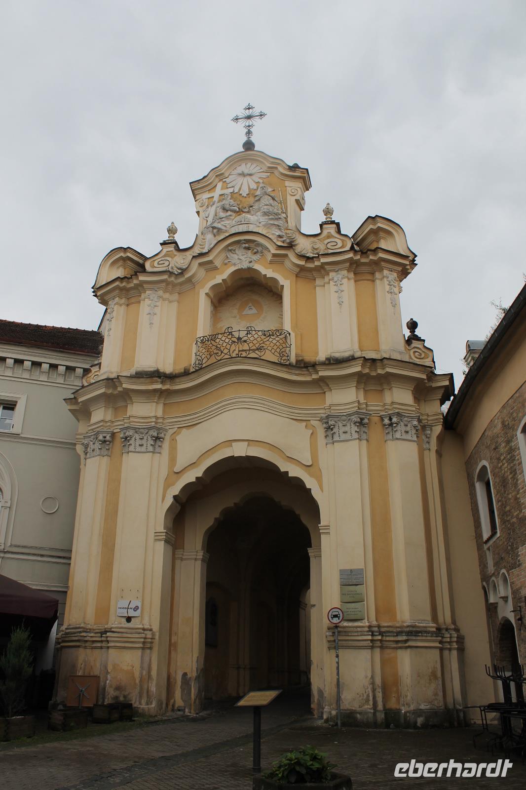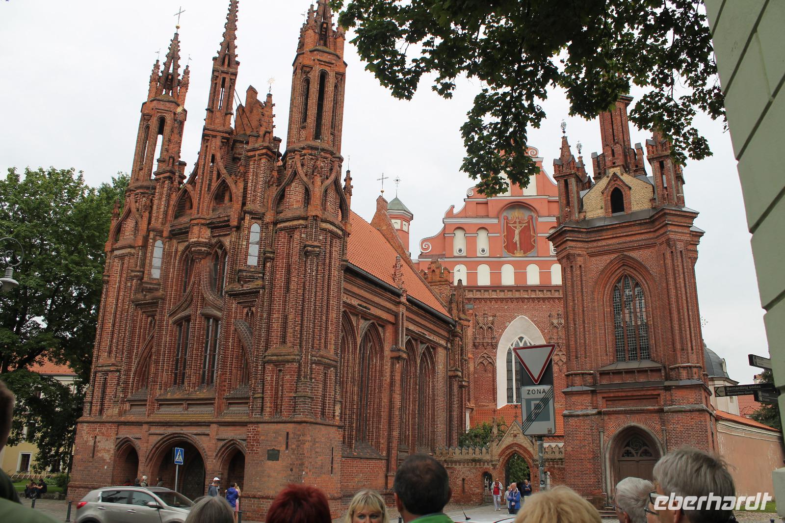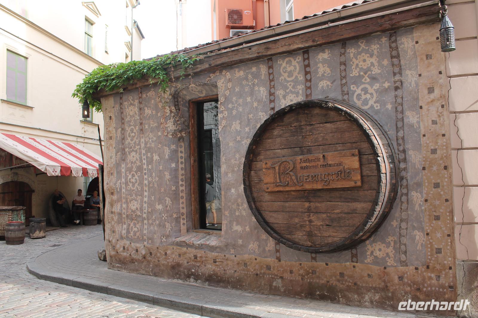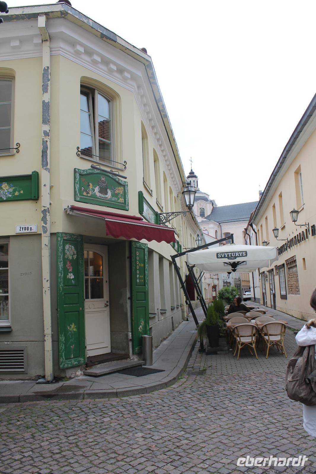 Der erste Tag unserer Reise verlief problemlos. Früh morgens starteten wir von verschiedenen Flughäfen in Deutschland und landeten pünktlich in Kaunas. Mit einem Transfer gelangten wir zum ersten Hotel in Vilnius und lernten Aija, unsere Reiseleiterin, kennen. Wir verabredeten uns zum Stadtrundgang und bezogen erst einmal unsere Zimmer im Maria Domus Hotel, direkt am Tor der Morgenröte. Von hier aus ging es los durch die Stadt der Kirchen. Und wirklich - gefühlt war jedes dritte Gebäude eine Kirche, ein Teil eines Klosters oder etwas anderes geistliches. Unsere Stadtführerin erklärte, dass die Menschen in Vilnius so häufig den Gottesdienst besuchen, weil es ihnen früher verboten war - Sie haben Nachholbedarf. Vorbei an vielen kleinen Souvenirgeschäften und teuren Wohnungen, an unzähligen Kirchen und Restaurants ging es weiter. Auf dem Weg erklärte sie uns die litauische Küche und machte uns Appetit auf das anstehende Abendessen. Vom Rathausplatz aus gingen wir in das ehemalige jüdische Viertel, wo damals 60.000 Menschen lebten - 1/3 der Bevölkerung. Heute sind es nur noch 1000 jüdische Menschen, die hier wohnen. Vorbei am Glockenturm der Johanneskirche, zur Universität (eine der ältesten in Mittel- und Osteuropa) bis zum repräsentativen Präsidentenpalast. Weil wir lange keine Kirche mehr gesehen haben (??) gingen wir in das gotische Viertel und besichtigten ein sehr imposantes Gotteshaus von außen. Die Messe konnten wir schließlich nicht stören, auch wenn wir gern den hölzernen Altar fotografiert hätten. Diese tolle Kirche steht direkt an der Vilnia - dem Fluss, der der Stadt ihren Namen gab. Wir liefen zum Schluss durch das Künstlerviertel und gelangten letzten Endes am Kathedralsplatz an. Nach einer Pause marschierten wir weiter zum Restaurant - wir hatten einen Bärenhunger! Da kamen die litauischen Spezialitäten gerade recht.
