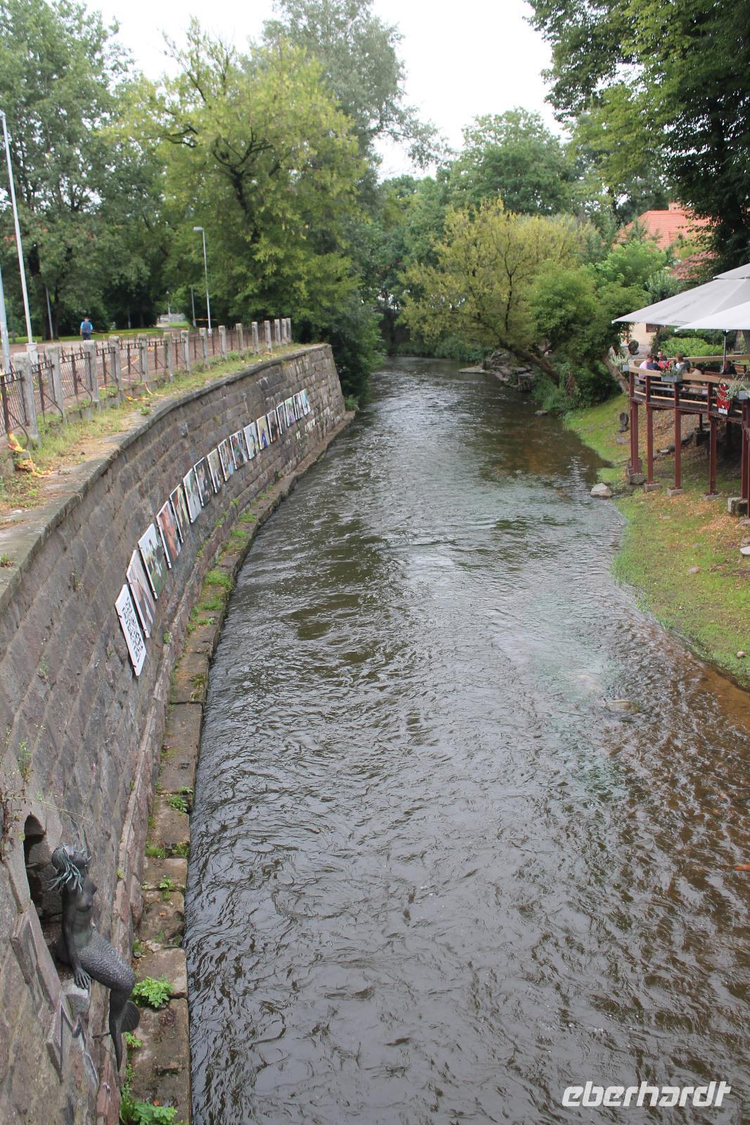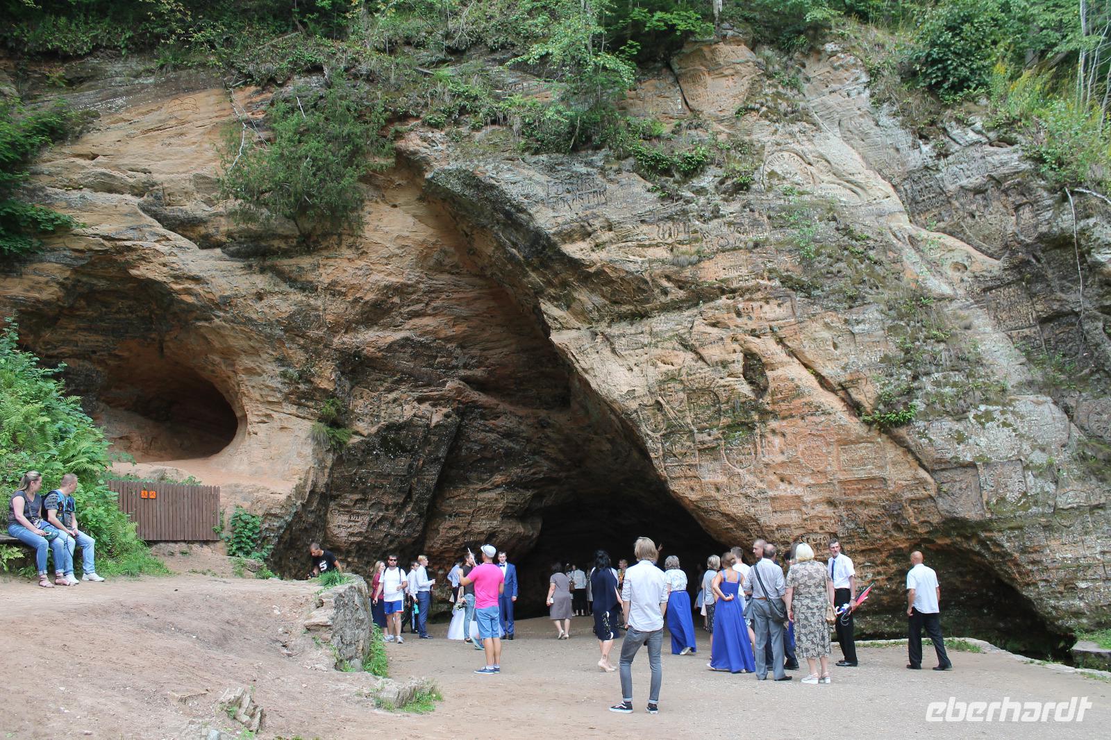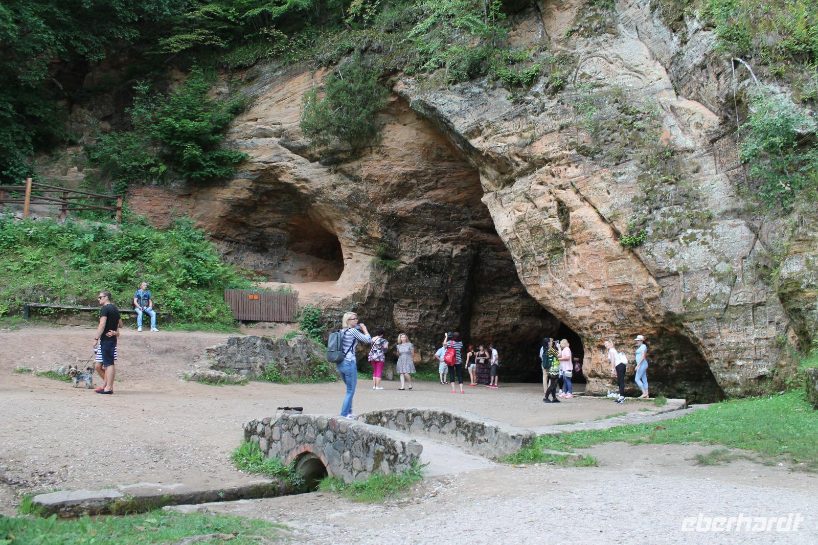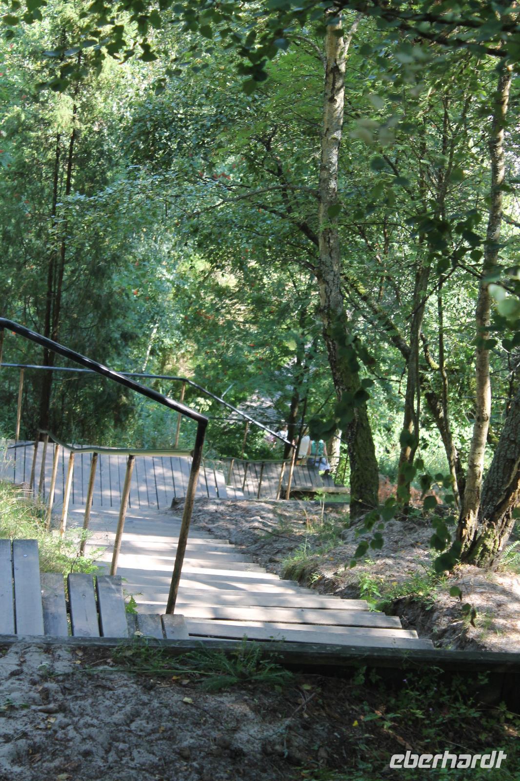 Nach einem zeitigen Frühstück in der Hauptstadt Lettlands machten wir uns auf, um die Reise fortzusetzen. So fuhren wir hinaus aus der Stadt, am Stadtwald vorbei. Hier lernen die Schüler im Winter Ski-Langlauf, auch Aija hat zu früheren Zeiten hier Sport getrieben. Weiter geht es vorbei an Seen, die noch vom Eismeer in den sandigen Dühnen übrig geblieben sind. Hier begegneten wir heute zuerst der Gaujava. Der Fluss entspringt an der Grenze zu Estland und schlängelt sich mit vielen Kurven durchs Land. In einem Dorf im Wald schwangen wir uns auf die Räder, nachdem wir kurz an der Rigaer Bucht waren. Hier merkten wir bereits, dass die drückende Luft und die Wärme uns die lange Radtour nicht leicht machen würden. So fuhren wir an Feldern vorbei, durch schöne Landschaften, die wir heute wegen den Umständen weniger betrachteten, bis nach Ragana. Hier, in der Hexenstube, aßen wir etwas, um den letzten Weg bis Sigulda zu meistern. Wir machten einen Abstecher zum Museumsdorf und fuhren anschließend bergab zu einer legendären Höhle und zu unseren Kanus. Wir bekamen unsere Rettungswesten und wurden flussaufwärts zur Ablegestelle gebracht. Gemütlich und mit kleinen Tausch-Aktionen, erreichten wir schließlich nach 8 km alle heile das Ziel.