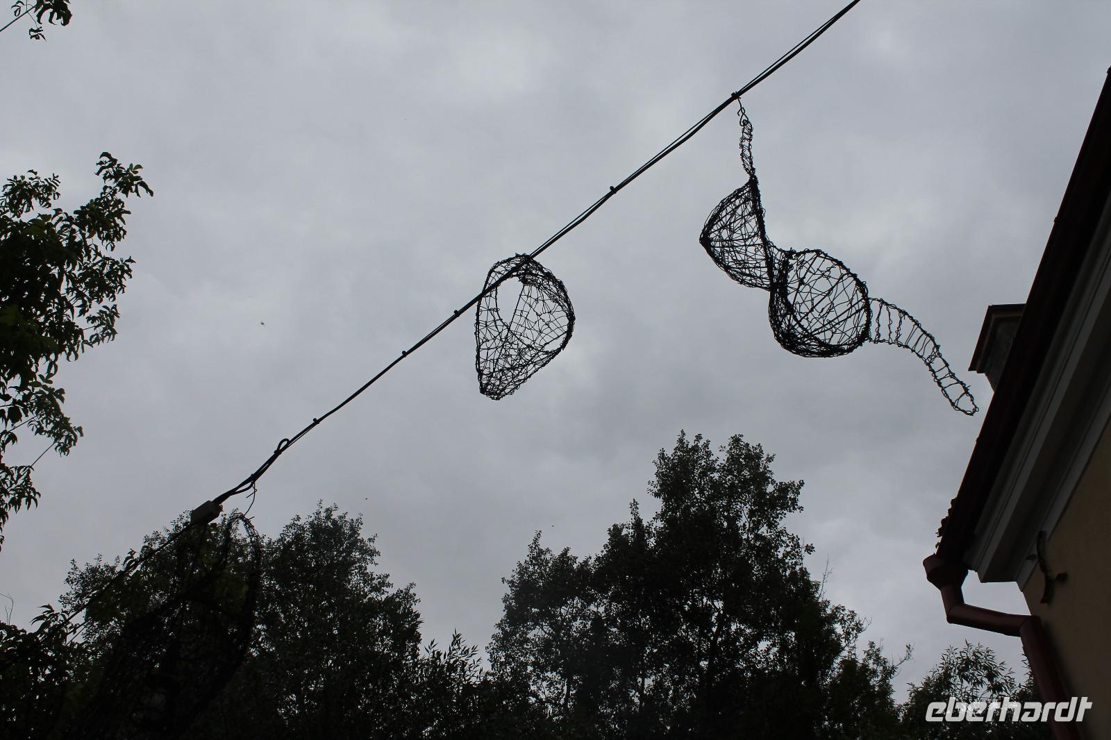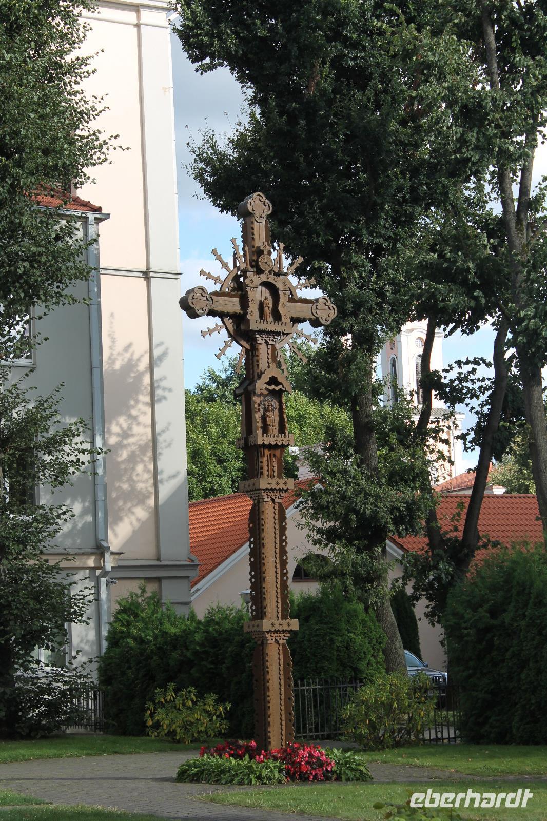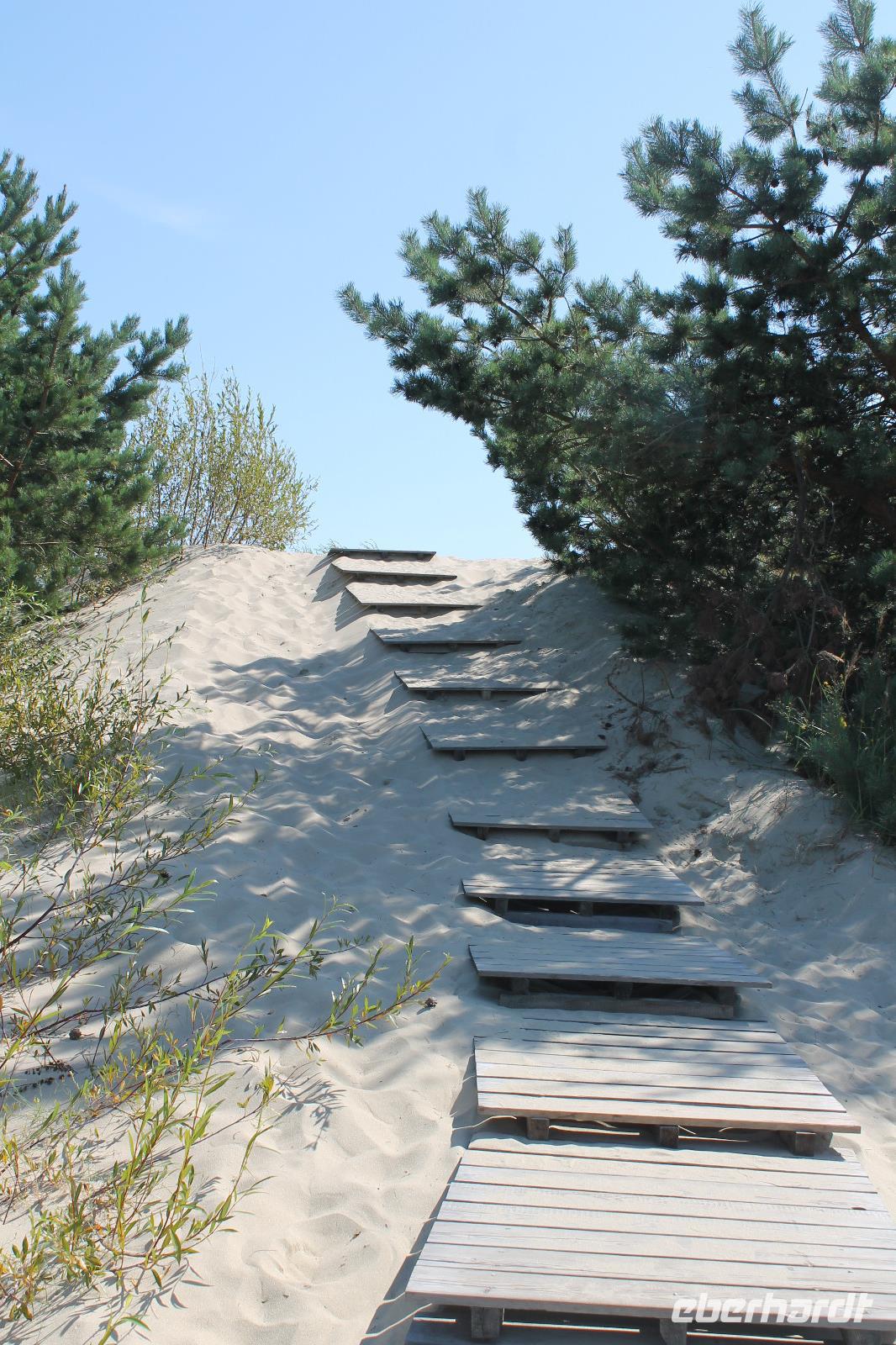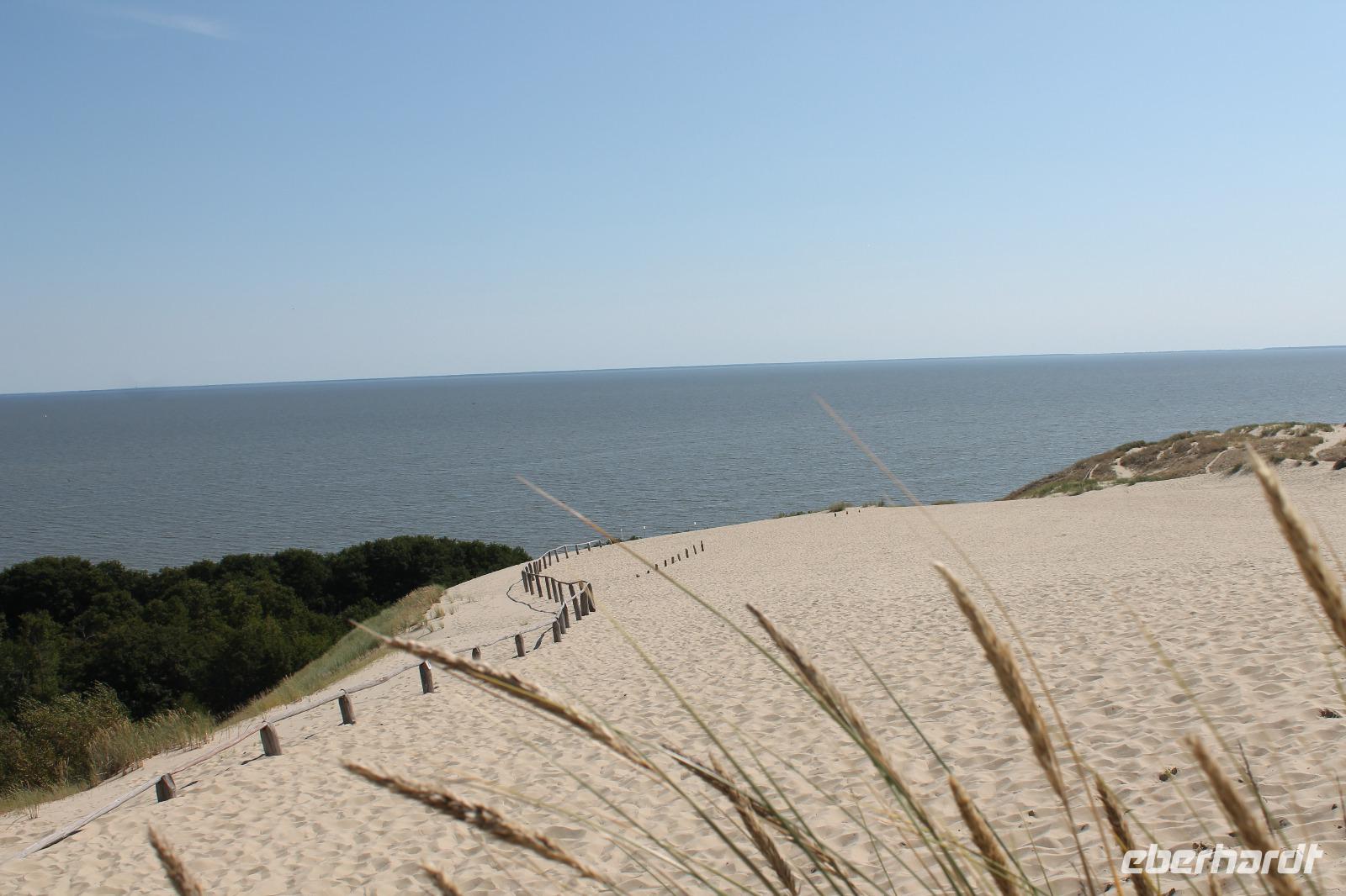 Trotz Nieselregen schwangen wir uns nach dem Frühstück auf die Räder und fuhren durch Klaipeda in Richtung Palanga. Am Stadtrand grenzt Klaipeda an einen Wald, den wir auf einem herrlichen Radweg durchquerten. Leider wurde das Wetter nicht wirklich besser und so machte der Besuch der 'Holländischen Mütze' nur halb so viel Freude. Diese 'Mütze' ist eine Steilküste, mit wunderbarem Blick auf die raue Ostsee. Immer weiter ging es durch das nasse Grün, bis zum Stadtpark von Palanga. Hier trafen wir endlich beim Bernsteinmuseum ein und entkamen so einem starken Regenschauer. Den Mittag verbrachten wir auf der Fußgängerpromenade von Palanga und machten das Beste aus dem Wetter. Die Busfahrt verlief ganz ruhig - so ein Wetter macht einen müde. Als unsere Reiseleiterin dann noch das Märchen der Natterkönigin vorlas, fielen bei manchen die Luken zu. Spätestens beim Berg der Kreuze waren alle wieder wach. Dieser einzigartige und etwas mystische Ort beherbergt mehr als 1500 große, und unzählige kleine Kreuze. Einheimische bringen die Kreuze, um um etwas zu bitten, sich für etwas zu bedanken oder um jemandem zu gedenken. Im Anschluss war es nicht mehr weit bis zur lettischen Grenze. Wir hörten abschließend litauische Volksmusik und plötzlich sahen wir die Landschaft mit ganz anderen Augen.