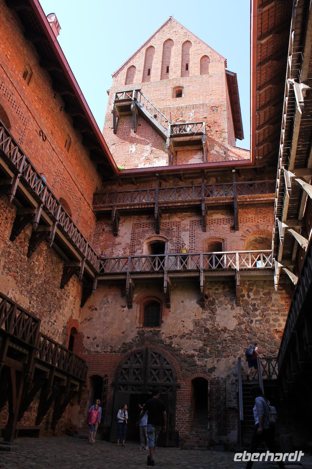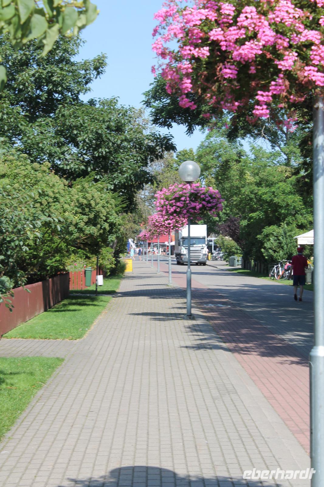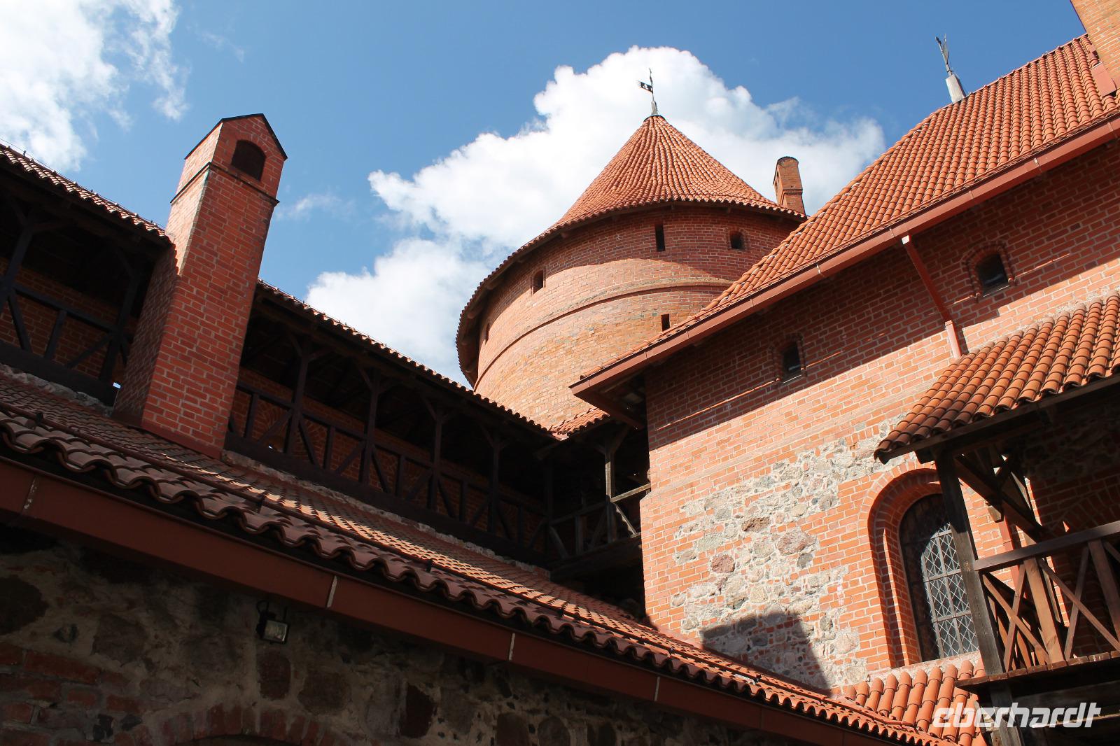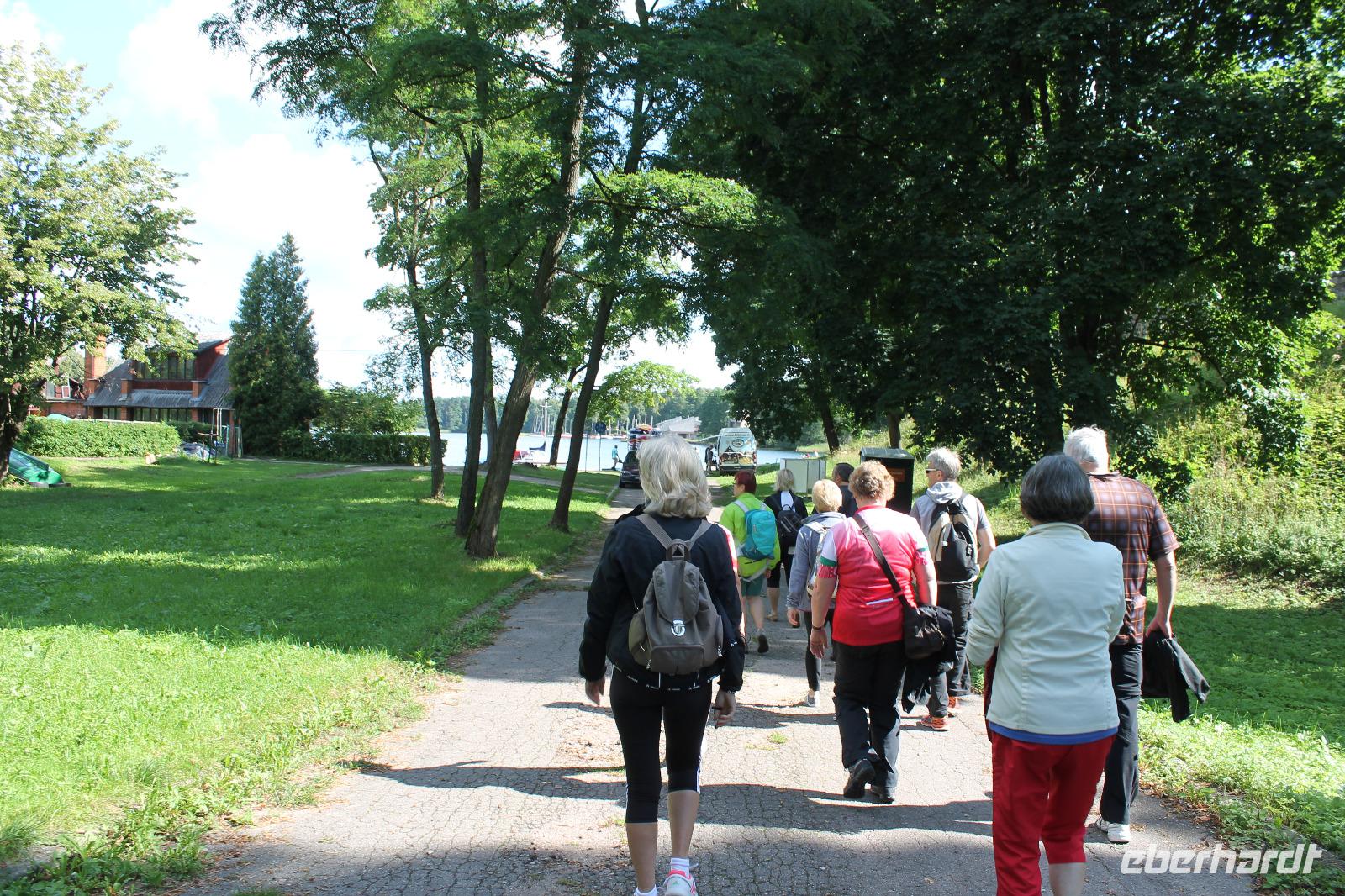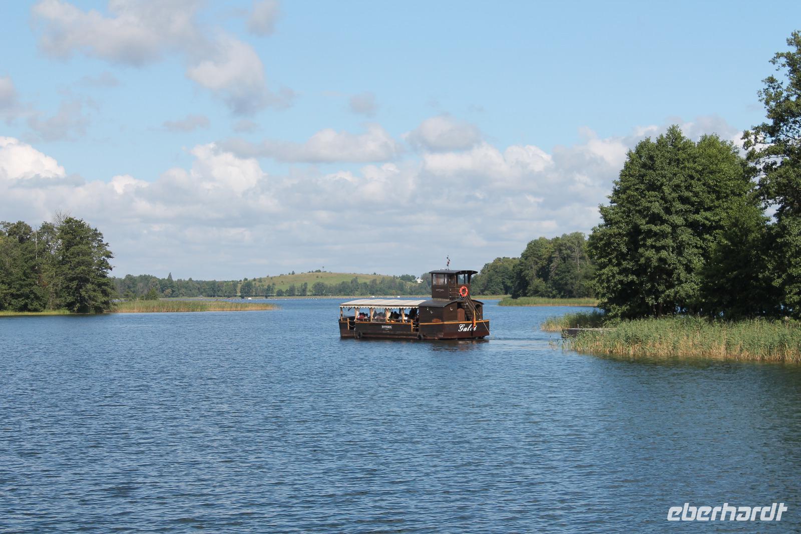 Am Morgen lernten wir zuerst unseren Chauffeur Edvard kennen, als wir unseren Kleinbus beluden und Richtung Trakai aufbrachen. Wir fuhren aus Vilnius hinaus, vorbei am Bernadinensee bis zur berühmten Wasserburg. Diese ehemalige Verteidigungsanlage ist heute ein Heimatmuseum und kostenfrei zu besichtigen. So schlenderten wir in der idyllischen Umgebung umher, verschafften uns einen Eindruck vom Inneren der Burg - und das alles bei strahlend blauem Himmel. Dementsprechend schön blieb das Wetter auch während unserer ersten Fahrradtour Richtung Kaunas. Bei Gegenwind und hügeliger Strecke, durchquerten wir wunderschöne Landschaften. Wir kamen an vielen Feldern vorbei, an Holzhütten und Bauernhöfen, Wiesen und Wäldern, Seen und herrlichen Flecken Erde, an denen man am liebsten hätte länger verweilen wollen. Nach einem kleinen Stopp, um unsere Flaschen wieder zu füllen, fuhren wir die letzte Etappe der knapp 30-Kilometer-Tagestour. An einem Treffpunkt umrundet von mehreren Seen, empfing uns unser Chauffeur und lud die Räder auf. Währenddessen ging man schwimmen oder schlenderte durch die wundervolle, grüne Natur. Mit meinen Dehnübungen konnte ich leider kaum jemanden zum Mitmachen begeistern :-) ... Weiter fuhren wir mit dem Bus in die Stadt Kaunas hin zum Schloss. Hier beobachteten wir ein frisch vermähltes Hochzeitspaar beim Fotoshooting und liefen zum Abschluss des Tages durch die relativ ruhige Stadt.