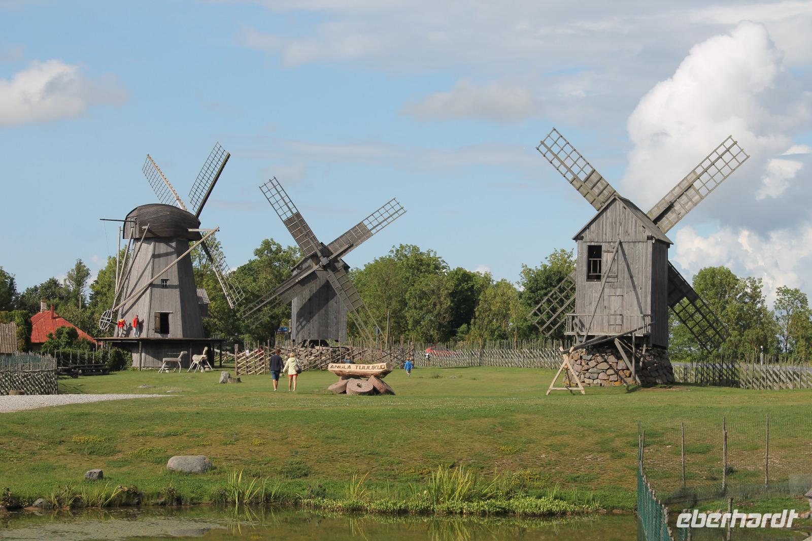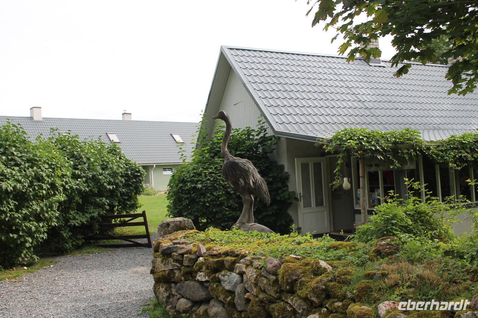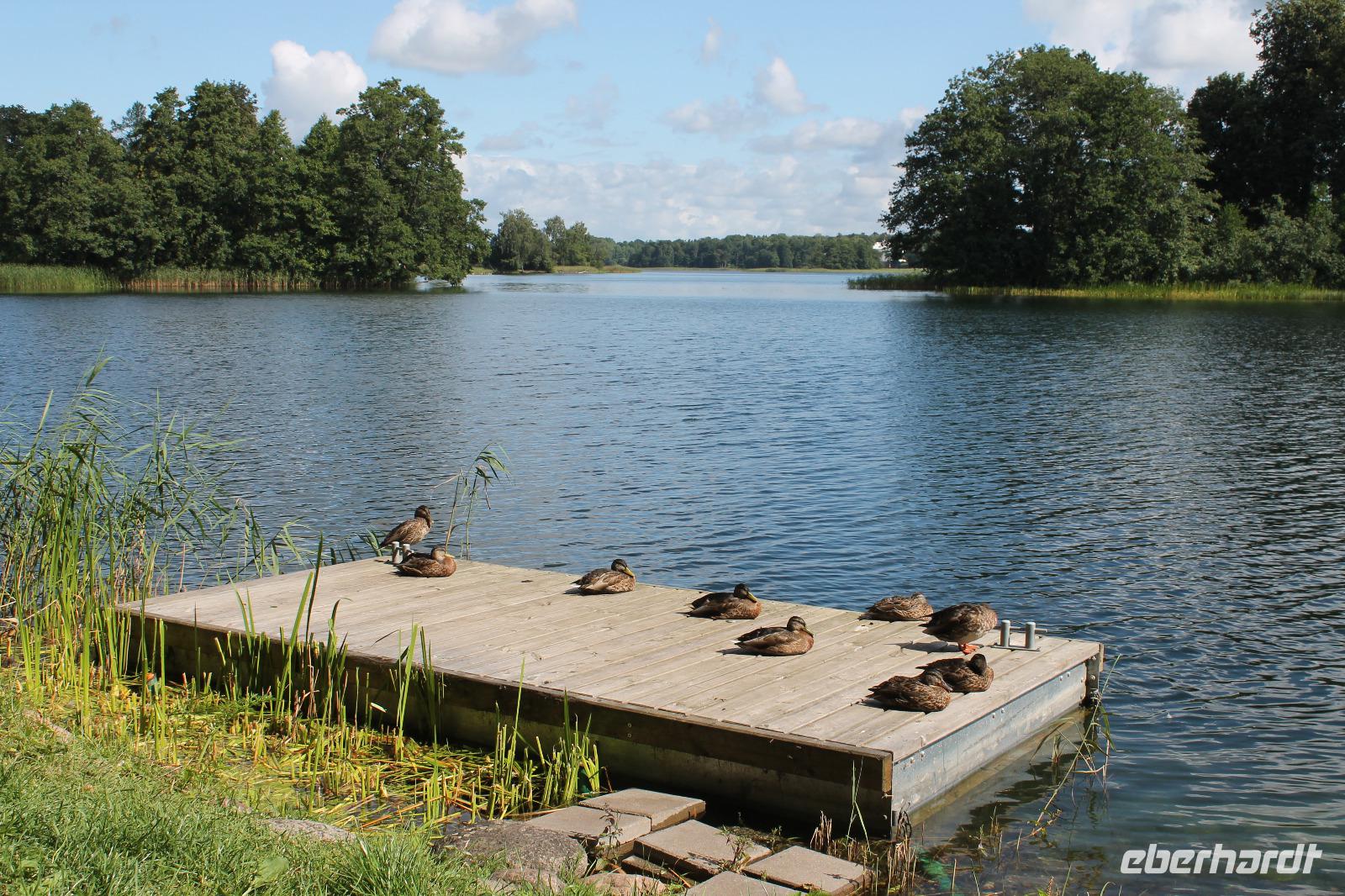 Heute führte uns unsere Reise auf zwei der knapp 1500 estnischen Inseln - Muhu und Saaremaa. Wir überquerten den Fluss Pärnu und bekamen erste Tipps zum Umgang mit Esten: Da ihr Land zu 50% aus Wald und aus 20% Feldern besteht, sind sie sehr naturverbunden und stolz darauf. Außerdem: Der sonntägliche Gang in die Sauna ist Familiensache und eine der Lieblingsbeschäftigungen der Esten. Das nordische Volk singt außerdem gern, so treffen sie sich jährlich in Tallinn und singen alle gemeinsam. Wenn man ein Souvenir aus Estland mitbringen will, sollte man etwas aus Kalkstein oder Wacholder nehmen, das Land besteht quasi aus diesen beiden Materialien. Auf der Fahrt hörten wir außerdem noch estnische Wiegelieder und genossen die Umgebung, bis wir bei der Fähre ankamen. Nach der Fährüberfahrt landeten wir im trockensten Ort Estlands und peilten Koguva an, um durch das ethnologische Museumsdorf zu spazieren. Hier ist alles auf dem Stand von vor 100 Jahren, weil die Entwicklung damals künstlich gestoppt wurde. Um den armen Bauern früher mehr Wohlstand bieten zu können, wurden Ihnen viele Windmühlen gebaut. Davon sollten wir später auch welche zu Gesicht bekommen. So fuhren wir über den Damm von Muhu nach Saaremaa und legten an einer alten Ruine eine Picknick- und Fotopause ein. Nachdem wir Souvenirs gekauft, etwas gegessen und die wunderschöne Landschaft fotografiert haben, ging es weiter. Die nächste Pause legten wir an einem Steg ein - eigentlich, um zu baden. Doch leider blieb dies aus, da Quallen im Wasser waren und wir nichts riskieren wollten. Das Ziel war der Angla-Windmühlenpark. Anschließend besichtigten wir noch den Kratersee von Kaali. Das tausende Jahre alte Kraterloch füllt sich je nach Grundwasserstand und Regen und wird so zum See. Müde trafen wir abends in unserer Unterkunft ein.