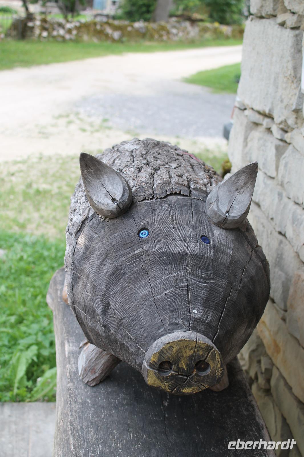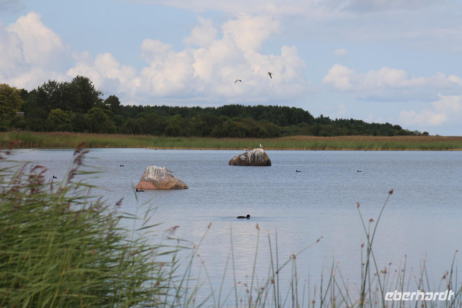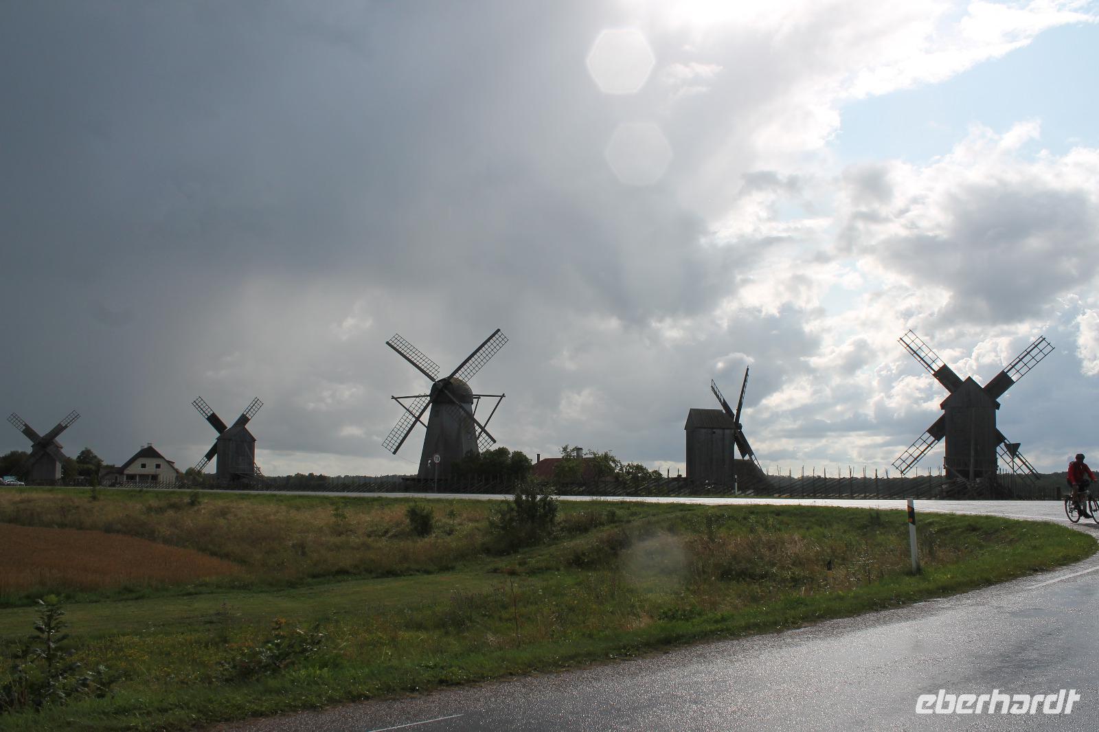 Heute führte uns unsere Reise auf zwei der knapp 1500 estnischen Inseln - Muhu und Saaremaa. Wir überquerten den Fluss Pärnu und bekamen erste Tipps zum Umgang mit Esten: Da ihr Land zu 50% aus Wald und aus 20% Feldern besteht, sind sie sehr naturverbunden und stolz darauf. Außerdem: Der sonntägliche Gang in die Sauna ist Familiensache und eine der Lieblingsbeschäftigungen der Esten. Das nordische Volk singt außerdem gern, so treffen sie sich jährlich in Tallinn und singen alle gemeinsam. Wenn man ein Souvenir aus Estland mitbringen will, sollte man etwas aus Kalkstein oder Wacholder nehmen, das Land besteht quasi aus diesen beiden Materialien. Auf der Fahrt hörten wir außerdem noch estnische Wiegelieder und genossen die Umgebung, bis wir bei der Fähre ankamen. Nach der Fährüberfahrt landeten wir im trockensten Ort Estlands und peilten Koguva an, um durch das ethnologische Museumsdorf zu spazieren. Hier ist alles auf dem Stand von vor 100 Jahren, weil die Entwicklung damals künstlich gestoppt wurde. Um den armen Bauern früher mehr Wohlstand bieten zu können, wurden Ihnen viele Windmühlen gebaut. Davon sollten wir später auch welche zu Gesicht bekommen. So fuhren wir über den Damm von Muhu nach Saaremaa und legten an einer alten Ruine eine Picknick- und Fotopause ein. Nachdem wir Souvenirs gekauft, etwas gegessen und die wunderschöne Landschaft fotografiert haben, ging es weiter. Die nächste Pause legten wir an einem Steg ein - eigentlich, um zu baden. Doch leider blieb dies aus, da Quallen im Wasser waren und wir nichts riskieren wollten. Das Ziel war der Angla-Windmühlenpark. Anschließend besichtigten wir noch den Kratersee von Kaali. Das tausende Jahre alte Kraterloch füllt sich je nach Grundwasserstand und Regen und wird so zum See. Müde trafen wir abends in unserer Unterkunft ein.