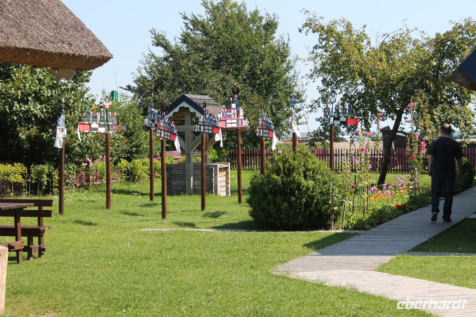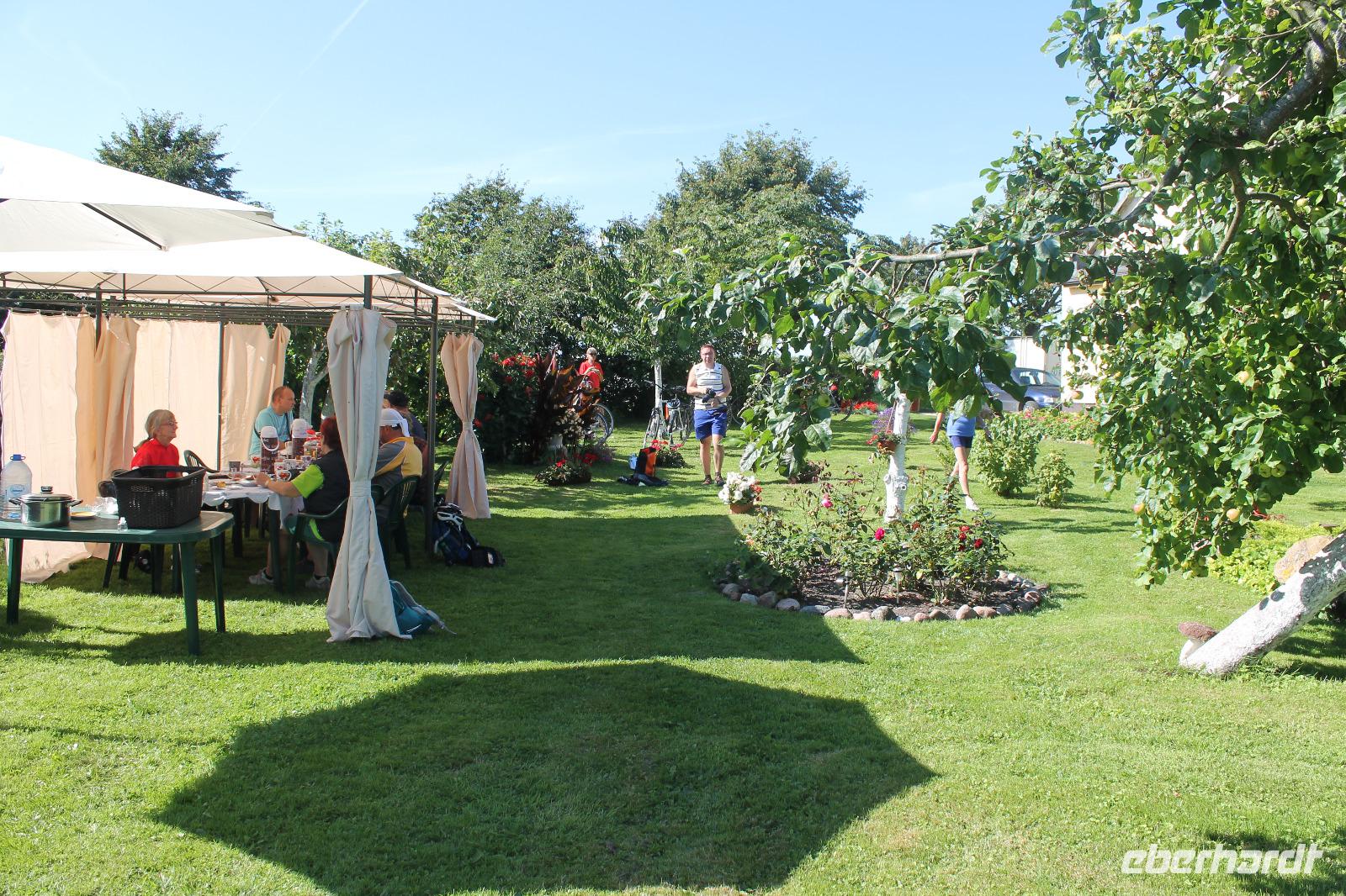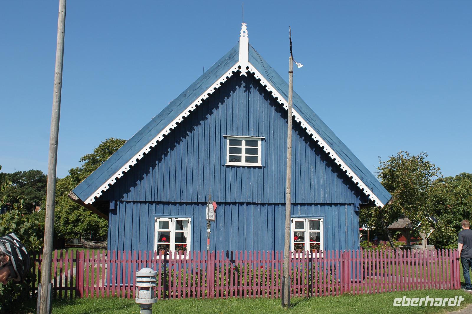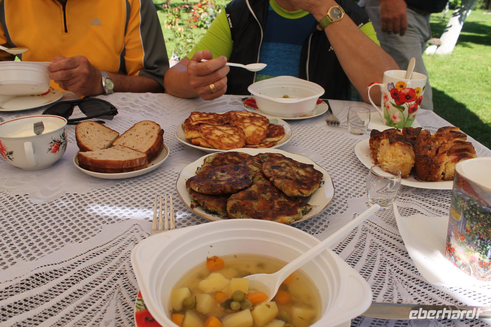 Früh am Morgen fuhren wir mit dem Bus los über die Neris, die auf weißrussischem Territorium entspringt. Wir sahen auf der Strecke das neunte Fort, in dem früher Juden und politische Gefangene festgehalten und/oder hingerichtet wurden. Abseits der Autobahn fuhren wir die 'alte Straße', um die romantische, idyllische Seite dieses Teils des Landes kennenzulernen. Aija erzählte uns etwas über die Mietverhältnisse, den Aufbau des Mietsystems, etwas über Sozialhilfen und vieles, vieles mehr... wir überquerten wieder einen Fluss, die Nevežis und fuhren immer weiter gen Westen entlang der Memel. Passend zum Gespräch über Königin Luise, legten wir einen Stopp bei Tilsit ein. Hier steht das Tor der Königin-Luise-Brücke, die im zweiten Weltkrieg größtenteils zerbombt wurde. In Panemone angekommen, luden wir die Räder ab und fuhren los. Wir kamen durch das Memel Delta, welches sehr bewaldet ist - auch Wiesen und alten Häusern begegneten wir erneut. Zum Nachmittag erreichten wir die Vogelwarte in Vente. Nach einer Pause und interessanten Informationen im Umgang mit Vögeln, Libellen und weiteren Tieren in dieser Warte, erwartete uns schon das Highlight des Tages: ein hausgemachtes Picknick von einer Bauernfamilie am kurischen Haff. Bei selbstgemachter Hagebuttenmarmelade, Zucchini-Pfannkuchen und herzhafter Gemüsesuppe, saßen wir im Garten Eden. Ringsum wuchsen wundervolle Blumen, die Äpfel und Birnen hingen reif an den Bäumen, bereit zum pflücken und auf dem Feld verweilten Störche in aller Seelen Ruhe. Es gab Schnaps, Tee und Kaffee, Apfelkuchen, Speck und eingelegte Gurken - es war einfach himmlisch. Kugelrund stiegen wir alle wieder in unseren Reisebus und legten die letzten Kilometer bis Klaipeda zurück. Hier bezogen wir unser Hotel und verabredeten uns zum Spaziergang und Abendessen.