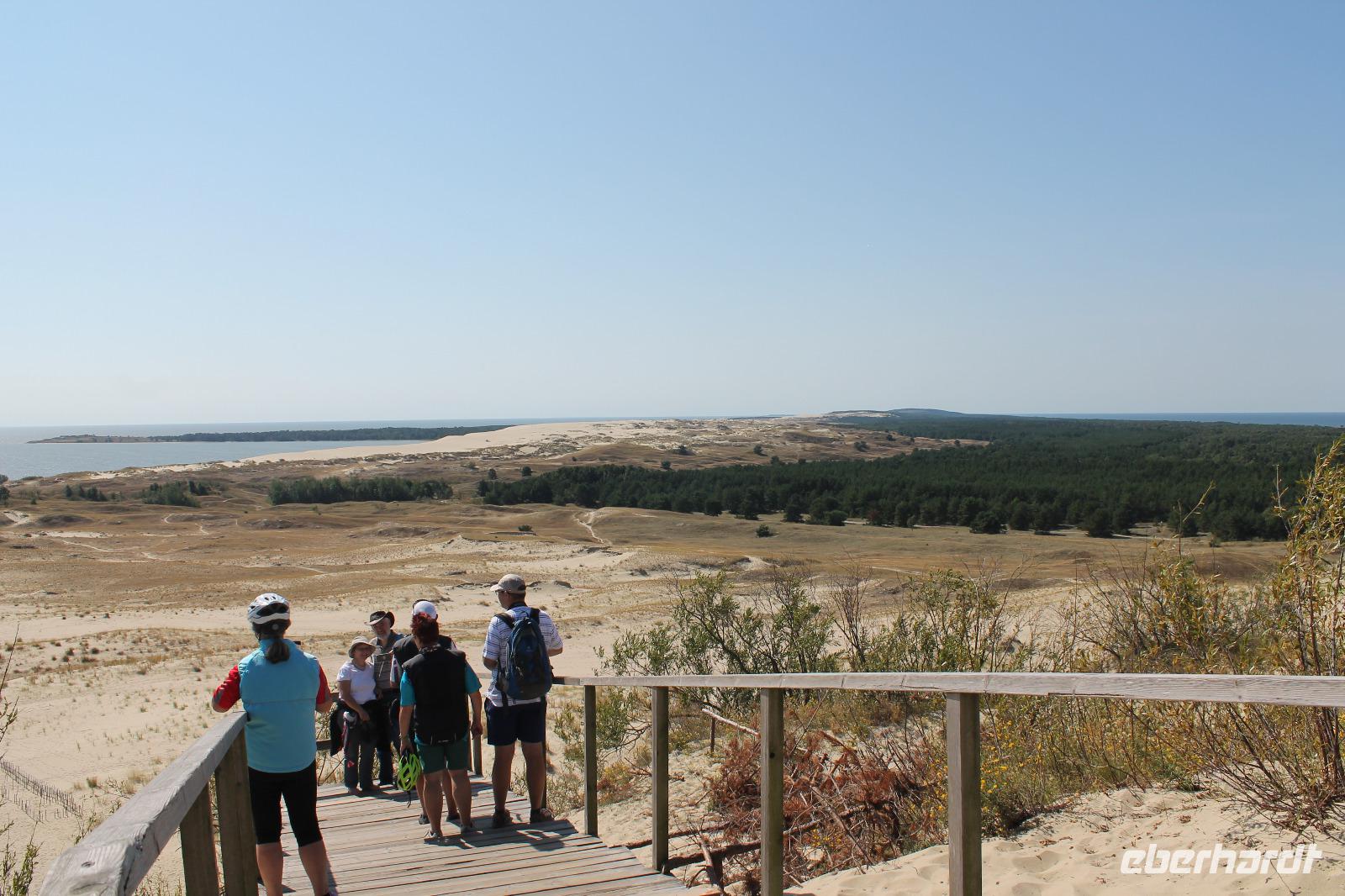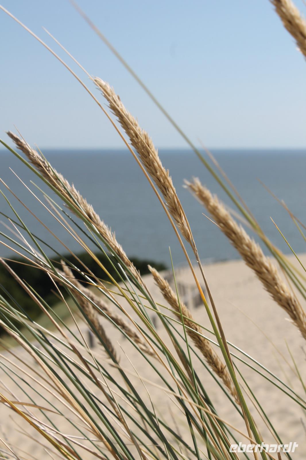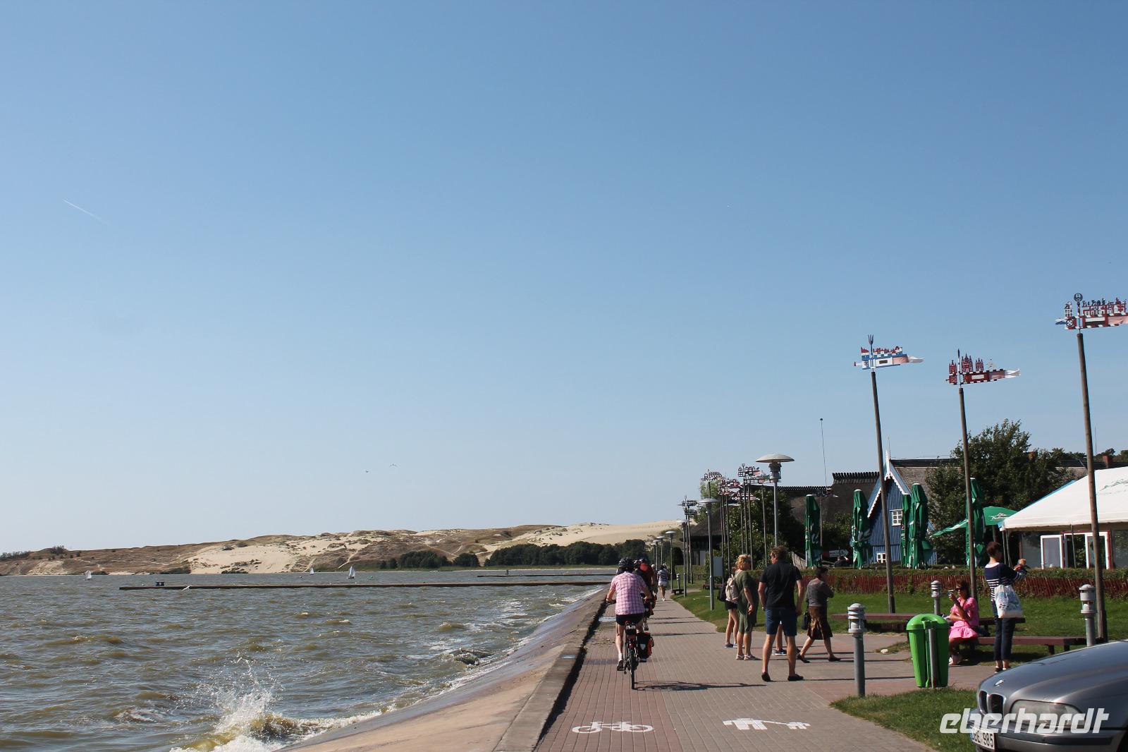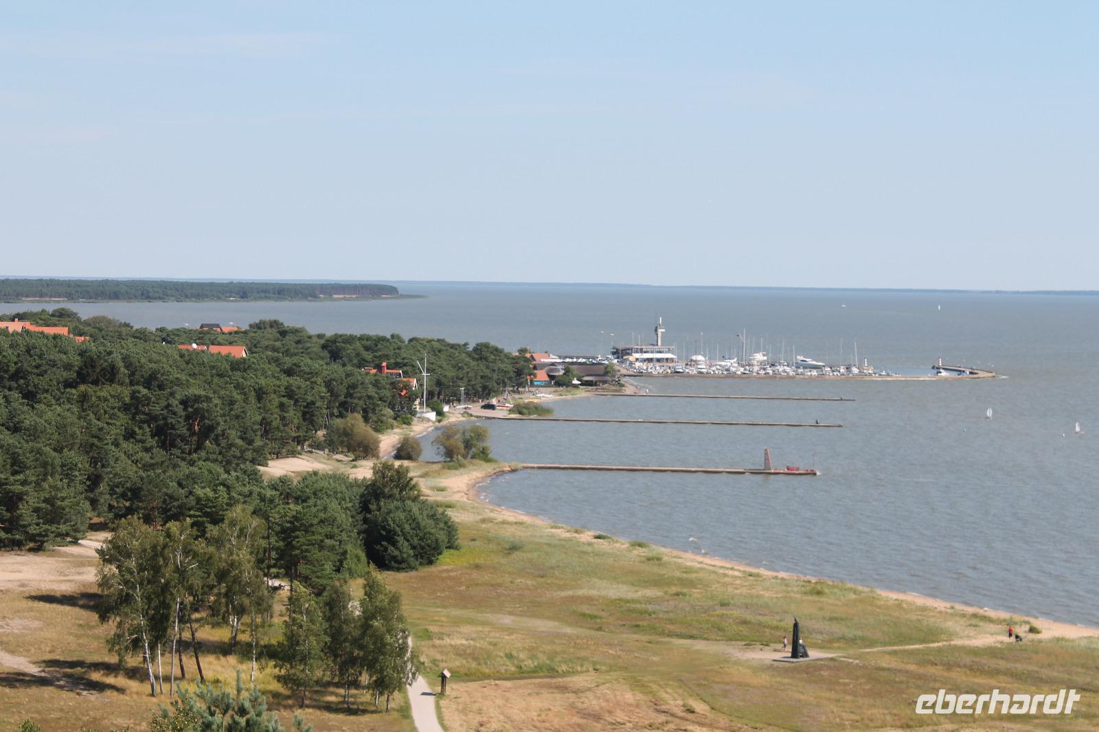 Gleich nach dem Frühstück nahmen wir den Katamaran nach Nida. Die kleine Stadt liegt am südlichen Zipfel der litauischen Seite der Insel Neringa, kurz vor der russischen Grenze. Bei der Überfahrt sahen wir neben Möwen und Wäldern auch Kormorane, Wanderdünen und ein paar Segler und Fischer, die auf dem Haff unterwegs waren. Nach einem Zwischenstopp in Juodkrante, erreichten wir Nida nach zwei Stunden. Dort angekommen, empfingen uns die malerischen Fischerhäuser, kleine Läden, Bernsteinverkäufer und hohe Dünen mit toller Aussicht. Hier verbrachten wir unsere Mittagspause. Im Anschluss radelten wir zum Haus von Thomas Mann. In seinem Haus, in welchem er drei Sommer verbrachte, ist heute eine Ausstellung über ihn, seine Werke und seine Familie zu sehen. Die große Radtour, die wir vor uns hatten, war 56 Kilometer lang und verlief die ganze Insel hinauf bis Klaipeda. Wir fuhren durch Fichtenwälder mit Moos bewachsenem Boden, vorbei an Schneisen, die in den Wald geschlagen wurden und hinter den Dünen entlang, bis wir an der Ostsee eine Badepause einlegten. Dieser Tag war der Erholung und der Natur gewidmet - und wir haben es alle genossen.