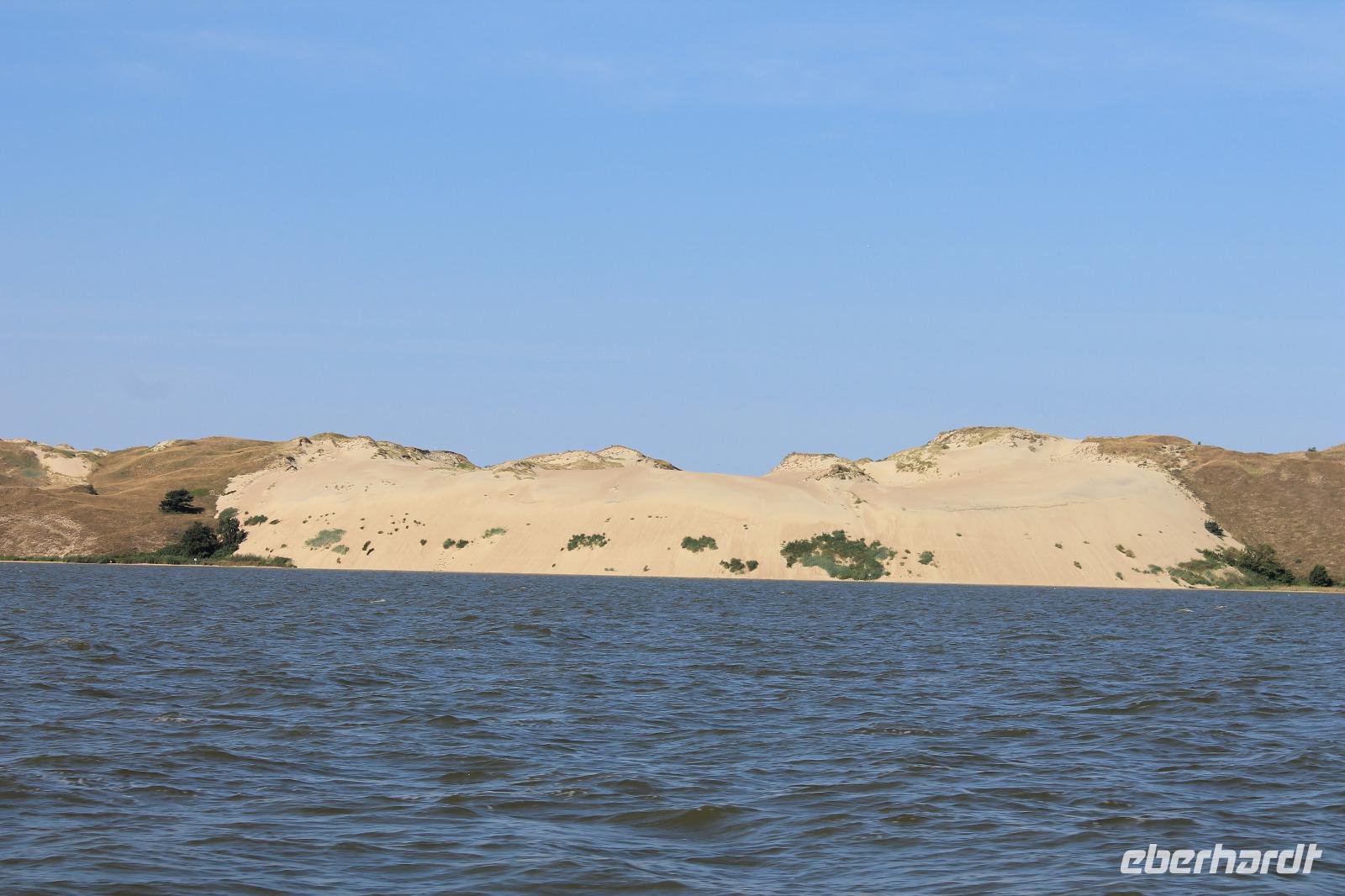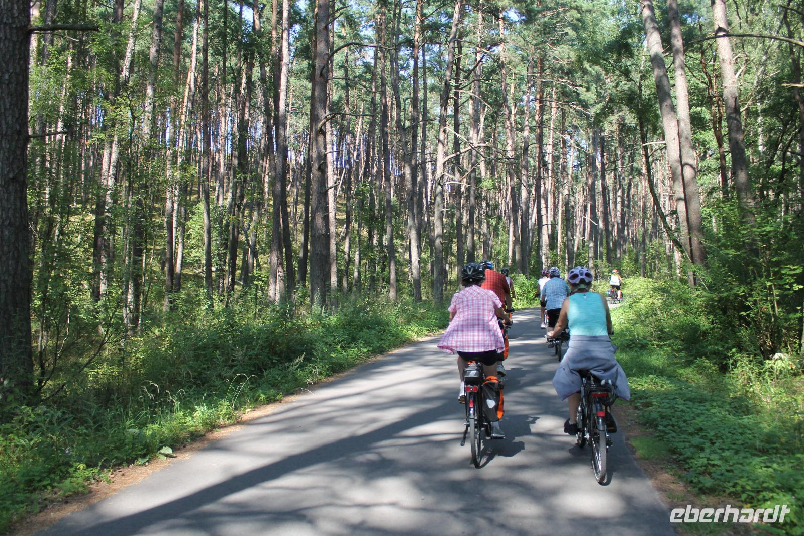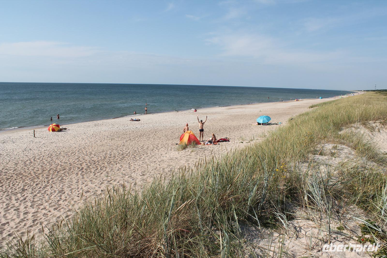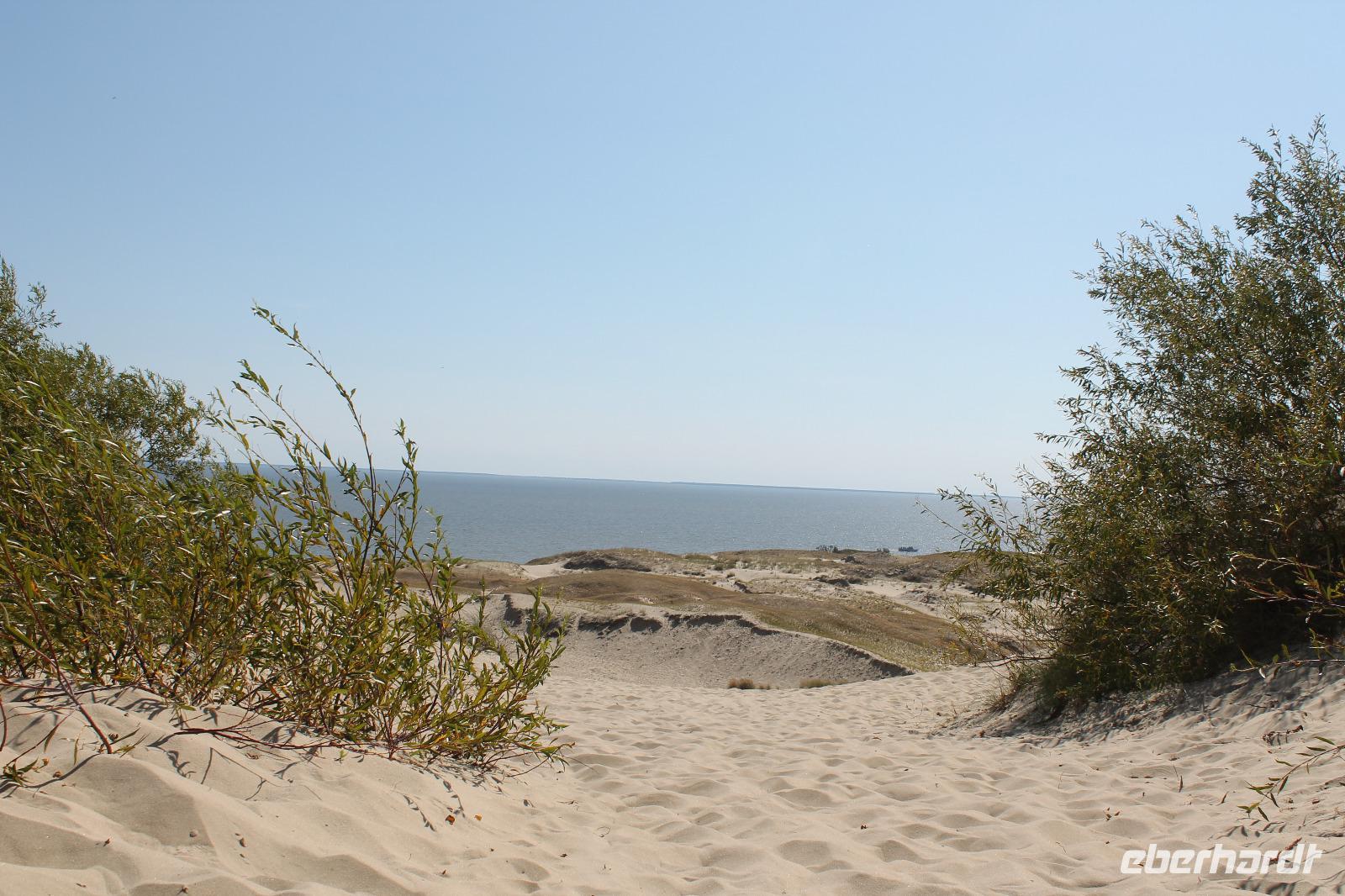 Gleich nach dem Frühstück nahmen wir den Katamaran nach Nida. Die kleine Stadt liegt am südlichen Zipfel der litauischen Seite der Insel Neringa, kurz vor der russischen Grenze. Bei der Überfahrt sahen wir neben Möwen und Wäldern auch Kormorane, Wanderdünen und ein paar Segler und Fischer, die auf dem Haff unterwegs waren. Nach einem Zwischenstopp in Juodkrante, erreichten wir Nida nach zwei Stunden. Dort angekommen, empfingen uns die malerischen Fischerhäuser, kleine Läden, Bernsteinverkäufer und hohe Dünen mit toller Aussicht. Hier verbrachten wir unsere Mittagspause. Im Anschluss radelten wir zum Haus von Thomas Mann. In seinem Haus, in welchem er drei Sommer verbrachte, ist heute eine Ausstellung über ihn, seine Werke und seine Familie zu sehen. Die große Radtour, die wir vor uns hatten, war 56 Kilometer lang und verlief die ganze Insel hinauf bis Klaipeda. Wir fuhren durch Fichtenwälder mit Moos bewachsenem Boden, vorbei an Schneisen, die in den Wald geschlagen wurden und hinter den Dünen entlang, bis wir an der Ostsee eine Badepause einlegten. Dieser Tag war der Erholung und der Natur gewidmet - und wir haben es alle genossen.