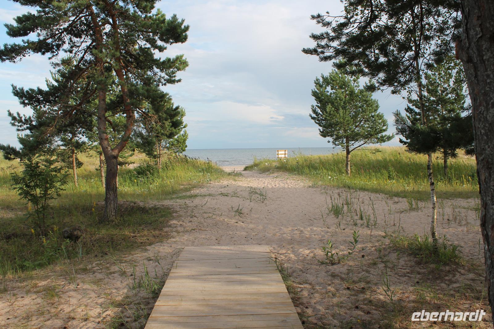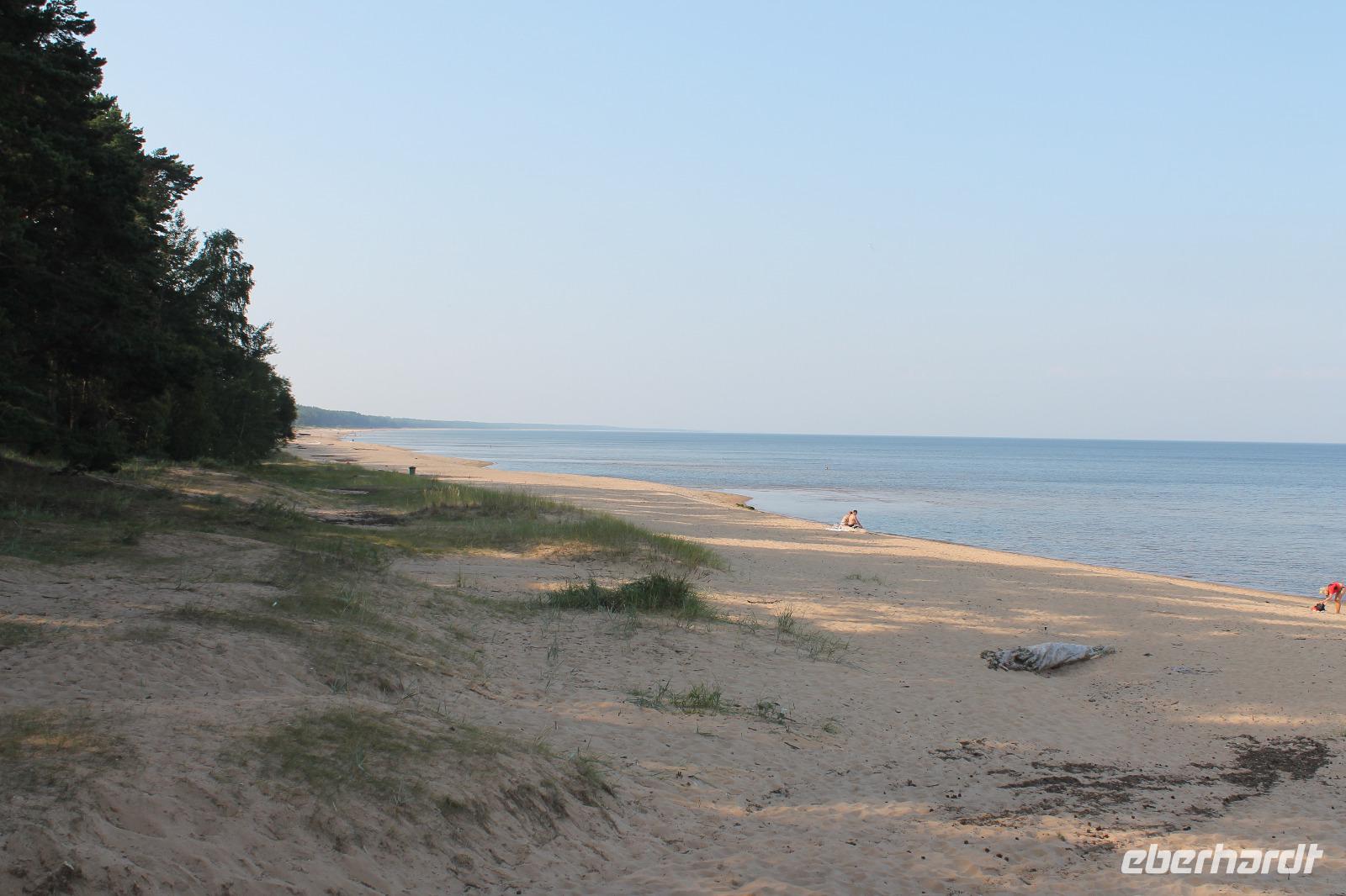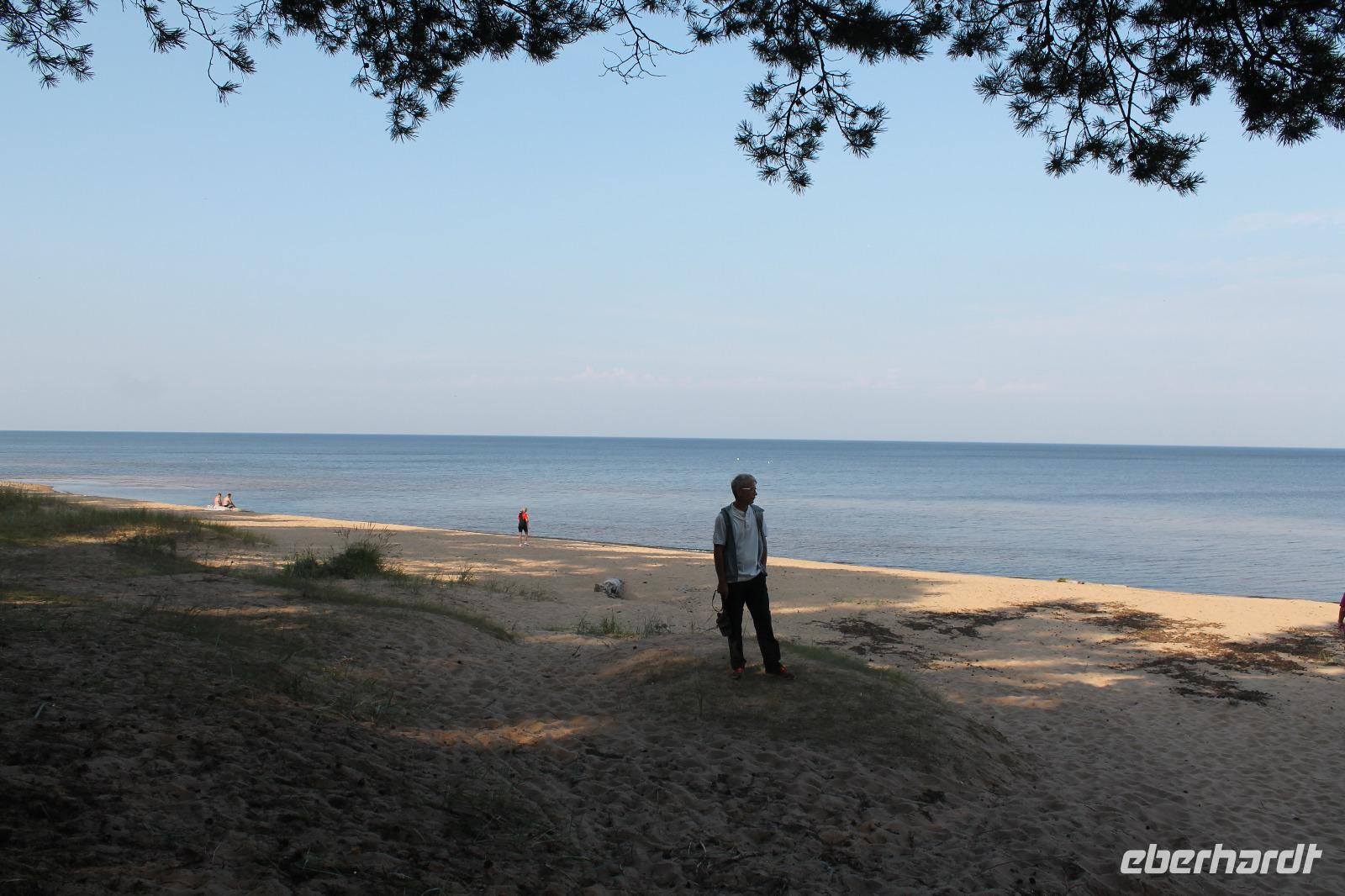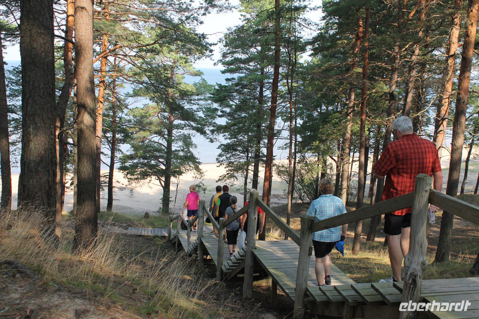 In der Nähe des Luftkurorts Sigulda liegt die Bobrennbahn. Hier legten wir eine japanische Fotopause ein und fuhren im Anschluss weiter durch den Gauja Nationalpark, um unsere Route nach Pärnu, Estland, weiter zuverfolgen. Noch einmal erzählte Aija etwas über die Gaujava. Vorbei an der einzigen Seilbahn im Baltikum und der Burg Krimulda, hin zur Rigaer Bucht. Wir hörten Legenden über die Sommersonnenwende, Märchen und Geschichten von Verliebten und Traditionen. Unsere heutige Radtour führte uns immer entlang der flachen Küste - so merkten wir auch nicht, wie schnell die ca. 35 km verstrichen. Wir legten eine Picknickpause und mehrere Fotostopps ein, bis wir bei einer uralten Düne ankamen. Sie steht etwas im Landesinneren, da sie einst am Rande des Eismeeres stand. Mit dem Bus ging es weiter nach Pärnu. Vom Strand aus machten wir einen Spaziergang durch die hübsche Stadt und kamen am Nachmittag im Hotel an.