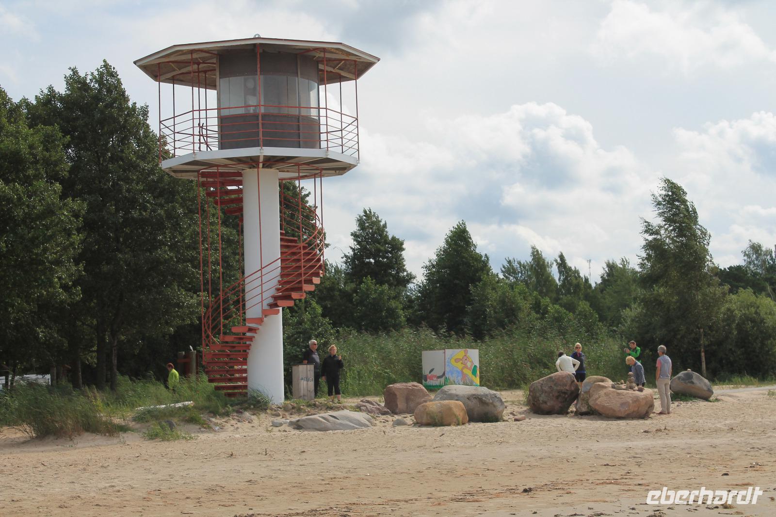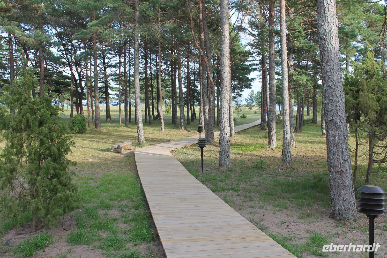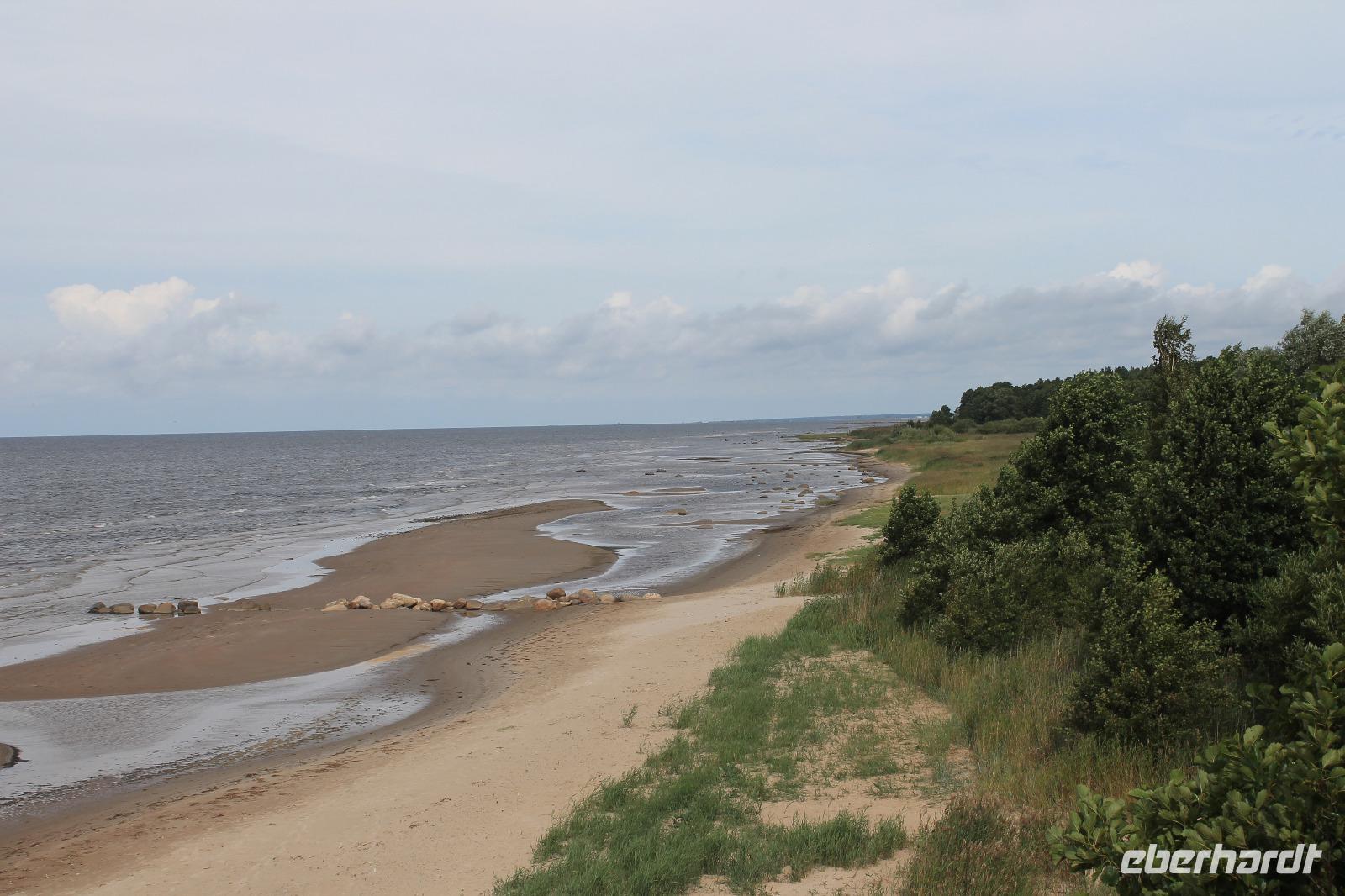 In der Nähe des Luftkurorts Sigulda liegt die Bobrennbahn. Hier legten wir eine japanische Fotopause ein und fuhren im Anschluss weiter durch den Gauja Nationalpark, um unsere Route nach Pärnu, Estland, weiter zuverfolgen. Noch einmal erzählte Aija etwas über die Gaujava. Vorbei an der einzigen Seilbahn im Baltikum und der Burg Krimulda, hin zur Rigaer Bucht. Wir hörten Legenden über die Sommersonnenwende, Märchen und Geschichten von Verliebten und Traditionen. Unsere heutige Radtour führte uns immer entlang der flachen Küste - so merkten wir auch nicht, wie schnell die ca. 35 km verstrichen. Wir legten eine Picknickpause und mehrere Fotostopps ein, bis wir bei einer uralten Düne ankamen. Sie steht etwas im Landesinneren, da sie einst am Rande des Eismeeres stand. Mit dem Bus ging es weiter nach Pärnu. Vom Strand aus machten wir einen Spaziergang durch die hübsche Stadt und kamen am Nachmittag im Hotel an.