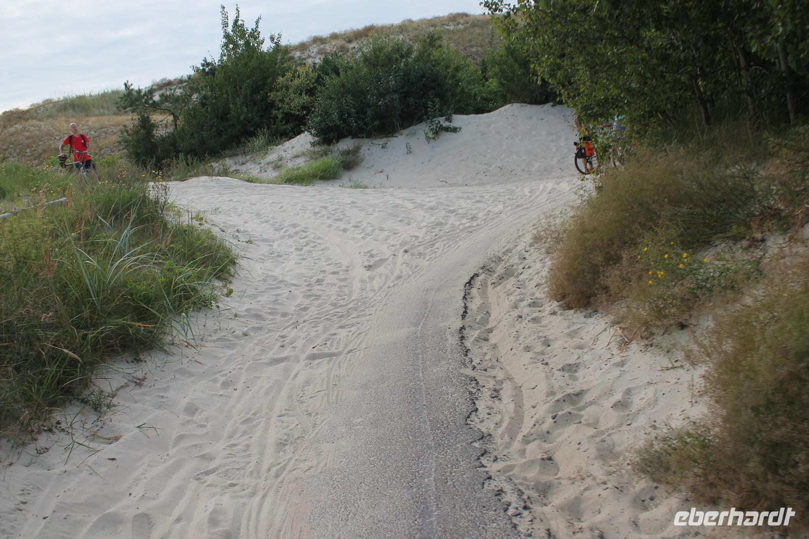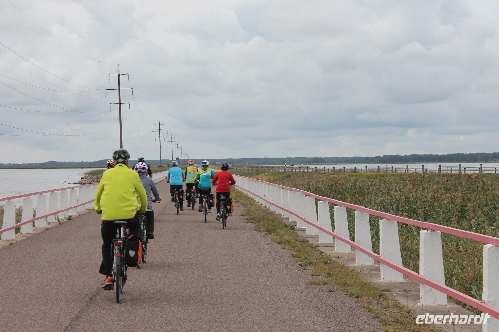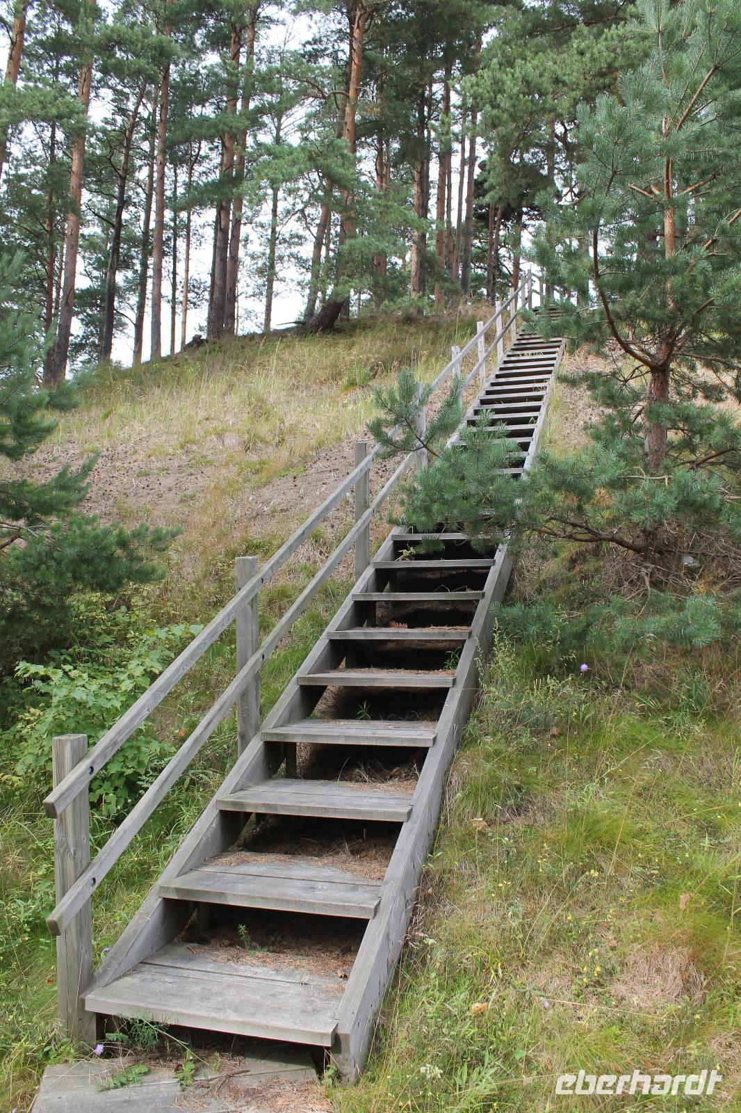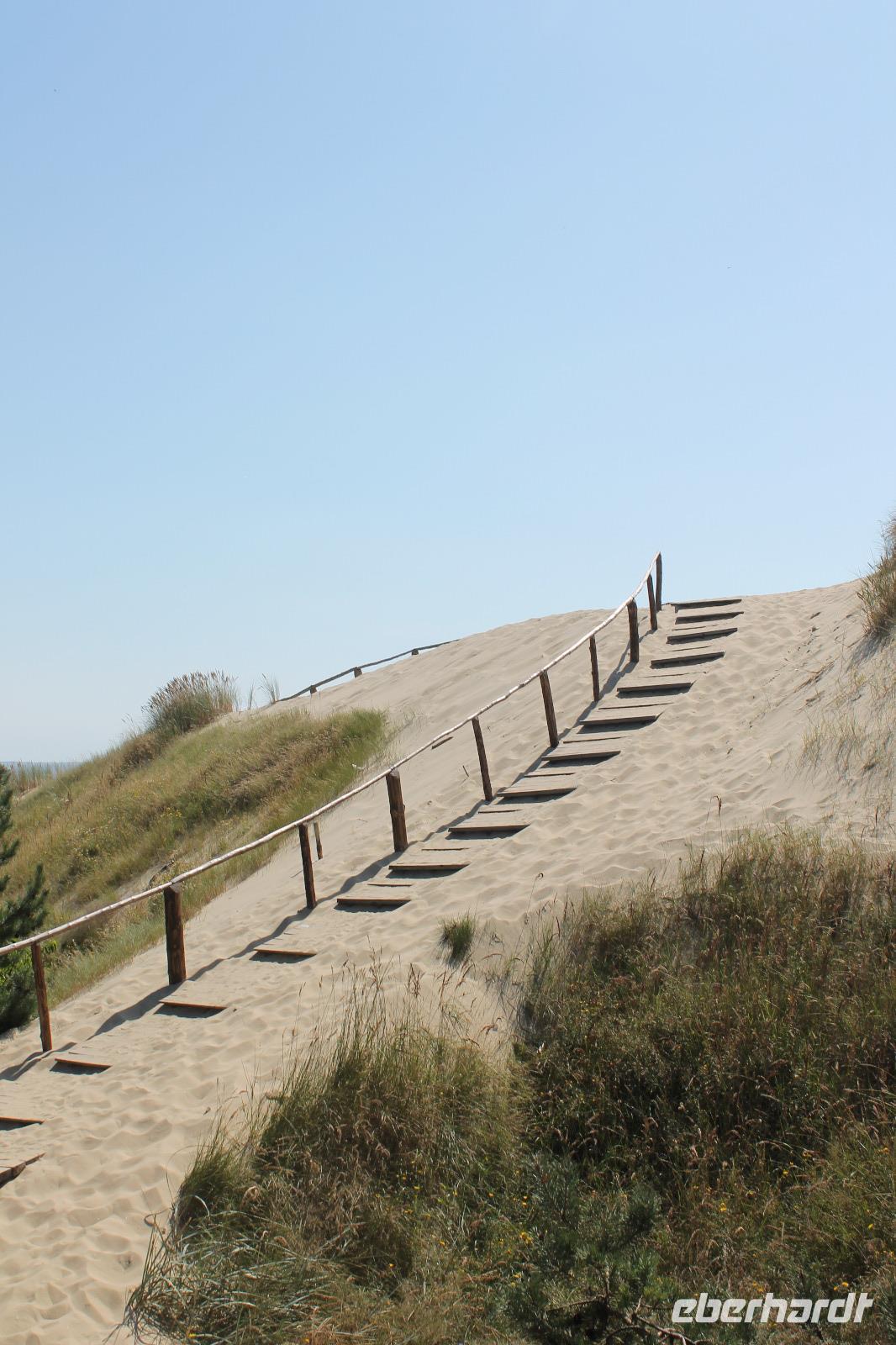 In der Nähe des Luftkurorts Sigulda liegt die Bobrennbahn. Hier legten wir eine japanische Fotopause ein und fuhren im Anschluss weiter durch den Gauja Nationalpark, um unsere Route nach Pärnu, Estland, weiter zuverfolgen. Noch einmal erzählte Aija etwas über die Gaujava. Vorbei an der einzigen Seilbahn im Baltikum und der Burg Krimulda, hin zur Rigaer Bucht. Wir hörten Legenden über die Sommersonnenwende, Märchen und Geschichten von Verliebten und Traditionen. Unsere heutige Radtour führte uns immer entlang der flachen Küste - so merkten wir auch nicht, wie schnell die ca. 35 km verstrichen. Wir legten eine Picknickpause und mehrere Fotostopps ein, bis wir bei einer uralten Düne ankamen. Sie steht etwas im Landesinneren, da sie einst am Rande des Eismeeres stand. Mit dem Bus ging es weiter nach Pärnu. Vom Strand aus machten wir einen Spaziergang durch die hübsche Stadt und kamen am Nachmittag im Hotel an.