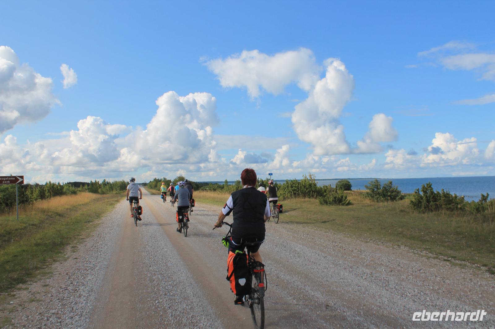 Gleich früh schwangen wir uns auf unsere Drahtesel und fuhren bei wunderbarem Wetter knapp 55km gen Süden, zum Sorve Leuchtturm. Wir machten Stopps an lauschigen Orten und fuhren entlang der Küste mit Rückenwind. Am südlichen Zipfel der Halbinsel Sorve angekommen, machten wir eine kleine Mittagspause und genossen die letzten Stunden auf der ruhigen Insel Saaremaa. Edvard fuhr uns später zurück zum Hotel. Am Abend feierten wir eine kleine Abschiedsparty am Strand, meinen "Geburtstag" :-).