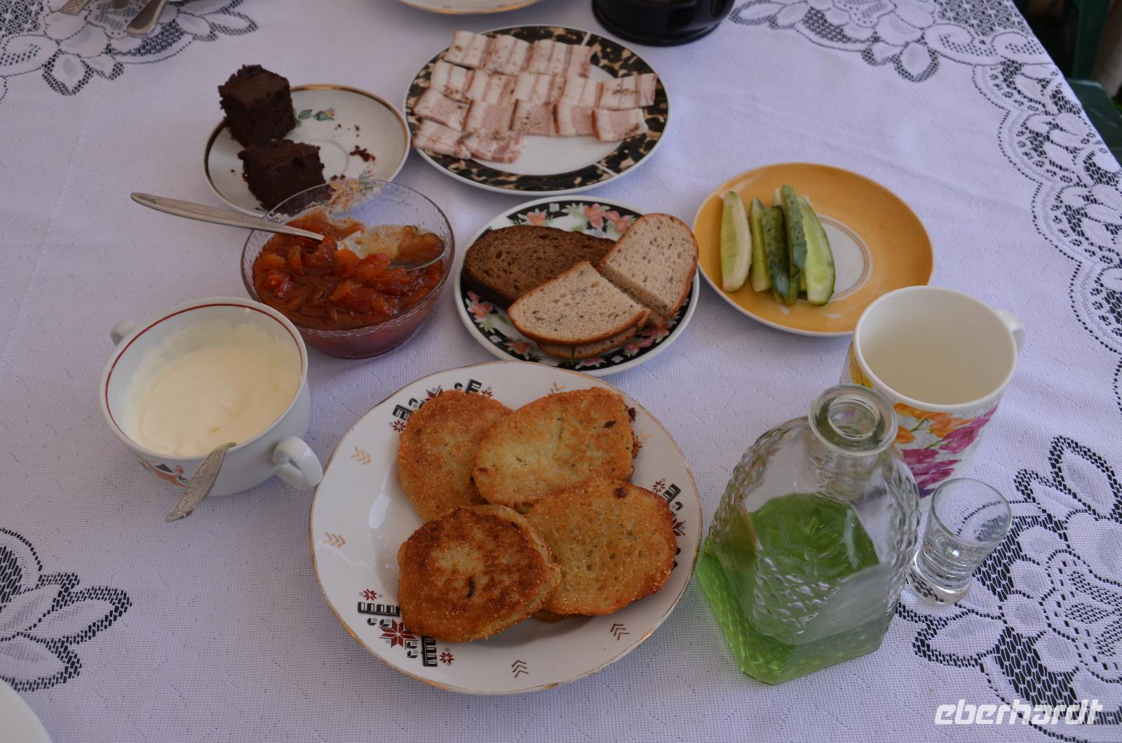 Da wir wieder entspannt 9 Uhr gemütlich in den Tag starten, hat jeder ausreichend Zeit das üppige Frühstück zu genießen. Auch, wenn heute „nur" 32 Radkilometer vor uns liegen, werden wir diese in einer Rekorddurchschnittsgeschwindigkeit von fast 20 km/h zurück legen. Wir fliegen förmlich durch die Felder und Wälder Lettlands. Wie schon einige Male werden wir dabei von einer anderen Radgruppe begleitet. Wir sind als kleinere Gruppe meist schneller auf den Rädern und fahren vor und sie werden uns Stück für Stück schlucken. Dieses Mal ist das Rennen allerdings besonders knapp und spannend ;). So starten wir in Saulkrasti und arbeiten uns nach Ragana vor. Hier essen wir im Restaurant „Hexenküche" typisch lettische Spezialitäten. Die Spezialität, die allerdings alle vereint, ist wie immer das Bier. Das schmeckt immer! Auch in Lettland begleitet uns der Storch auf allen Wegen. Die Jungen sind gerade dabei flügge zu werden und machen ihre ersten Flugversuche hoch oben im Horst. Das schöne Wetter beflügelt alle. Somit sehen wir heute besonders viele Hochzeitspaare an den bekannten Sehenswürdigkeiten auf unserer Strecke. Als wir die älteste evangelische Kirche Lettlands in Krimulda besichtigen wollen, verhindert uns dies allerdings leider den Eintritt. Zumindest konnten wir einen Blick auf die Braut erhaschen. Danach geht es weiter Richtung Turaida. Hier beenden wir unsere heutige Radetappe und begeben uns zu Fuß in den wunderschönen Park mit dazugehöriger Burg. Aber das sollte für heute noch nicht alles sein! Schließlich haben wir bestes Wetter für die bevorstehende Kanutour als krönenden Abschluss. Und tatsächlich sollten wir sprichwörtlich eine krönende Wassertaufe erleben...Aber zurück zum Anfang. Idyllisch schlängelt sich der Fluss Gauja durch das Tal rund um Turaida mit malerischen Ausblicken auf beiden Uferseiten. Da wir unsere Tour flussabwärts genießen wollen, werden wir vorerst zu unserem Einstiegsort chauffiert. Das hier alle trocken im Boot gelandet sind, ist für mich die größte Überraschung, da der Einstieg durch das Niedrigwasser des Flusses, leicht abenteuerlich ausfällt. So weit so gut - was kann jetzt noch schief gehen?!!! Wir lassen uns auf dem ruhigen Wasser dahin treiben und genießen die warmen, abendlichen Sonnenstrahlen. Als kleine Überraschung habe ich die landestyptischen Utensilien besorgt, ohne die man nicht aufs Wasser geht - reichlich Schnaps, saure Gurken, Kwas und kleine Knabbereien. Gestärkt und guter Dinge, sprich leicht beschwipst, setzen wir die Fahrt fort. Dann kommt dieser eine unglücksselige Moment, an dem das Schicksal entscheidet, dass der heutige Tag viel zu heiß und schweißtreibend war und somit dringend eine Abkühlung von Nöten ist. Ein aus dem Wasser ragender Ast...das Kajak verfängt sich...läuft voll Wasser und zwingt somit die Insassen zum Aussteigen. Während ein Paparazzi hinter mir die ganze Seenotrettungsübung in Bildern festhält, leiten wir Rettungsmaßnamen ein. Glücklicherweise ist das Wasser überall derartig flach, dass man bequem stehen kann. Das Boot wird also wieder trocken gelegt und wir beenden unsere Fahrt. Wie man sich vorstellen kann, ist dieses Vorkommnis DAS Gesprächsthema und es wird noch viel darüber gelacht - frei nach dem Motto: eine Seefahrt die ist lustig! Als wir abends im Hotel ankommen, begeben wir uns bei Zeiten zum gemeinsamen Abendessen. Heute ist es bedächtig ruhig am Abendbrottisch. Der Tag war wunderschön, aber eben auch sehr ereignisreich. Aber am besten beschreibt die allgemeine Bettschwere, unter dem vorhergehenden Einfluss von Alkohol, folgende Aktion: Gewünscht war am Kaffeeautomaten ein Cappuccino. Wir waren angehalten uns selbst zu bedienen. Am Tisch wieder Platz genommen, gab es nur den trockenen Ausspruch, dass es hier auch heiße Schokolade gäbe, falls dies jemand trinken möchte. Aber die Mission wurde nicht abgebrochen, nein, es wurde ein zweiter Anlauf genommen. Dieses Mal musste es doch klappen! Die richtige Taste wurde betätigt! Erst kommt die Milch...dann kommt der Kaffee. So wie es der große rote Kreis auf dem Display anzeigt, der sich langsam füllt und somit die Beendigung des Vorgangs anzeigt. Leider war der Kreis erst bei der Hälfte angekommen, als die Tasse entfernt wurde... „Es gibt also auch heiße Milch, falls das jemand trinken möchte." :D.
