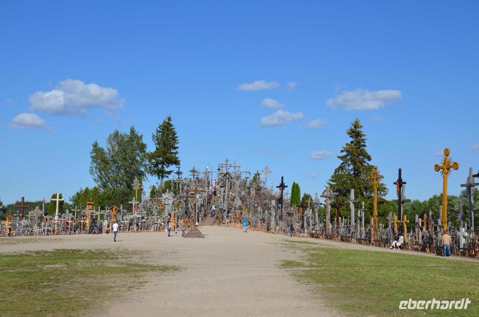 Im bekanntesten und größten Seebad Litauens angekommen, beschreiten wir zunächst andächtig den Botanischen Garten Palangas, mit dem Ziel zum Schloss vorzudringen, in dem sich das staatliche Bernsteinmuseum befindet. Hier verbringen wir die nächste halbe Stunde und bestaunen die zu Teil riesigen Brocken an Bernsteinfunden. Die nächsten 1,5 Stunden stehen zur freien Verfügung. Ob man sich in den Dünen niederlassen möchte, um zu entspannen oder sich lieber in eins der belebten Lokale setzt, ist jedem selbst überlassen. Der beliebte Ferienort wird von Einheimischen wie von Touristen gern angesteuert und ist an einem schönen Tag wie diesem gut frequentiert. Nach unserer Erholungspause radeln wir zu unserem Treffpunkt mit Albinas, unserem Fahrer, der die Fahrräder schnell im Anhängerverstaut. Bei Zeiten befinden wir uns auf dem Weg nach Riga, der Hauptstadt Lettlands. Wir hatten eine wirklich tolle Zeit in Litauen und nehmen die frischen Erinnerungen gern mit. Bevor wir allerdings die Grenze final überschreiten, gibt es einen letzten Stopp am „Berg der Kreuze". Hierbei handelt es sich um einen Wallfahrtsort, der hauptsächlich zu Ostern oder an Hochzeiten und Geburten besucht wird, da das Aufstellen eines Kreuzes mit einem Wunsch oder einer Bitte verbunden ist. Für Touristen ist er allerdings ganzjährlich ein beliebtes Ziel, welches kontrovers diskutiert wird. In einer der Sagen, die sich um die Entstehung des „Hügels" rankt, hatte ein Vater eine kranke Tochter. Als er eines Abends am Lagerfeuer einschläft, erscheint ihm im Traum eine weiße Frauengestalt, die ihm befiehlt, genau auf diesem Hügel, ein Kreuz aufzustellen, um Abbitte zu leisten. Als er dies am nächsten Morgen sogleich umsetzt, ist seine Tochter bereits bei seiner Rückkehr nach Hause geheilt. Ein sicherlich schöner Gedanke, der in seiner heutigen Umsetzung die verschiedensten Formen und Ausmaße an Kreuzen annimmt. Am späten Abend kommen wir in Riga an. Nun heißt es schweren Herzens ein Gruppenmitglied zu verabschieden, da uns Edgar heute leider verlässt. Ab morgen sind wir dann allerdings in neuer Besetzung, mit Ivars, wieder komplett.