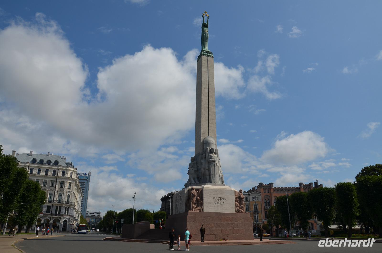 Heute ist unser radfreier Tag! Die Muskeln können sich also erholen und der eventuell entstandene Schlafmangel löst sich bei einer Startzeit von 9 Uhr in Wohlgefallen auf. Bei einem sind sich allerdings alle einig - das Frühstück hier ist besonders üppig und lecker. So kann man in den Tag starten! Ivars, unser neuer Reiseleiter, begrüßt uns in der Lobby herzlich und nimmt uns auf einen 3 stündigen Rundgang durch die Altstadt, der einst zweitgrößten Hansestadt, mit. Dies wird spätestens nach den zahlreichen, alten Speichern, die sich überall in der Stadt verteilen, ersichtlich. Desweiteren sehen wir von Weitem „Stalins Geburtstagstorte" empor ragen. Ein Gebäude, in dem sich heute die Akademie der Wissenschaften befindet und welches nach dem Vorbild, der in Moskau befindlichen Hochhaustürme die „Sieben Schwestern", erbaut wurde. Weiter geht es vorbei am Reuterhaus, ein imposantes Gebäude eines reichen Kaufmanns der Hanse, über die Petrikirche bis hin zum Domplatz, dem größten, aber jüngsten Platz Rigas. Heute umrahmt gleich eine Reihe historischer Gebäude diesen ehrwürdigen Platz. Neben dem Rigaer Dom gilt als das beeindruckendste unter ihnen die ehemalige Rigaer Börse, in der heute ein Kunstmuseum untergebracht ist. Zudem finden wir hier das Haus des Lettischen Rundfunks, von dessen Balkon aus schon viele geschichtsträchtige Reden gehalten wurden. Angekommen auf dem Rathausplatz, stielt das „Schwarzhäupterhaus" dem Rathaus eindeutig die Show. Im gotischen Stil errichtet und mit seiner reich mit Reliefs und Skulpturen verzierten Giebelfassade, zählt es zu einer der Hauptattraktionen der Hauptstadt. Erstmalig 1334 erwähnt, diente es den Kaufleuten vorrangig als Zusammenkunftsort. Zum Schluss bewegen wir uns etwas vom Zentrum weg, um die wunderschönen, in neuem Glanze erstrahlenden Jugendstilhäuser anzuschauen. Und davon gibt es wirklich eine Menge. Unser Rundgang endet in der Nähe des Freiheitsdenkmals, welches um 1931 zu Ehren der lettischen Unabhängigkeit errichtet wurde und ausschließlich von Spenden aus der lettischen Bevölkerung finanziert wurde. Mit dem Stadtrundgang endet auch der offizielle Teil des heutigen Tages. Danach begeben wir uns mit einer größeren Gruppe zu den Markthallen, in denen man nicht nur fantastisch einkaufen kann, sondern in denen sich auch zahlreiche, kleine Restaurants vorfinden. Von hier an, kann jeder seinen Tag nach freiem Belieben gestalten. Abends treffen wir uns allerdings alle wieder im hoteleigenen Restaurant, genießen ein fantastisches Menü und tauschen uns über den Tag aus. Somit können wir morgen frisch und erholt auf eine neue Radetappe starten.