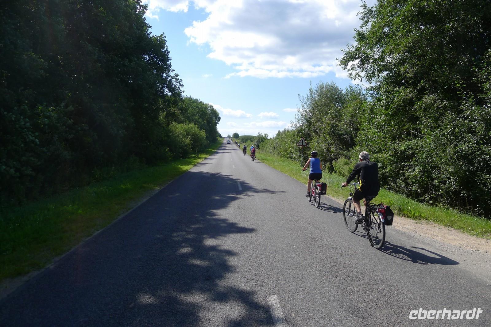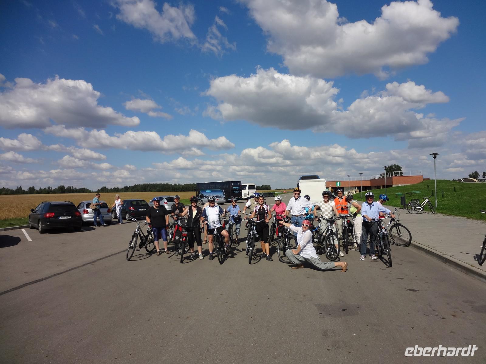 Die Albertstraße mit den prächtigen Jugendstilhäusern Eisensteins wollten wir uns nicht entgehen lassen. Dann brachte uns der Bus an der Burg Bauska vorbei nach Ruhenthal (Rundale) in Lettland. Bei einer Führung lernten wir das Barockschloss, welches oft als Versailles der Ostsee bezeichnet wird, kennen. Bei gutem Wetter gelangen sicher allen prächtige Fotos aus den Sichtachsen des im französischen Stil angelegten Parks auf das Schloss. Im Rosengarten suchten dann viele die Seltenheit einer blauen Rose. Weiter ging es per Bus über die Grenze nach Litauen und zum Berg der Kreuze bei Siauliai. Seit der Zarenzeit stellen Pilger hier Kreuze auf, später war es auch Ort des Widerstandes gegen die sowjetische Besetzung und nun allgemeiner Wallfahrtsort. Wir starteten hier unsere erste Radetappe, die uns auf knapp 20 Kilometern, zumeist auf Schotterstraßen, einen Eindruck vom ländlichen Leben in Litauen vermittelte. Der Tag war so intensiv, dass wir erst spät in Vilnius ankamen. Ein schöner Abendspaziergang führte uns durch die sommerliche Altstadt von Vilnius zum Restaurant „Lokys" und nach gutem Essen nach 23 Uhr durch die nächtliche Altstadt zurück zum Hotel.