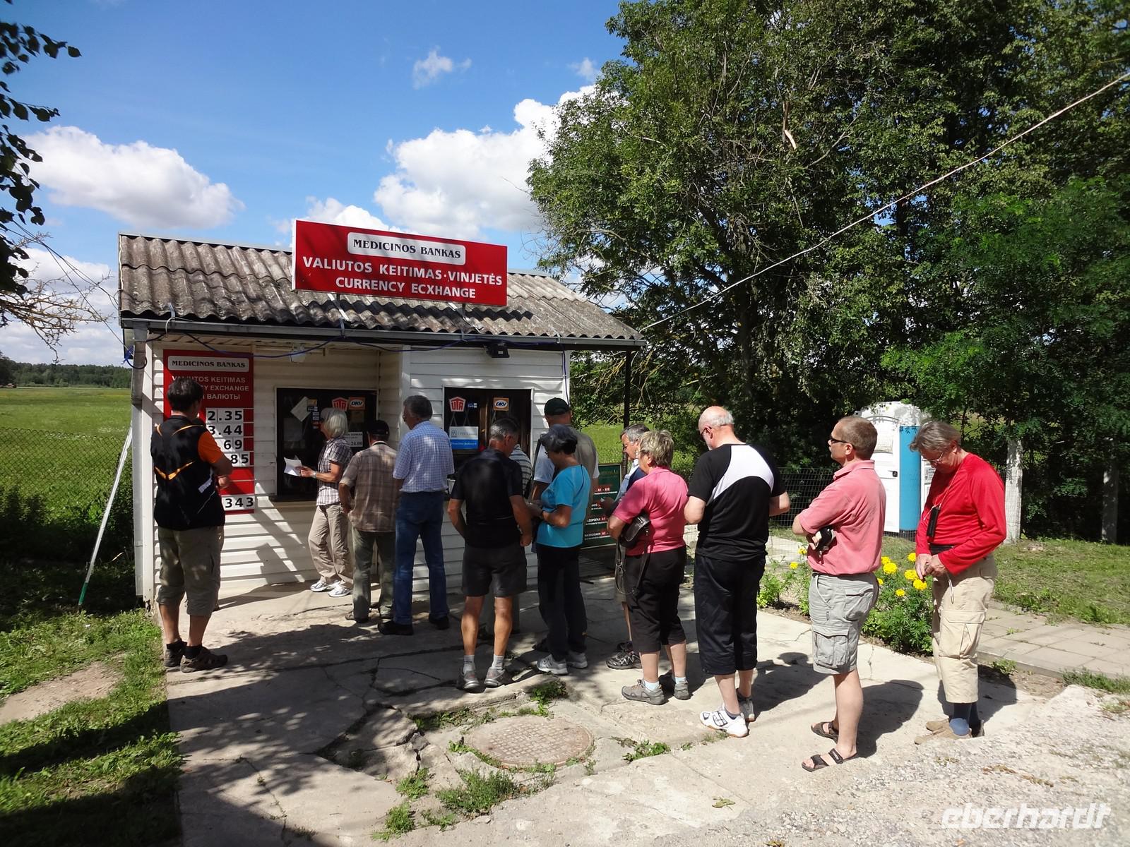 Biruta und Vineta führten uns durch die barocke Altstadt von Vilnius. Neben den üblichen touristischen Höhepunkten wandelten wir diesmal auch durch kleine Gassen zum ehemaligen jüdischen Viertel und an die Grenze der „Unabhängigen Republik". Anschließend fuhren wir mit dem Bus nach Trakai, der einzigen Wasserburg des Baltikums, dem ehemaligen Sitz litauischer Großfürsten. Die idyllisch von Seen umgebene Wasserburg besichtigten wir bei prächtigem Sonnenschein. Die ehemaligen Schlossherren, litauische Fürsten, holten Karäer ins Land als harte und treue Soldaten; diese brachten „Kibinai" mit, die wir uns am Seeufer schmecken ließen. Nun ging es mit dem Rad auf asphaltierten Straßen durch hügeliges Land mit blauen Seen. Viele konnten dem prächtigen Fluidum eines warmen Sees in der grünen Hügellandschaft nicht widerstehen und erfrischten sich mit einigen Schwimmzügen im See. Im hübschen Ort Semeliske mit seinen farbigen Holzhäusern überzeugten wir uns vom Eisangebot im Dorfladen und machten im Schatten der Dorfkirche eine kleine Vorstellungsrunde. Im Anblick der Schornsteine von Elektrinai stiegen wir nach 27 Radkilometern wieder in den Bus, der uns nach Kaunas brachte. Die Altstadt von Kaunas erlebten wir bei einem Abendbummel zum Rathausplatz und standen am Fluss Nemunas (Memel).