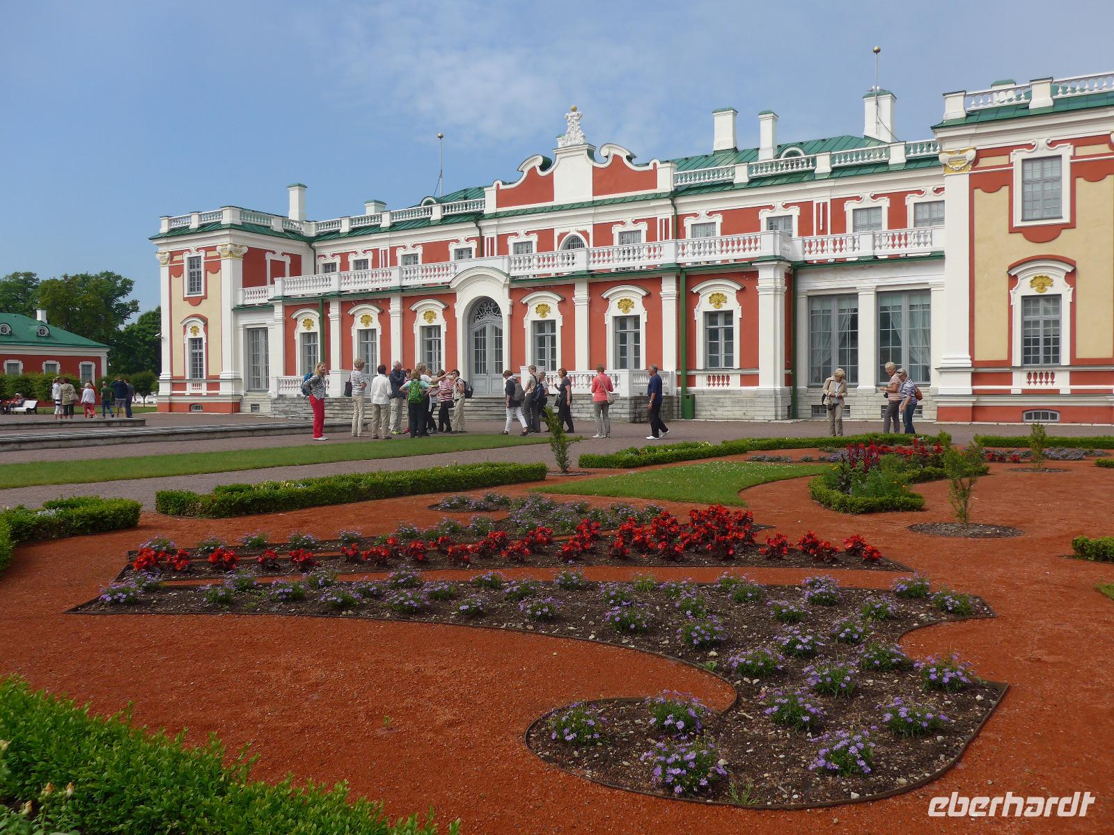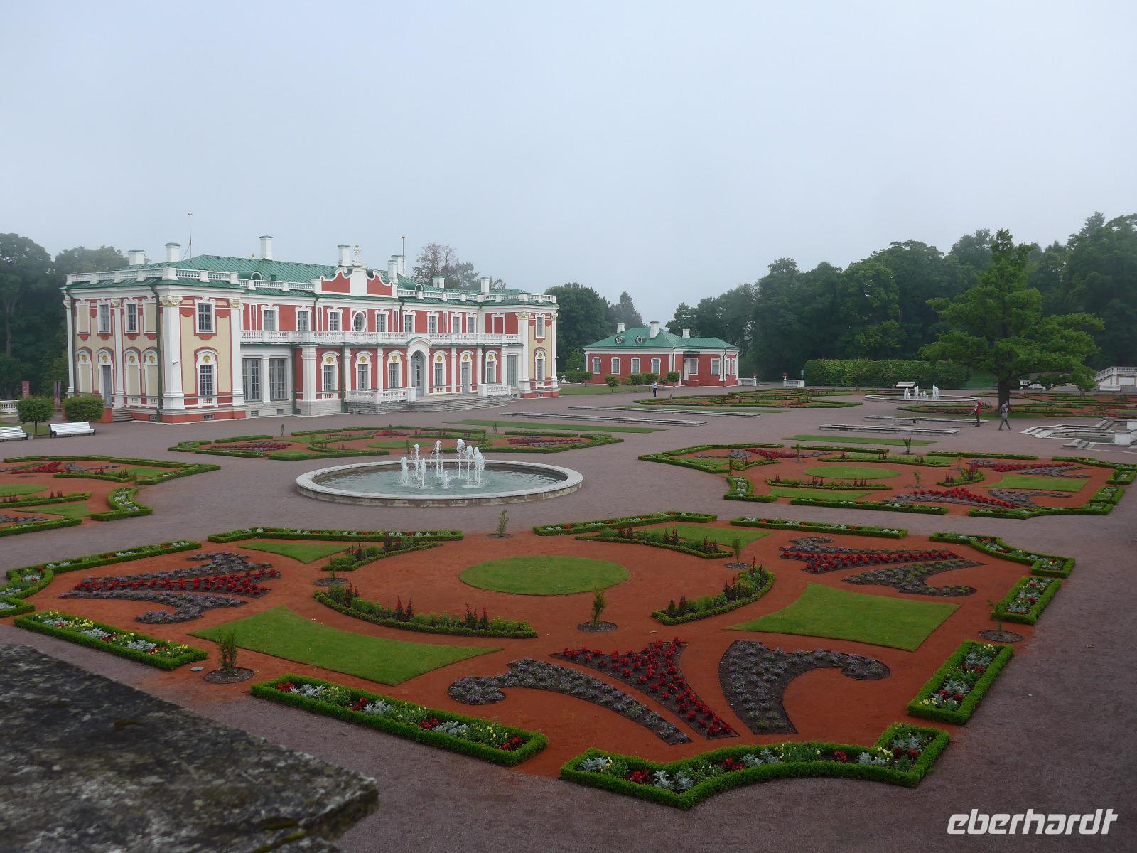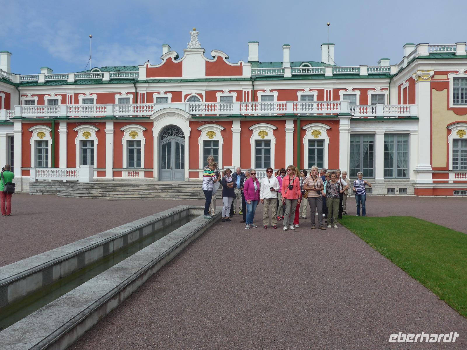 Unser Bus brachte uns mit dem Gepäck zu unserem letzten Ausflug nach Kadriog. Dort hatte Zar Peter I. ein Schloß für seine Frau Katharina I. und einen Park anlegen lassen. Inzwischen gibt es dort auch das neue estnische Kunstmuseum KUMU. Wir spazierten durch den Park, sahen am Regierungssitz die Wachablösung und besichtigten danach mit einer fachkundigen Führerin die Innenräume des Schlosses. Anschließend gingen wir durch den Park vor dem Schloß und dann am Schwanenteich vorbei wieder zurück zum Bus.