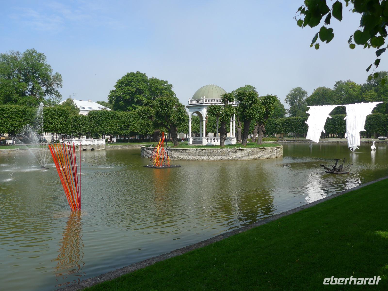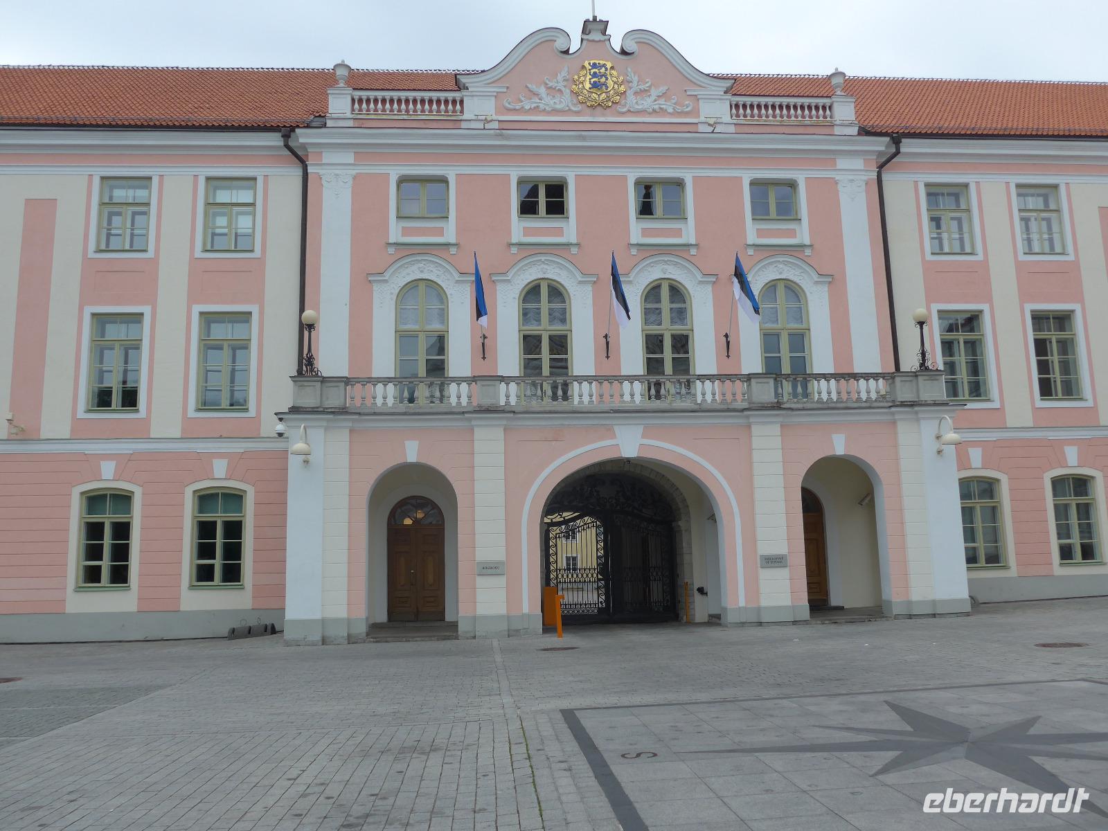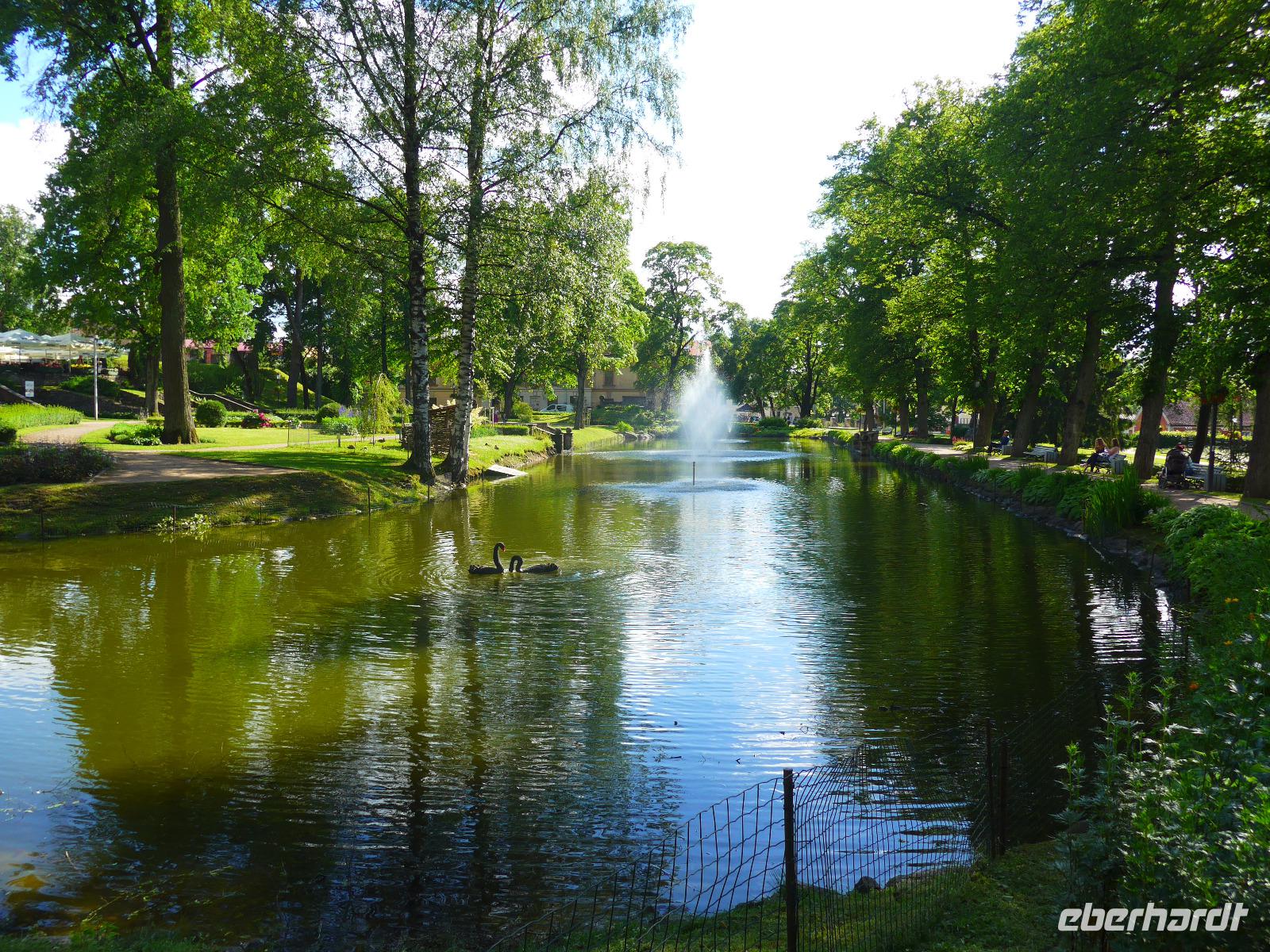 Unser Bus brachte uns mit dem Gepäck zu unserem letzten Ausflug nach Kadriog. Dort hatte Zar Peter I. ein Schloß für seine Frau Katharina I. und einen Park anlegen lassen. Inzwischen gibt es dort auch das neue estnische Kunstmuseum KUMU. Wir spazierten durch den Park, sahen am Regierungssitz die Wachablösung und besichtigten danach mit einer fachkundigen Führerin die Innenräume des Schlosses. Anschließend gingen wir durch den Park vor dem Schloß und dann am Schwanenteich vorbei wieder zurück zum Bus.