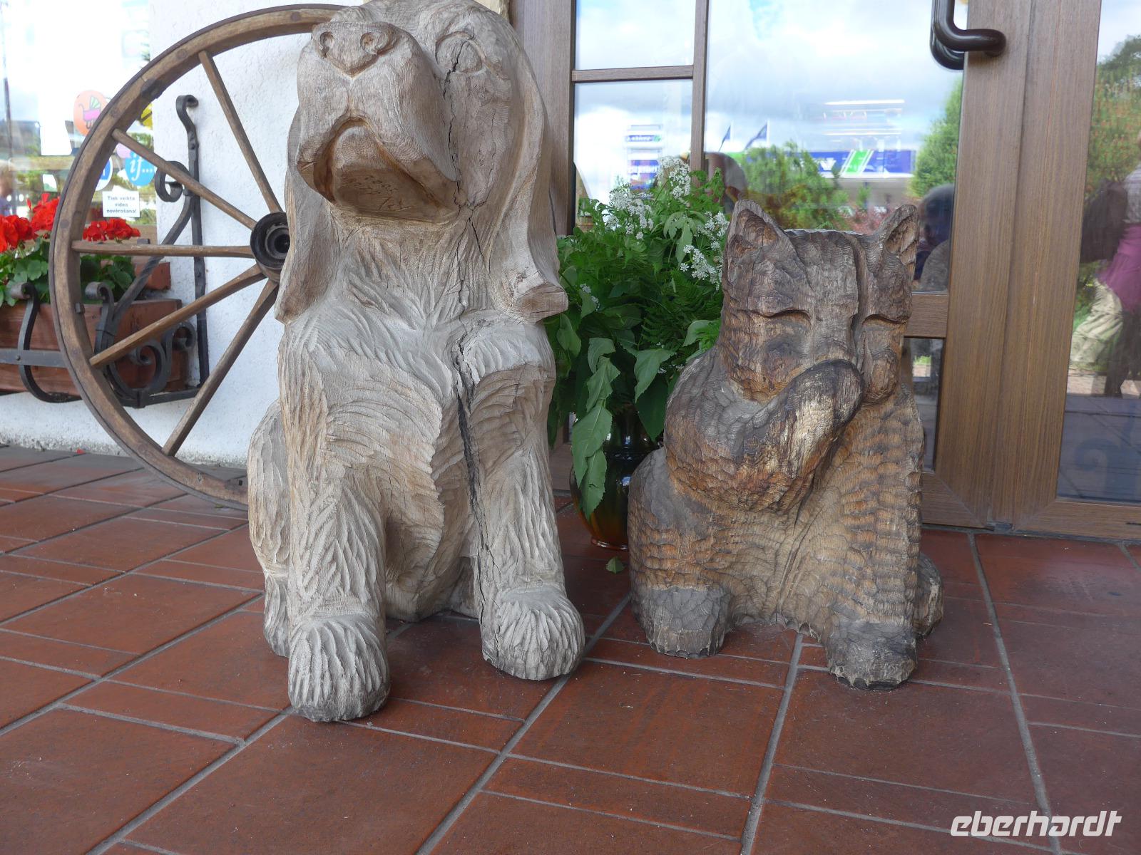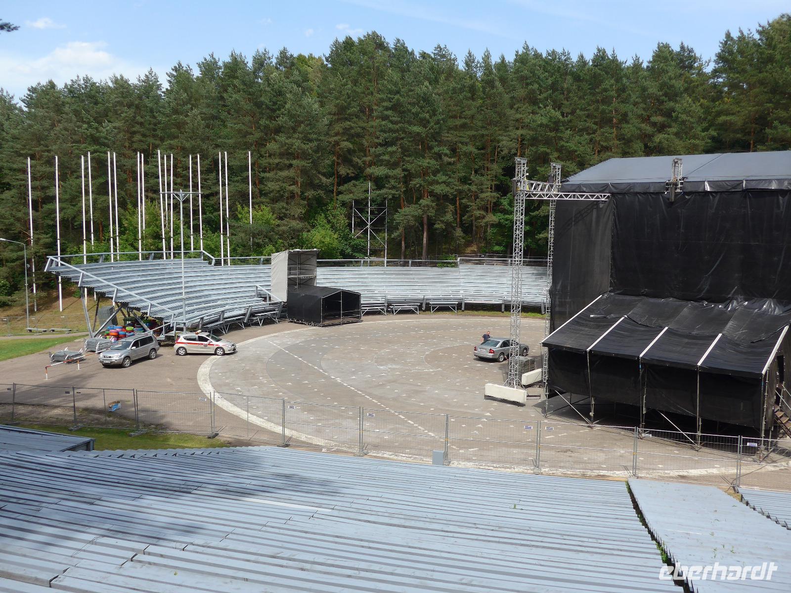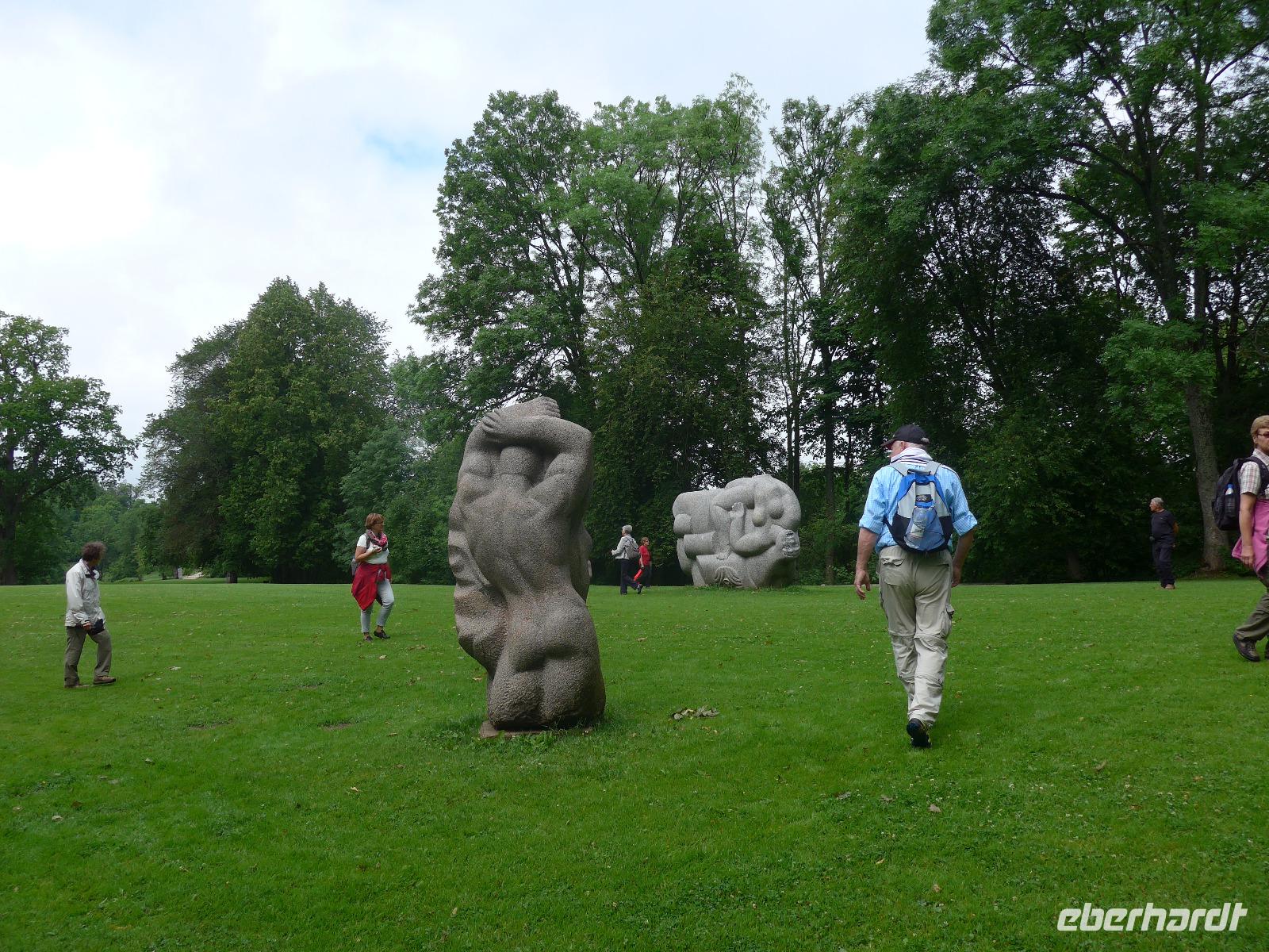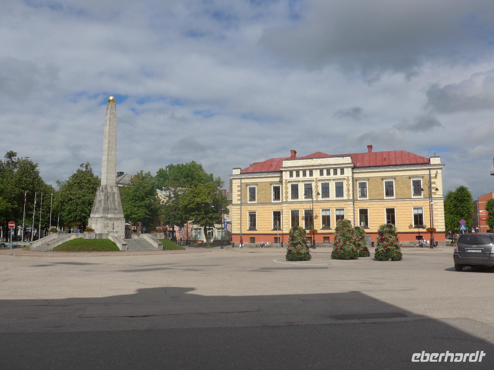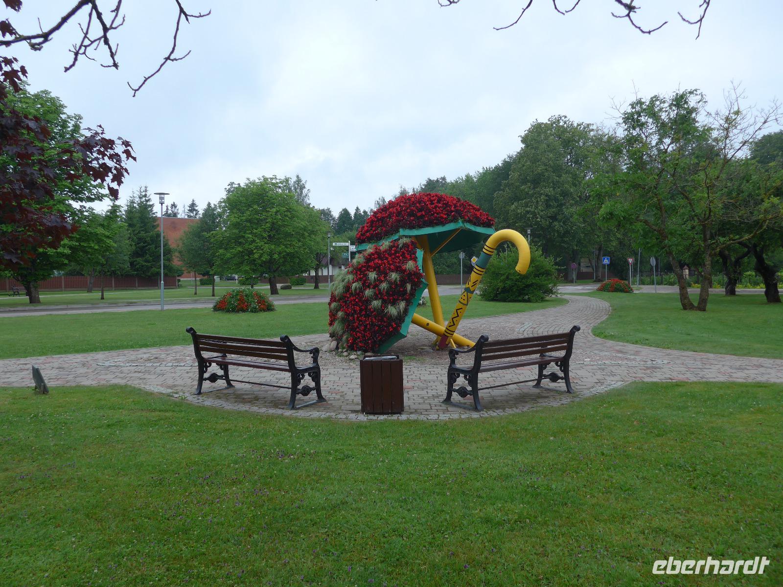 Turaida - lettisch Gottesgarten - ist ein riesiges Gelände mit einem Park, dem Sängerhügel und der alten Burg. Wir gingen zunächst durch den Park zum Sängerhügel, wo uns Aija ausführlich die Steinskulpturen erklärte und dazu auf ihrer Mundharmonika spielte. Auf einer großen Wiese stellten wir uns im Kreis auf und Aija übte mit uns einen lettischen Volkstanz ein. Danach besuchten wir die Burg und stiegen die 140 Stufen auf den Burgfried hinauf. Die Aussicht war sehr gut auf Burg, Gauja und bis nach Sigulda. Ganz in der Nähe von Turaida machten wir in Ragana bei der "Hexe" unsere Mittagspause draußen in der Sonne sitzend. Nun war es nicht mehr weit bis nach Cesis, unseren nächsten Übernachtungsort.